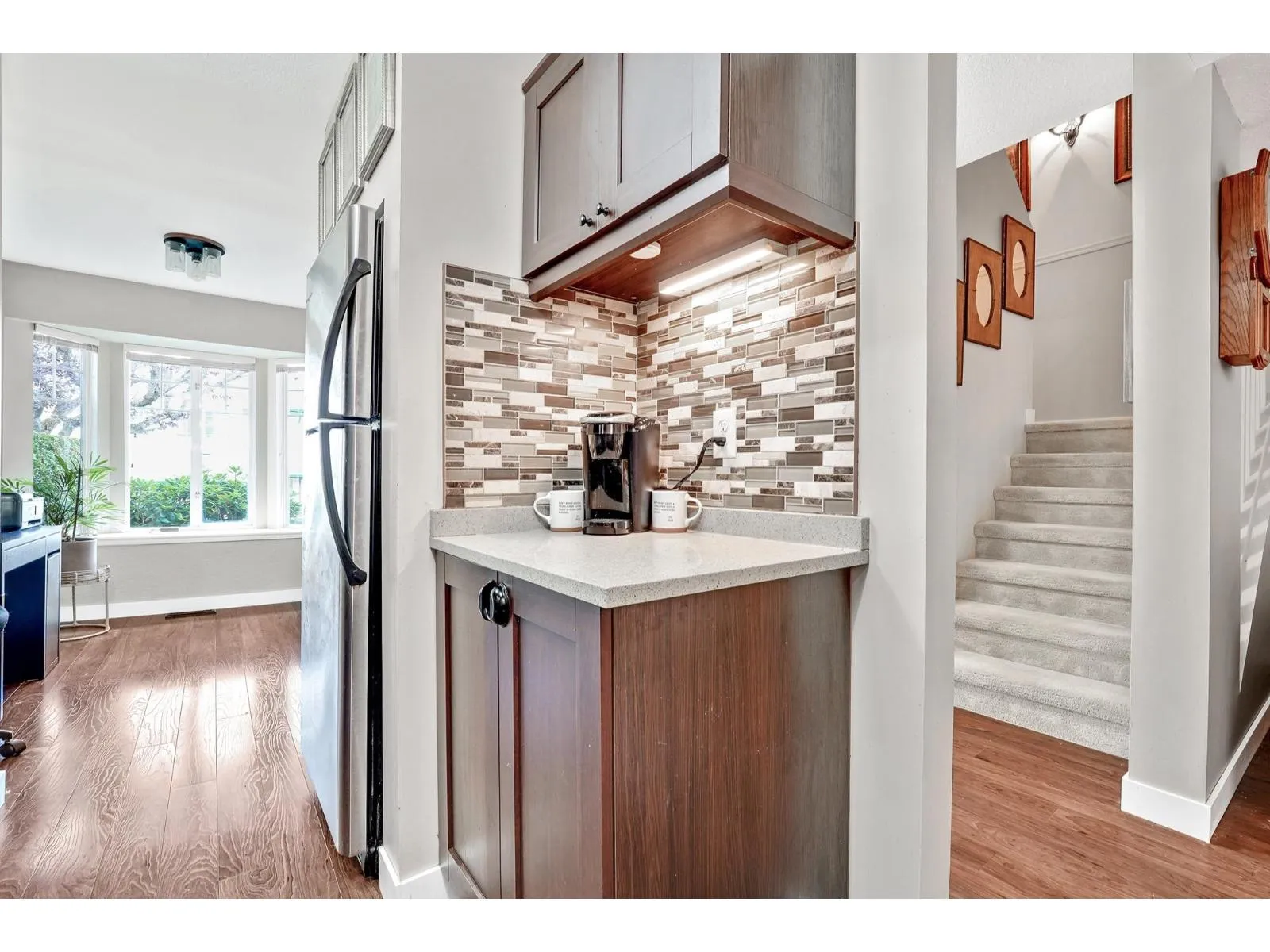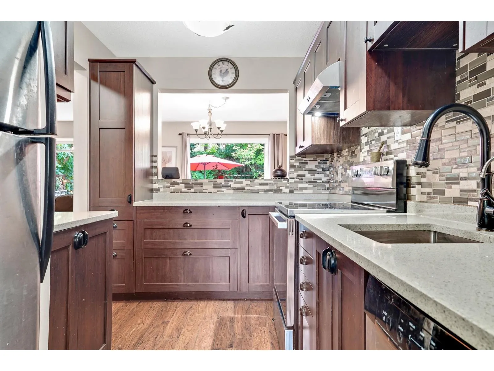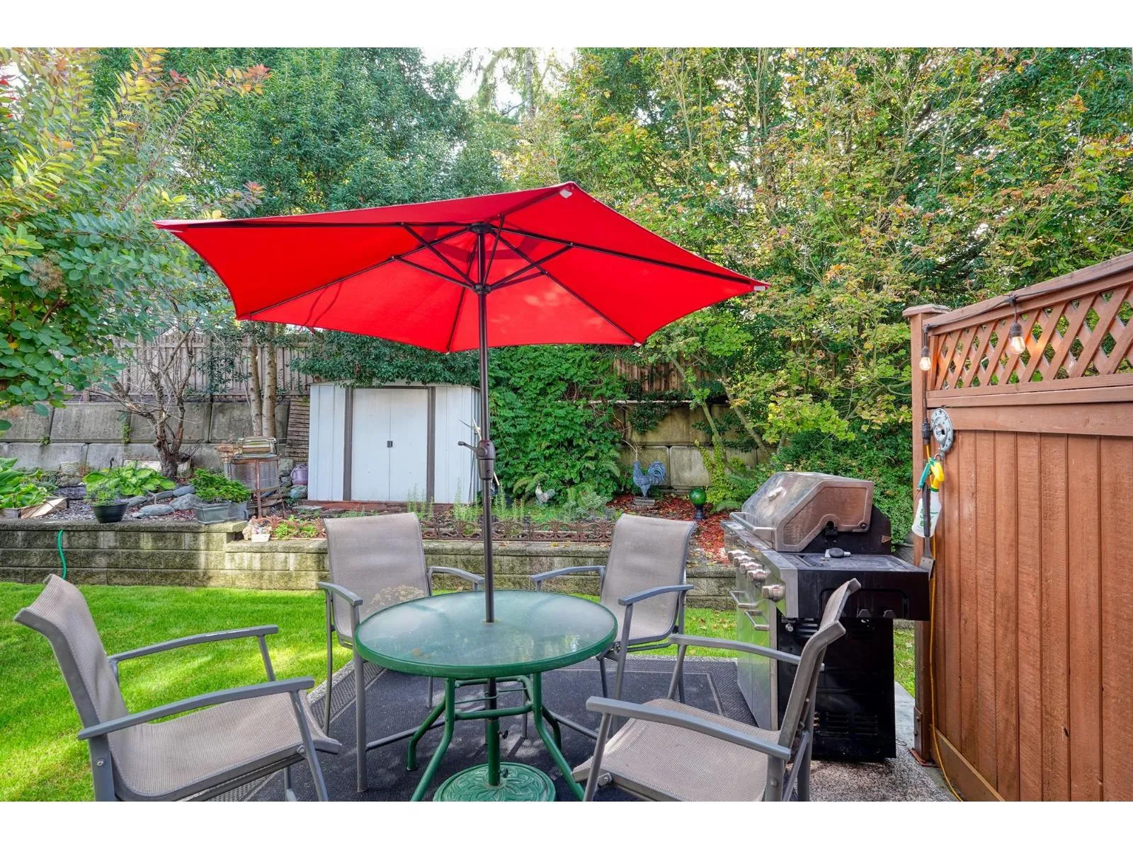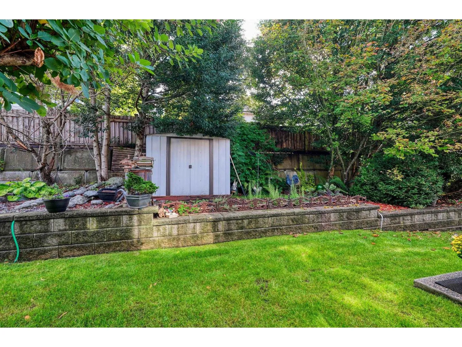 Walnut Grove Gem at Emerald Estates. Very well maintained 2-storey townhouse with basement located on the quiet side of the complex with private, south-facing backyard. Patio and backyard urban vegetable garden area - complete with powered shed, are accessible via French doors directly off the dining area. Upstairs includes an oversized primary bedroom with sitting area and 4pc ensuite. Additional bed and bath up. The finished basement provides an additional bedroom, 3rd bathroom and spacious rec room/4th bedroom. Poly-B pipes have been replaced throughout. 1 car garage + 2 driveway spots! Family friendly complex in a perfect location! Minutes to Hwy 1, Fort Langley, golf courses, shopping, restaurants + great schools! Complex backs onto greenbelt/trails! (id:27476)