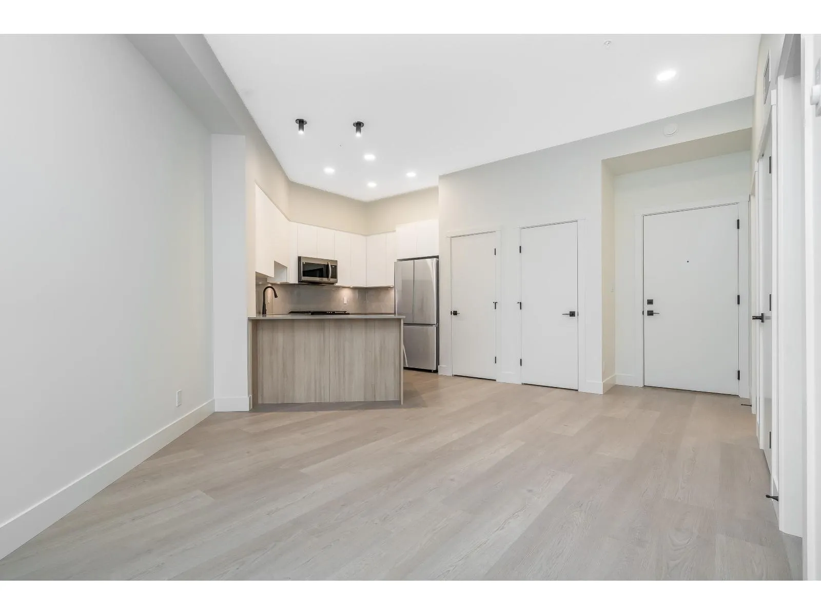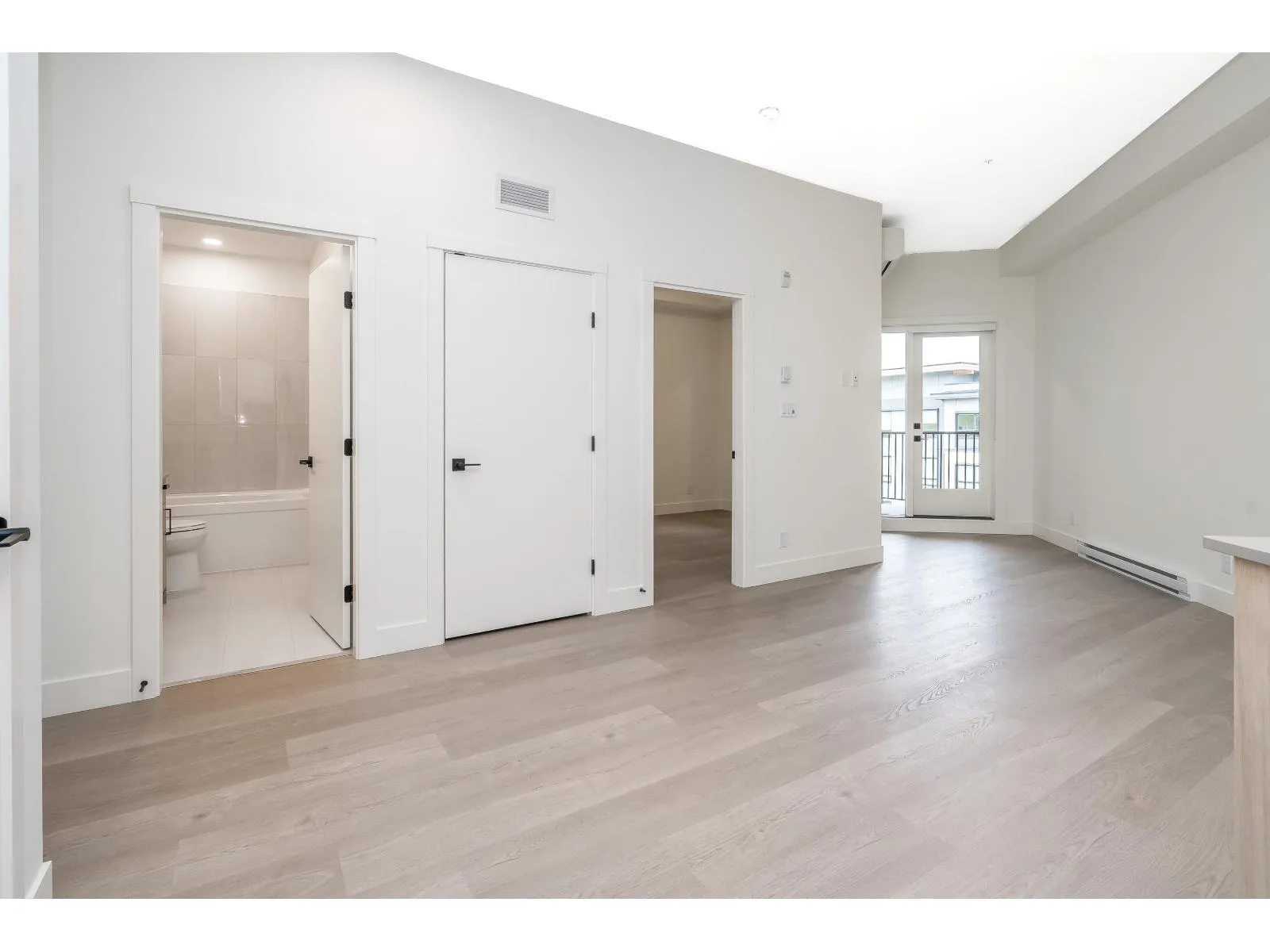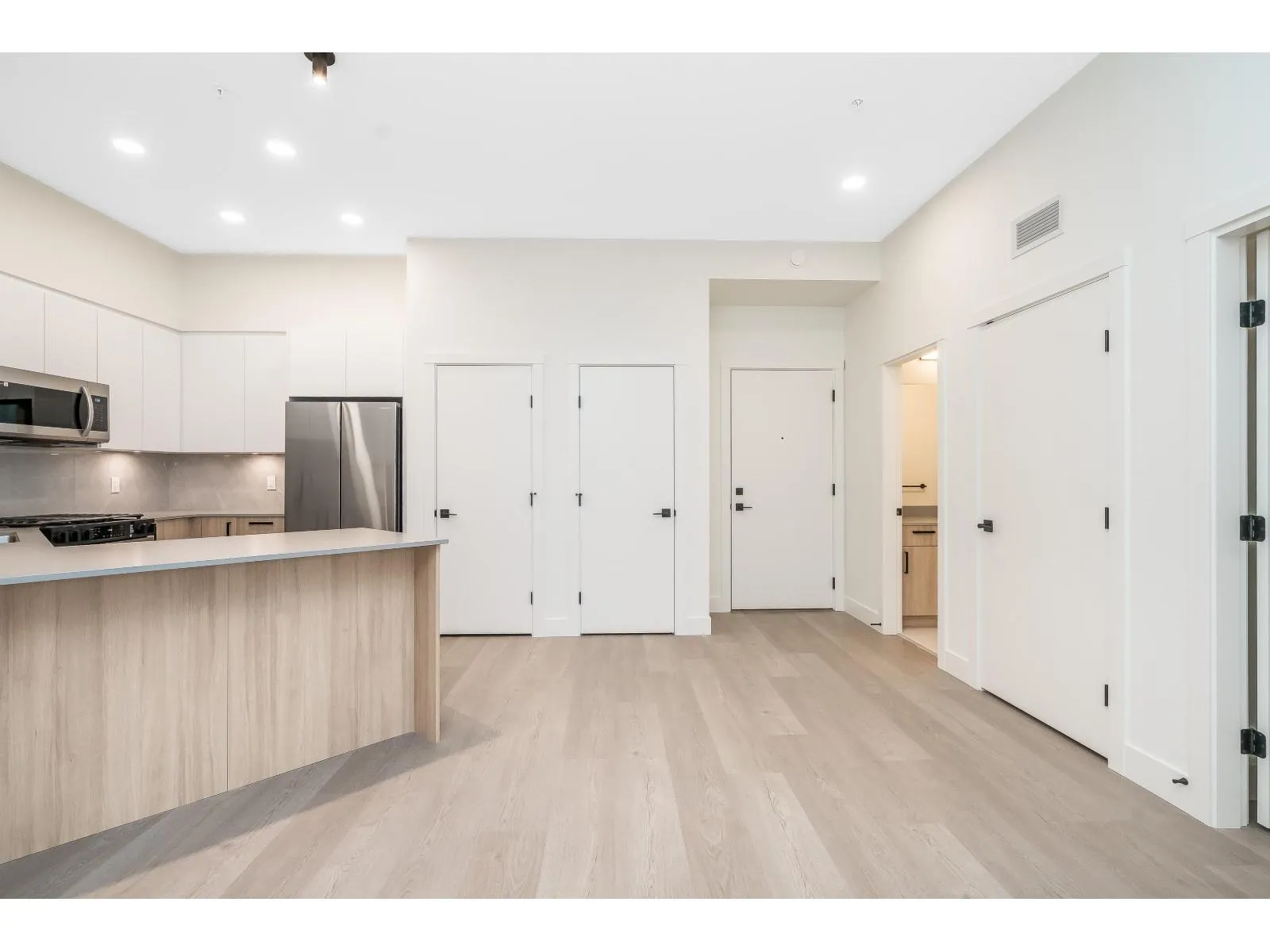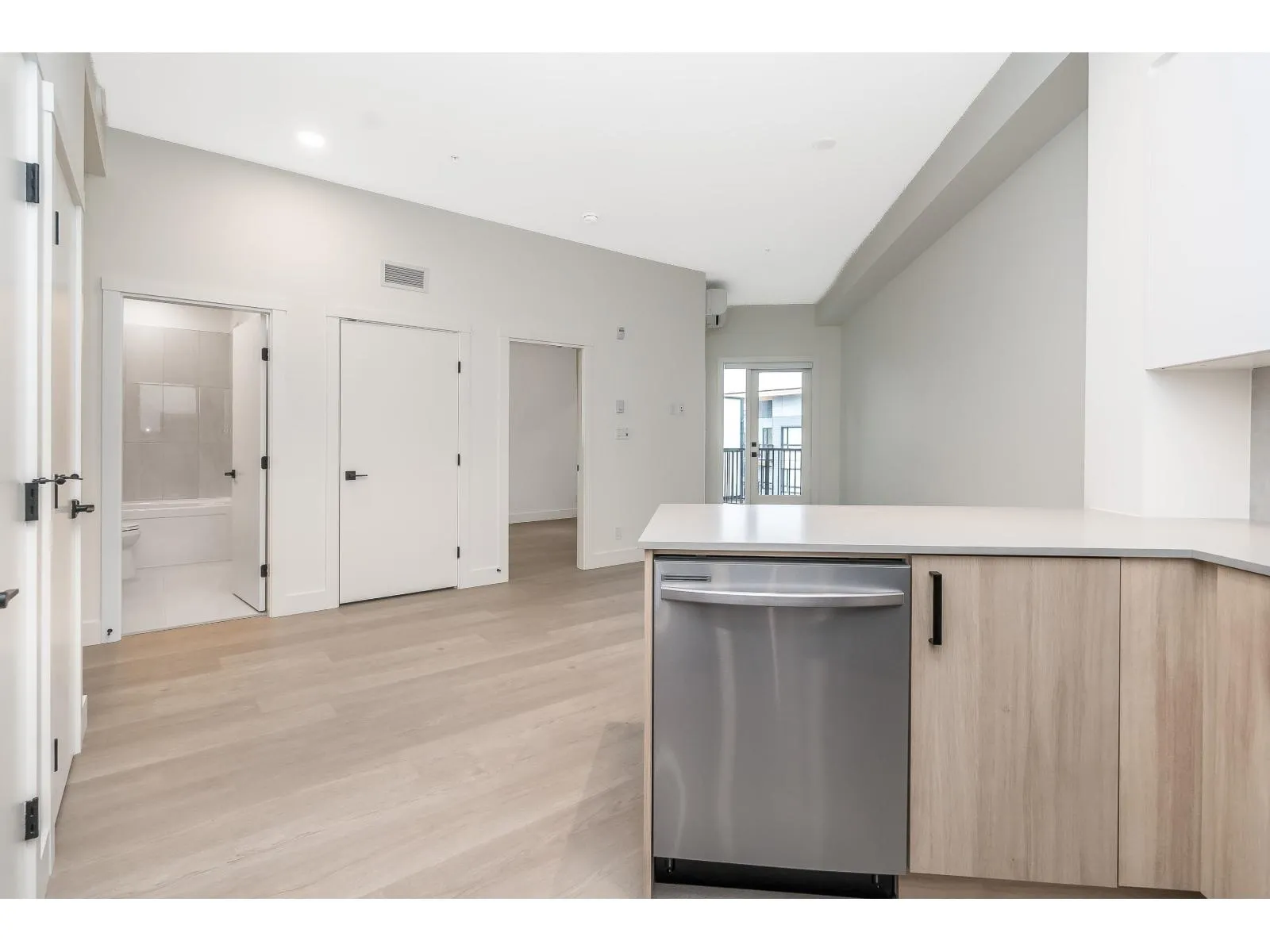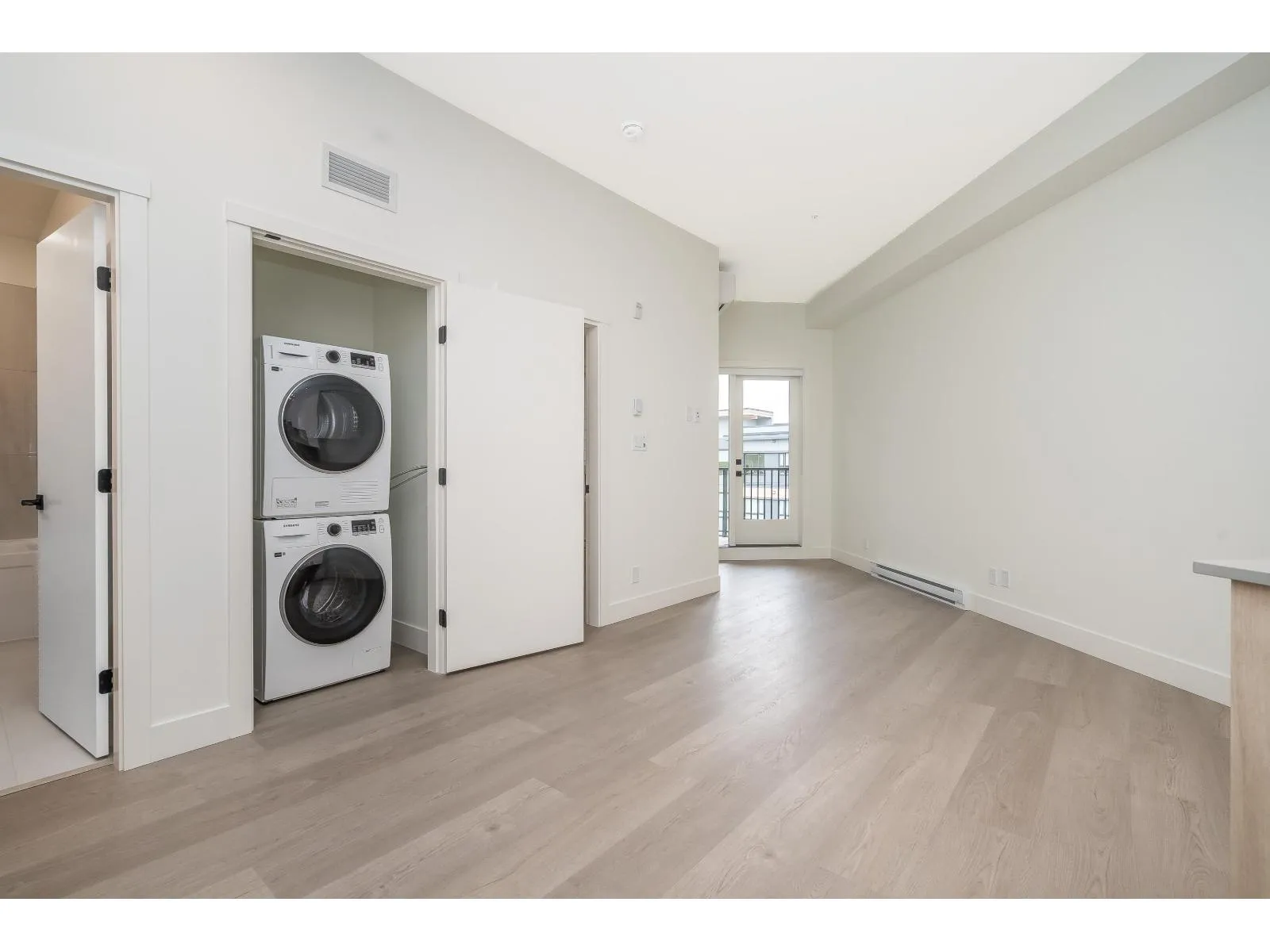 Top-floor brand new 1-bedroom, 1-bath suite at The Commons in Langley's vibrant Willoughby neighbourhood. Offering 610 sq. ft. of modern living with soaring 10+ ft ceilings, this bright and airy home features an open-concept layout, large windows, and a private balcony with elevated views. The kitchen is equipped with stainless steel appliances, quartz countertops, and sleek cabinetry, while the spa-inspired bathroom adds a contemporary touch. Includes in-suite washer/dryer and 1 secure underground parking stall. Residents enjoy modern building amenities with secure parking, bike storage, and community spaces. Steps to Willoughby Town Centre shops, dining, and services, plus parks, recreation, and fitness studios. Easy access to Hwy 1, Golden Ears Bridge, and transit! (id:27476)
