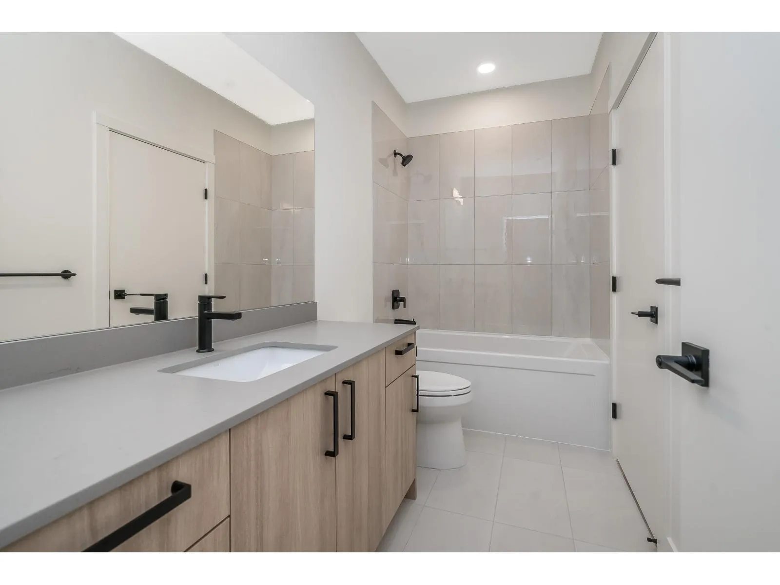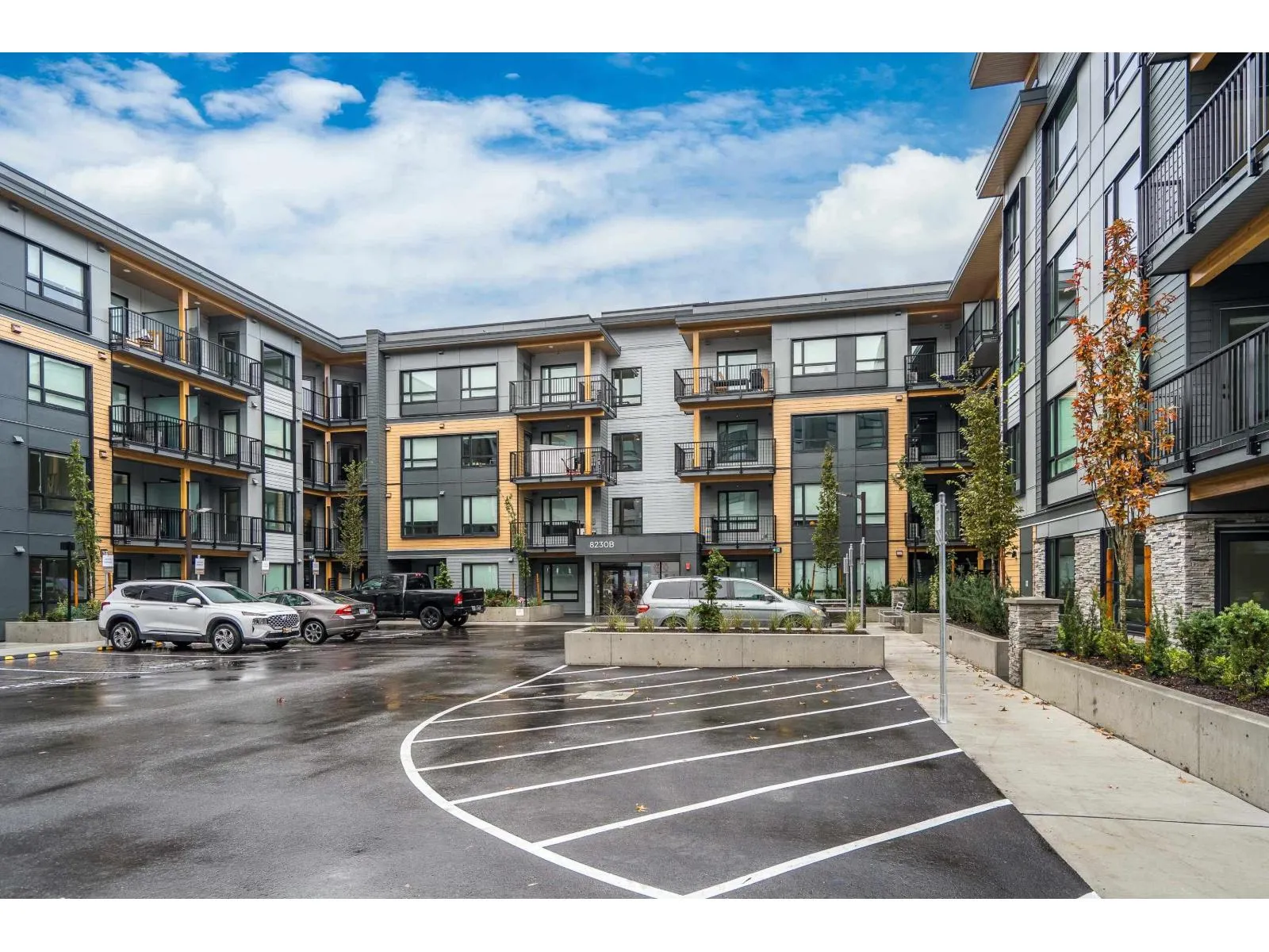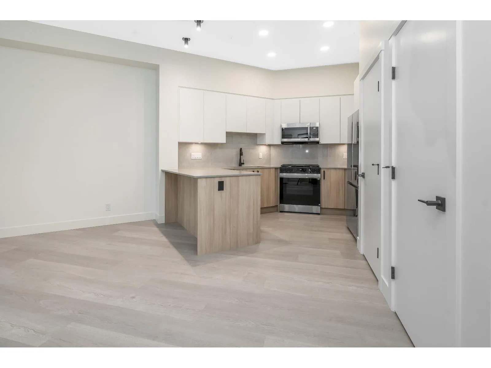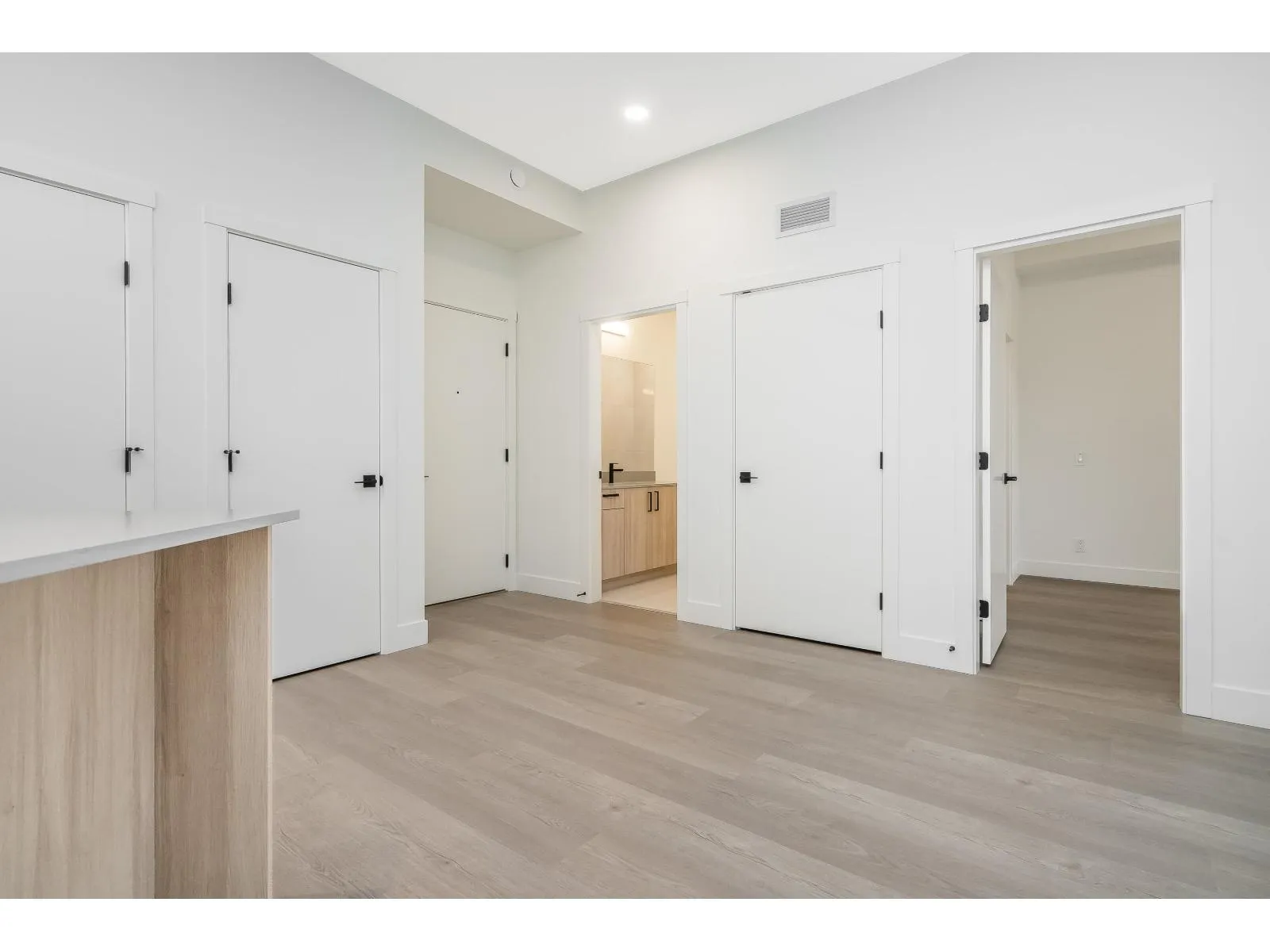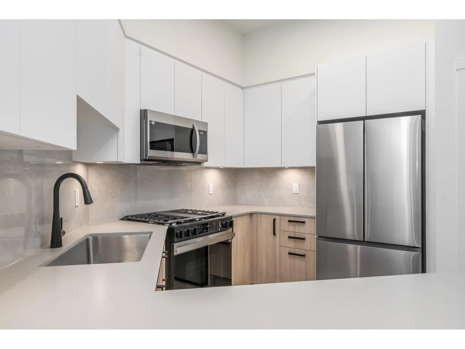 Top-floor brand new 1-bedroom, 1-bath suite at The Commons in Langley's vibrant Willoughby neighbourhood. Offering 610 sq. ft. of modern living with soaring 10+ ft ceilings, this bright and airy home features an open-concept layout, large windows, and a private balcony with elevated views. The kitchen is equipped with stainless steel appliances, quartz countertops, and sleek cabinetry, while the spa-inspired bathroom adds a contemporary touch. Includes in-suite washer/dryer and 1 secure underground parking stall. Residents enjoy modern building amenities with secure parking, bike storage, and community spaces. Steps to Willoughby Town Centre shops, dining, and services, plus parks, recreation, and fitness studios. Easy access to Hwy 1, Golden Ears Bridge, and transit! (id:27476)