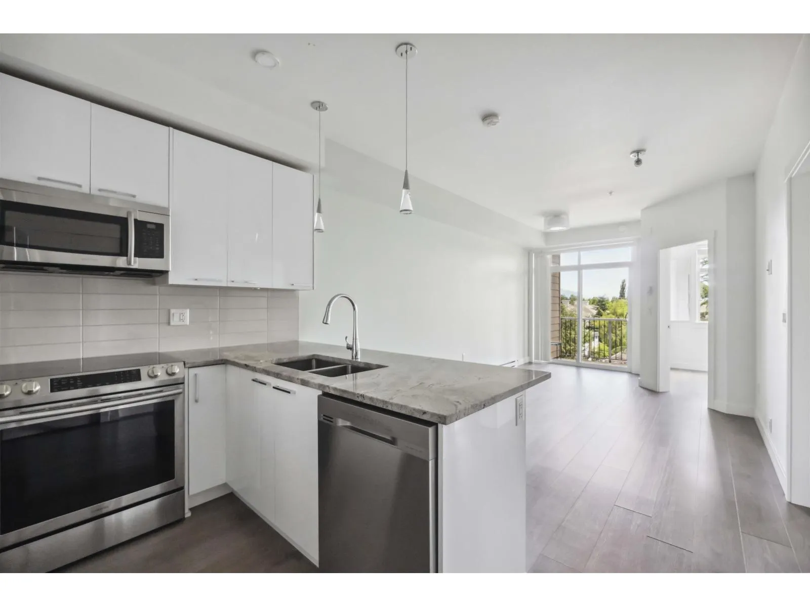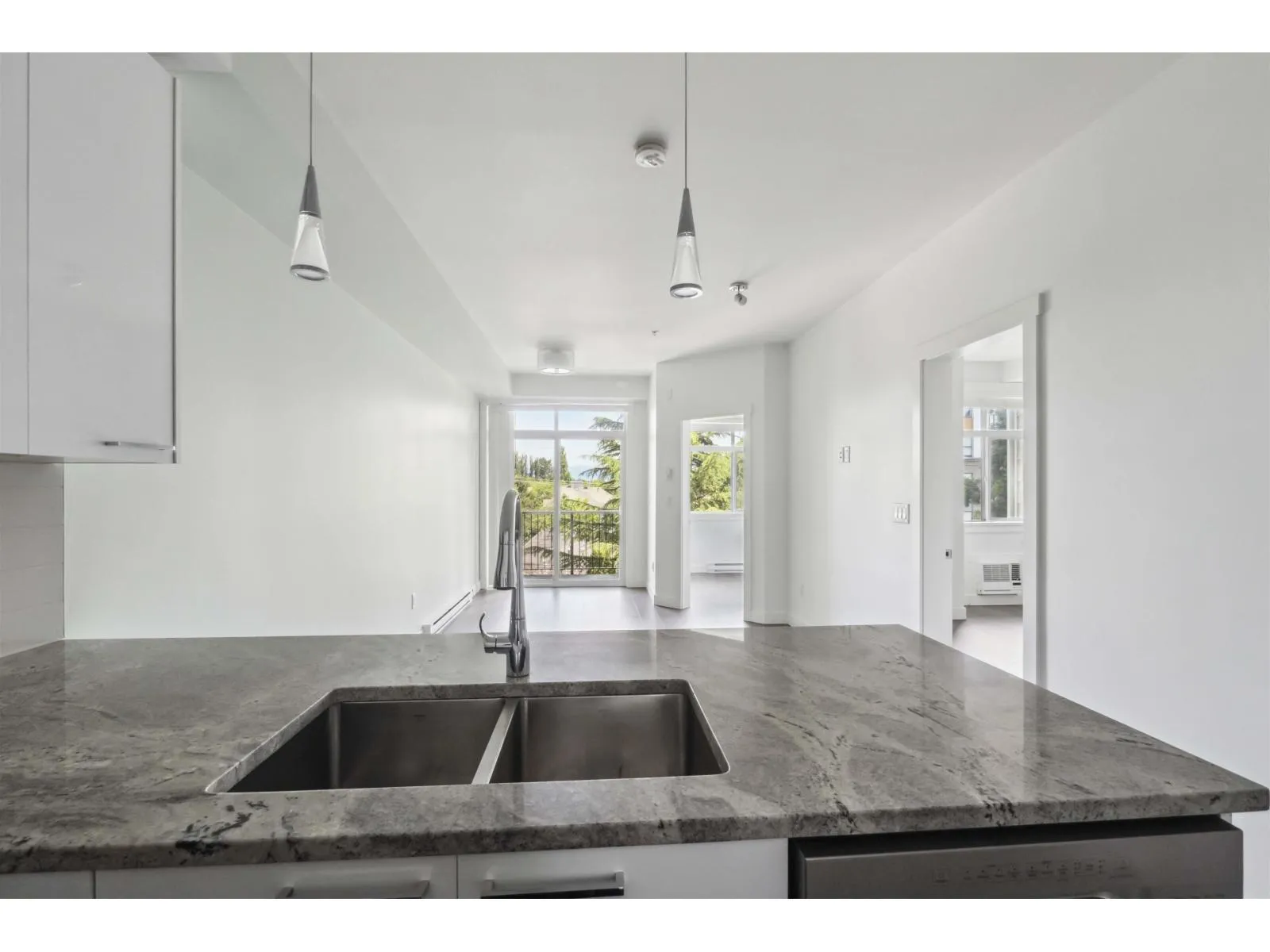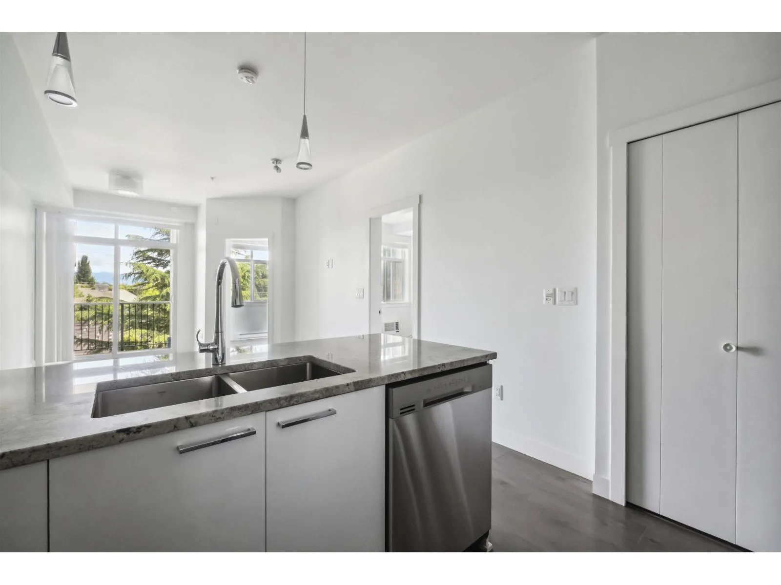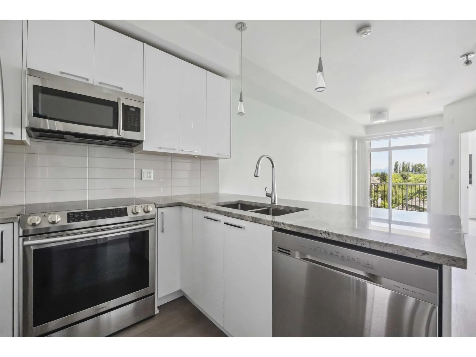 This bright 2-bed, 2-bath home offers modern finishes, open-concept living, and oversized windows that fill the space with natural light. Enjoy a private balcony with mountain views, a sleek kitchen with quartz countertops, and in-suite laundry for convenience. Located steps from shopping, dining, schools, and the future SkyTrain station, this unit offers unbeatable accessibility. With secure parking, pet-friendly policies, and a vibrant neighborhood, it's the perfect blend of comfort, style, and investment potential. (id:27476)