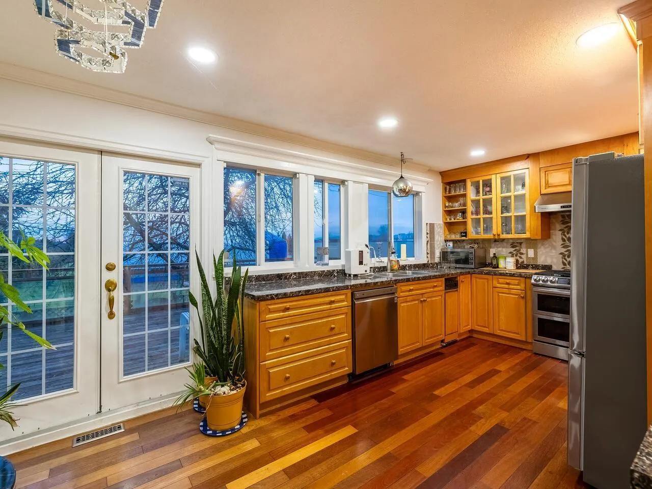 Extensively updated 2,756 sf, 4 level split is loc on quiet street in Murrayville & backs onto Christian School. Designed for entertaining & family entertainment sized liv rm w/elec linear f/p, spacious din rm, updated kitchen w/scads of cabinets, granite counters, updated appliances & E/A, fam rm w/access to multi-tiered deck w/b/i hot tub & adjoining 3 pce bath. Upper level boasts 2 baths & 3 bdrms including spacious primary bdrm w/4 pce ensuite w/twin sinks, & 5 pce main bath. Lower level w/accommodation for extended family. Extensive updates include: flrs, appliances, baths, roof, many of the windows, furnace & h/w tank. A must see for the discerning Buyer looking for extensively updated home for the extended family. Mn areas of the home was significantly updated in 2021, bsmt in 2024 (id:27476)