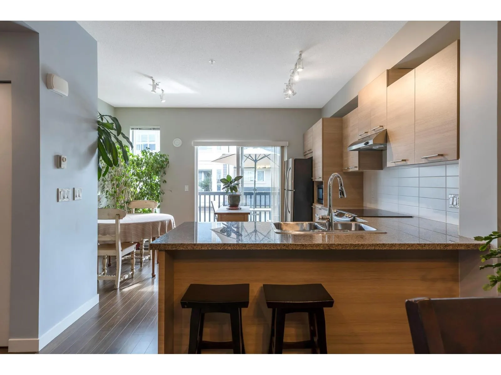 Original owner! Red Maple Park is a Polygon development and their renowned qualify shows through. This is one of the most desirable developments in Willoughby and boasts RESORT STYLE AMMENITIES in the 10,000 foot Maple Club including an outdoor pool, hot tub, large party room with pool table, theatre room that seats 12 and indoor ball hockey arena. Located in one of the quietest locations in the development, it features a well laid out main floor, two large bedrooms upstairs - both can accommodate a king sized bed. Tastefully appointed and has 2 outdoor areas; a sun drenched and south facing sun deck off the kitchen and a fenced yard as well, plus a double tandem garage. Steps to Richard Bullpitt Elem and all the shops, dining, transit, parks and entertainment in Willoughby. Low monthly maintenance fee $316.84 includes all amenities! (id:27476)