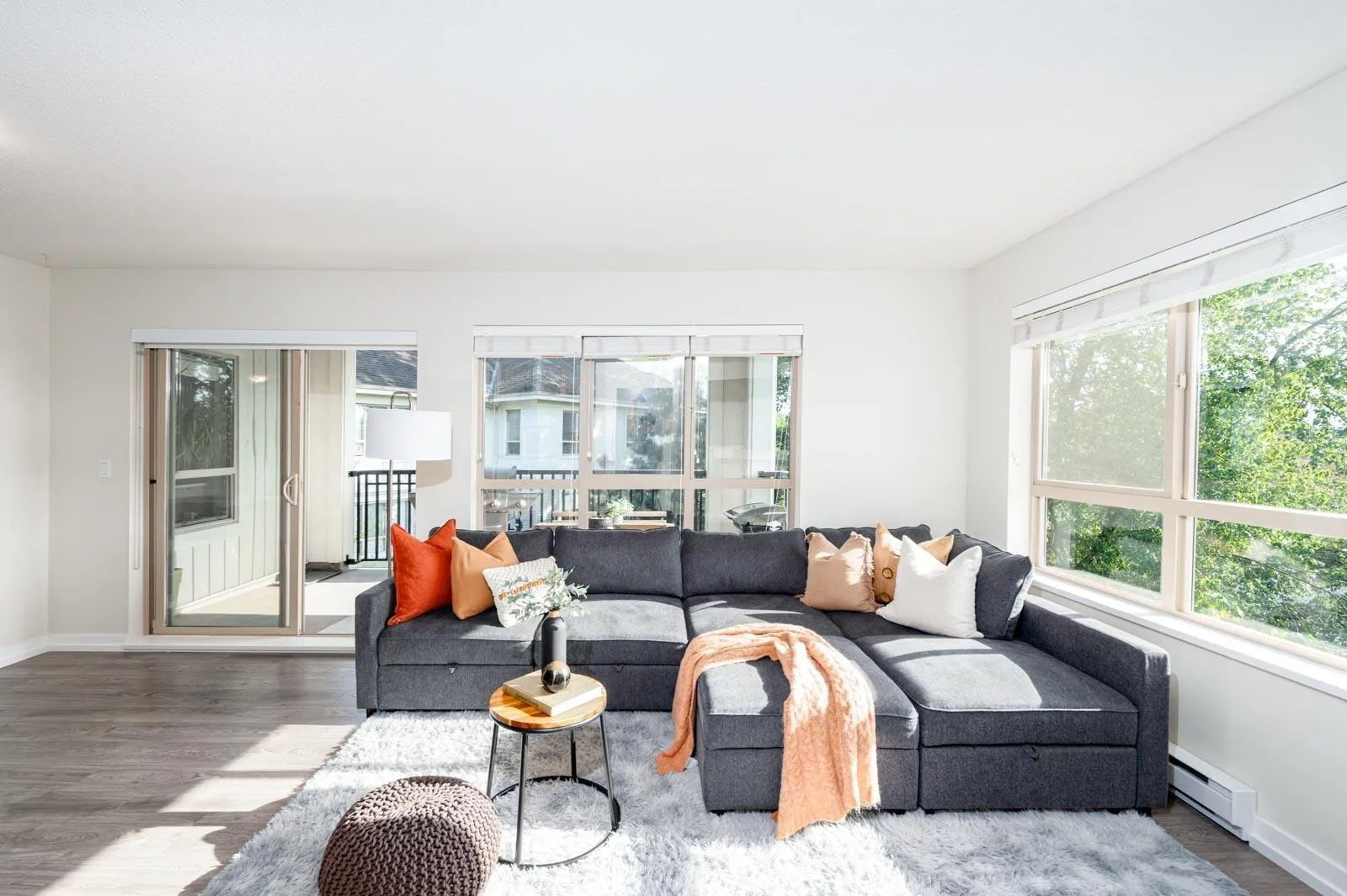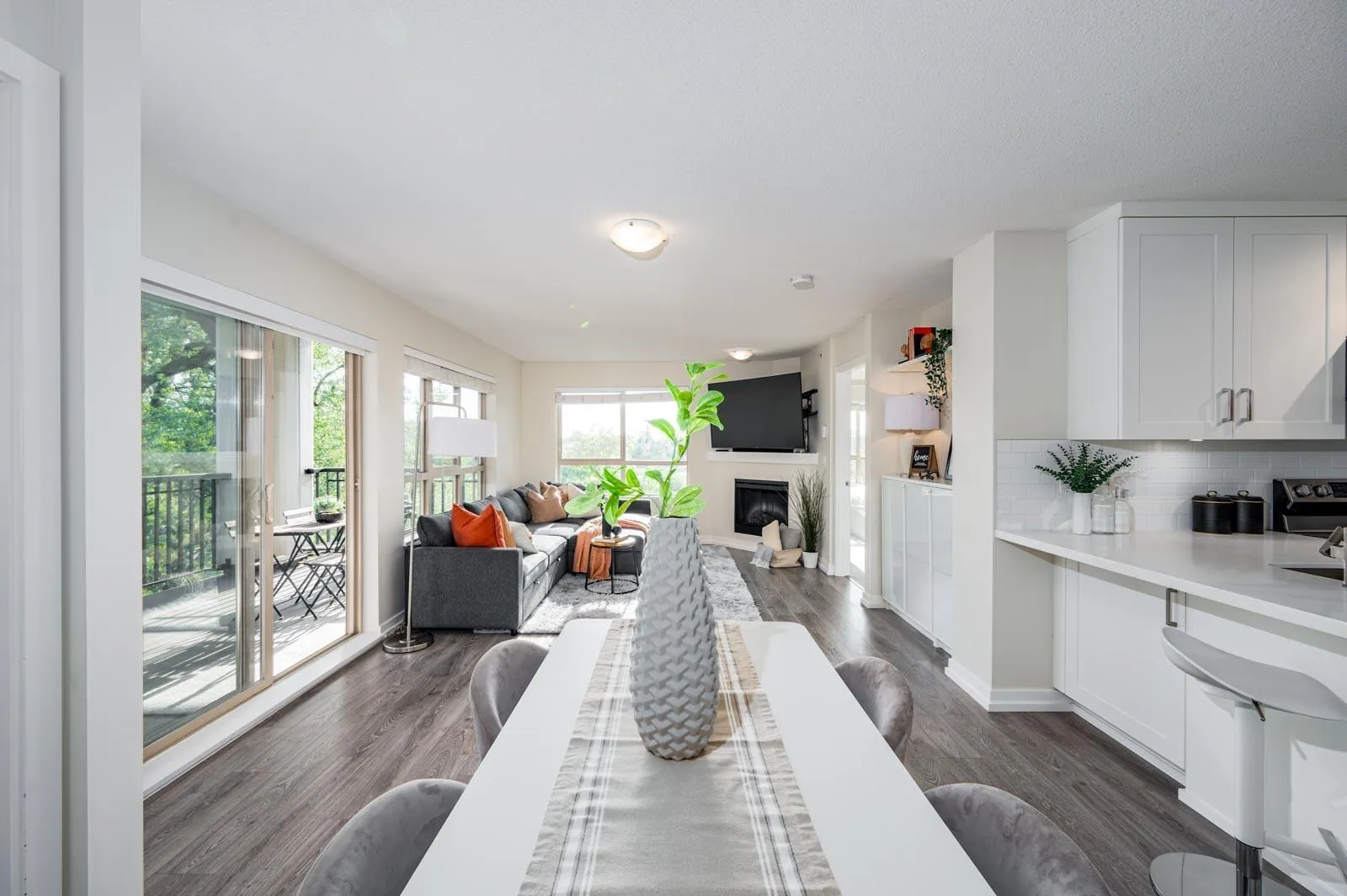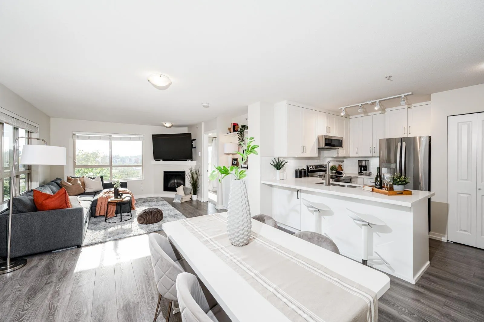 Top-floor, renovated (Over 40K in upgrades) corner unit at The Grove! This bright 2-bed, 2-bath home offers a beautiful kitchen with slow-close cabinetry, Caesarstone quartz counters, new appliances, wide plank flooring, and updated bathrooms. Spacious cross-hall layout with a large covered balcony and peaceful creekside views. Includes 2 parking stalls. One of the best units in the complex - private, stylish, and steps from shopping, schools, and transit. Move-in ready with top-quality upgrades! Perfect for first-time homebuyers or investors! (id:27476)