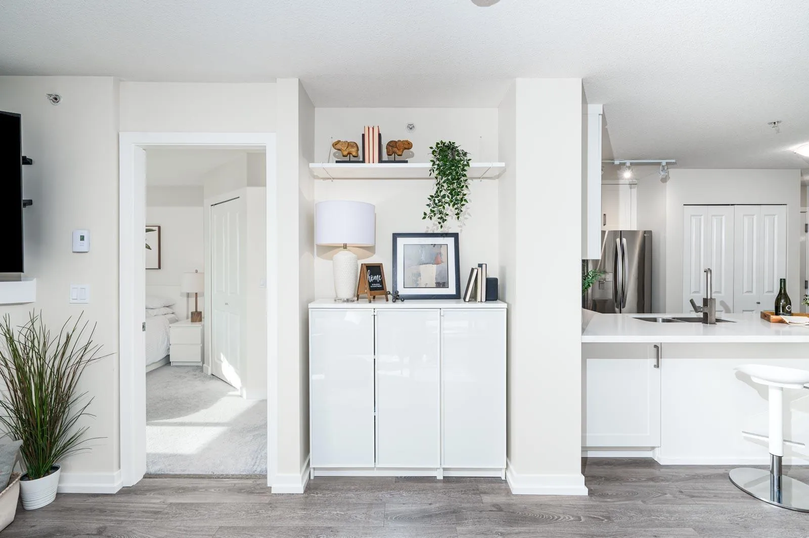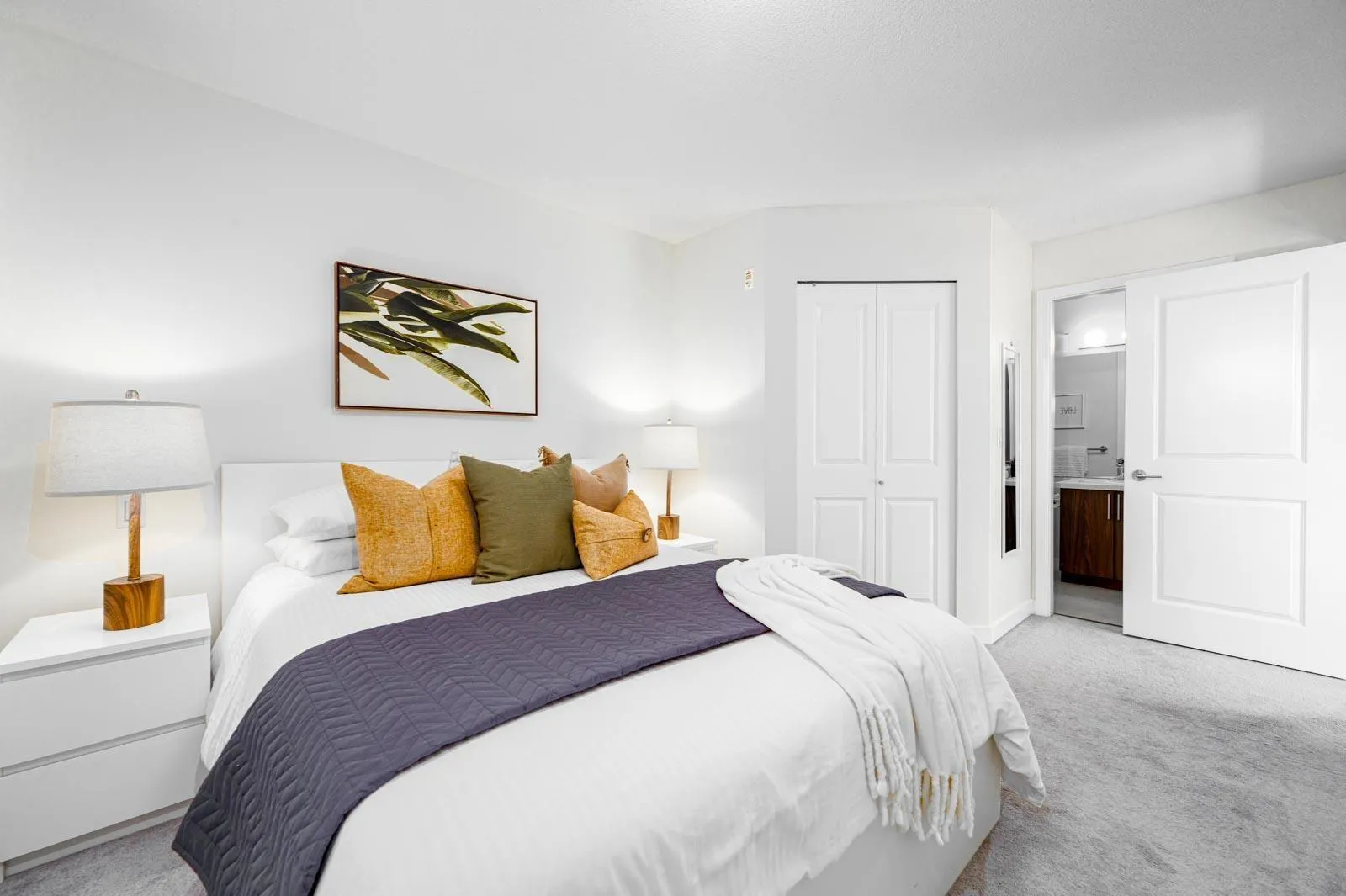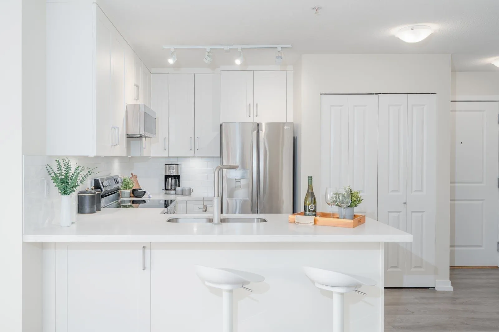 Top-floor, renovated (Over 40K in upgrades) corner unit at The Grove! This bright 2-bed, 2-bath home offers a beautiful kitchen with slow-close cabinetry, Caesarstone quartz counters, new appliances, wide plank flooring, and updated bathrooms. Spacious cross-hall layout with a large covered balcony and peaceful creekside views. Includes 2 parking stalls. One of the best units in the complex - private, stylish, and steps from shopping, schools, and transit. Move-in ready with top-quality upgrades! Perfect for first-time homebuyers or investors! (id:27476)