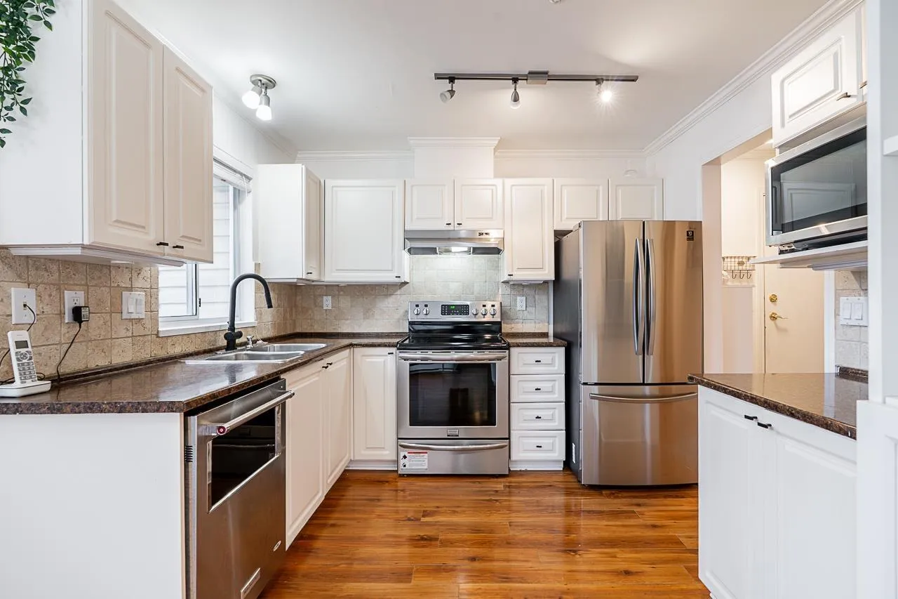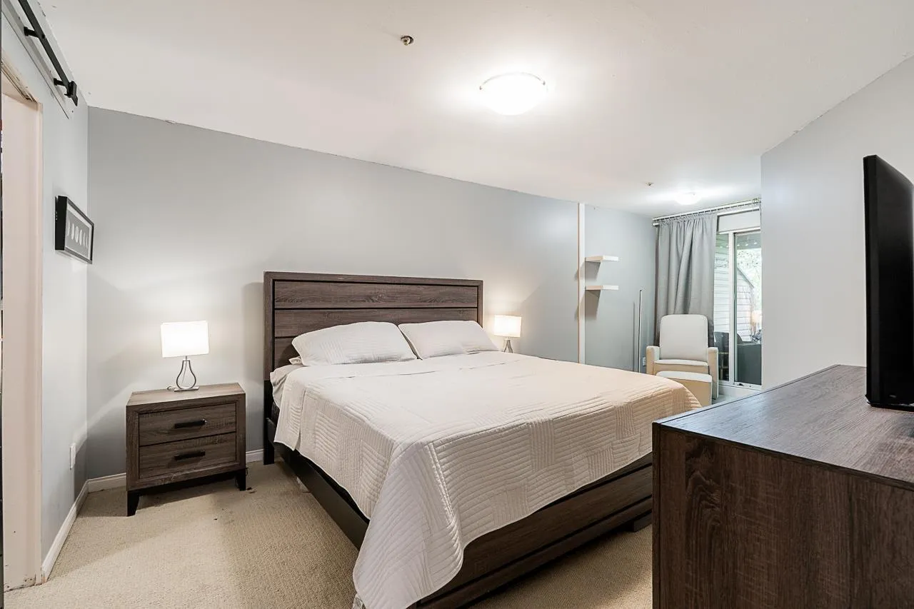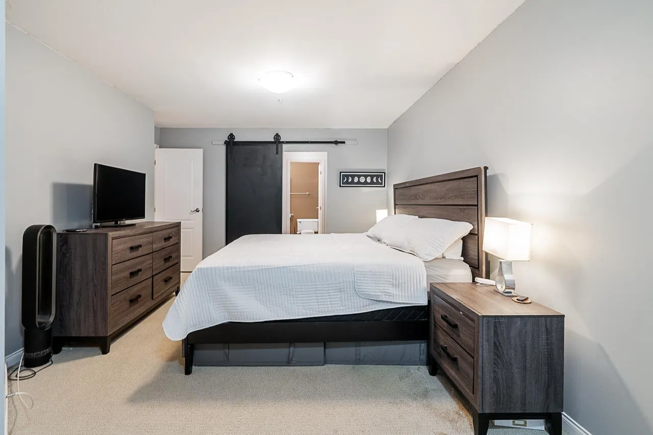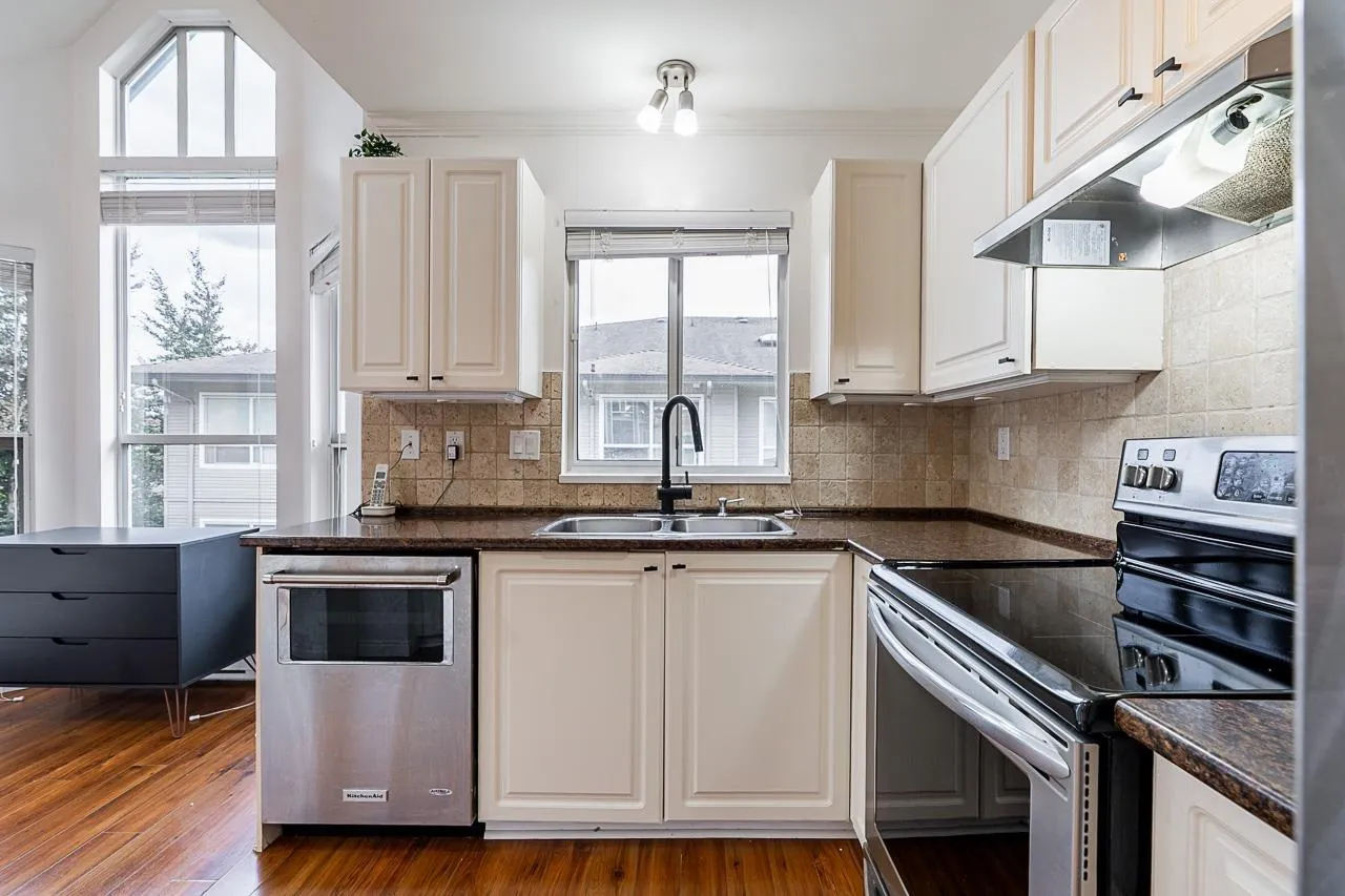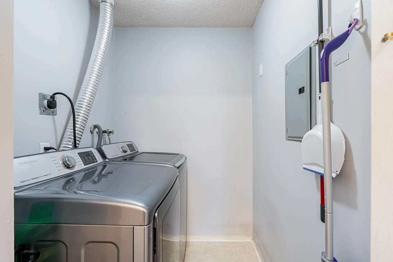Welcome to Cambridge Court, a spacious top-floor corner home offering 1,228 sq. ft. of bright and airy living. Vaulted ceilings and oversized windows fill the space with natural light, while the east-facing balcony is perfect for your morning coffee or relaxing after work. This well-maintained 2 bedroom, 2 bathroom layout features a generous living and dining area, cozy gas fireplace, full-size laundry room, and heated bathroom floors for year-round comfort. The proactive, well-managed strata includes gas and hot water in your maintenance fee. Ideally located within walking distance to shopping, restaurants, parks, and transit, just minutes from the future SkyTrain station. One secure underground parking stall included. Move-in ready, book your private tour today! (id:27476)