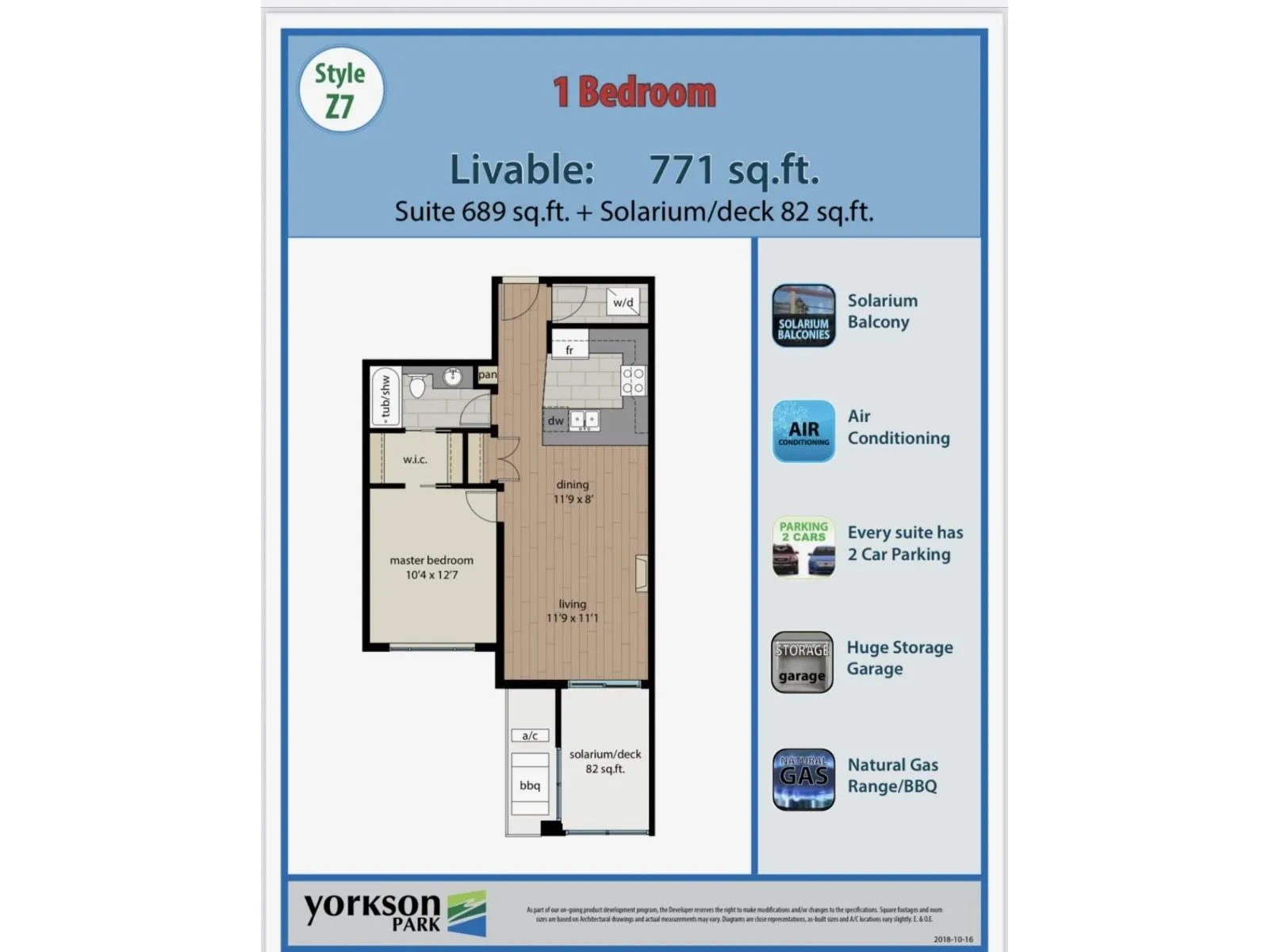 **PENTHOUSE w/ 13FT CEILINGS facing WEST built by QUADRA in the luxurious YORKSON PARK complex** Step into luxury living with our exquisite one-bed, one-bath residence spanning 771 sqft, complete with a spacious 82 sqft retractable glass panel solarium/deck. Indulge in top-of-the-line appliances, sleek quartz countertops, and the comfort of heated flooring in the bathroom. Entertain effortlessly with a natural gas line on the patio and relish in the convenience of built-in AC. 2 parking spots with pullup storage locker at end of spot & EV charger included! Nestled in a prime location, enjoy proximity to schools, shopping, transit, and easy highway access! (id:27476)