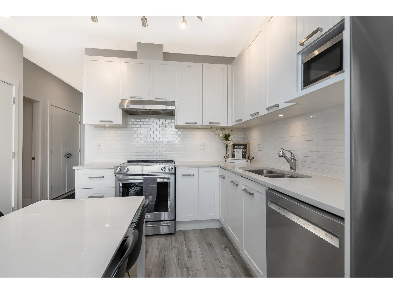 The Civic - Modern Living in the Heart of Langley City! Ideal for first-time buyers, remote professionals, or investors, this very well maintained penthouse with 1 Bed + 1 Flex room (Junior bedroom) offers a smart and versatile 601 SQFT layout. Bright and airy with 10ft + ceilings and expansive windows that flood the space with natural light, this home features beautiful contemporary finishes including full size stainless steel appliances, quartz countertops, Kohler fixtures, and high-end laminate flooring in living room. Entertain with ease using the Amenity Room, Games Room, and Guest Suite. Enjoy a vibrant, walkable neighborhood just steps to the future Surrey-Langley SkyTrain, Save-On-Foods, Starbucks, restaurants, parks, schools, gym, and easy access to Fraser Hwy. (id:27476)
