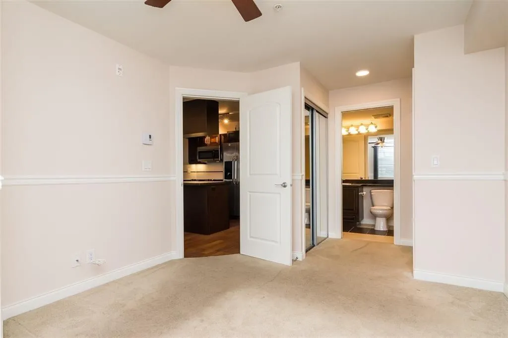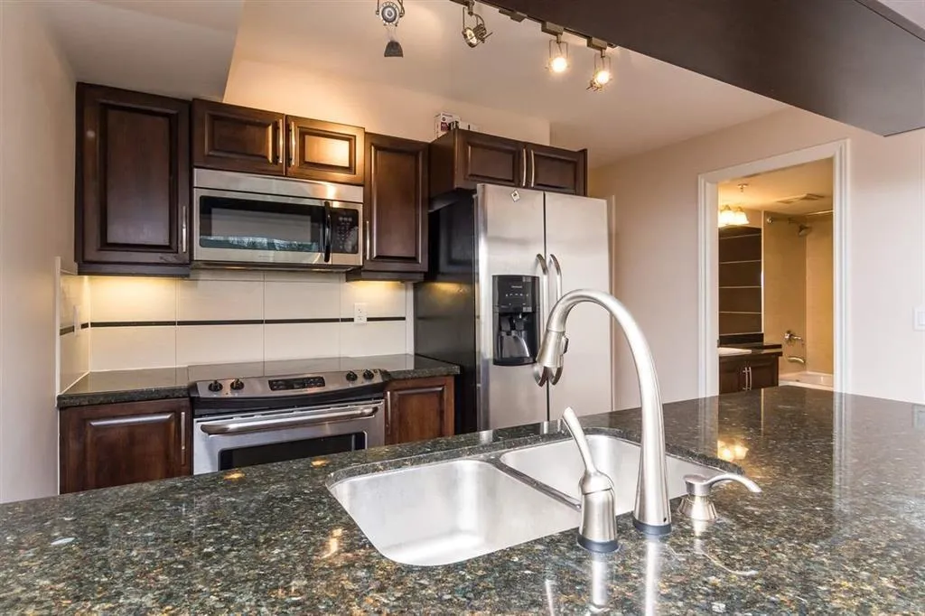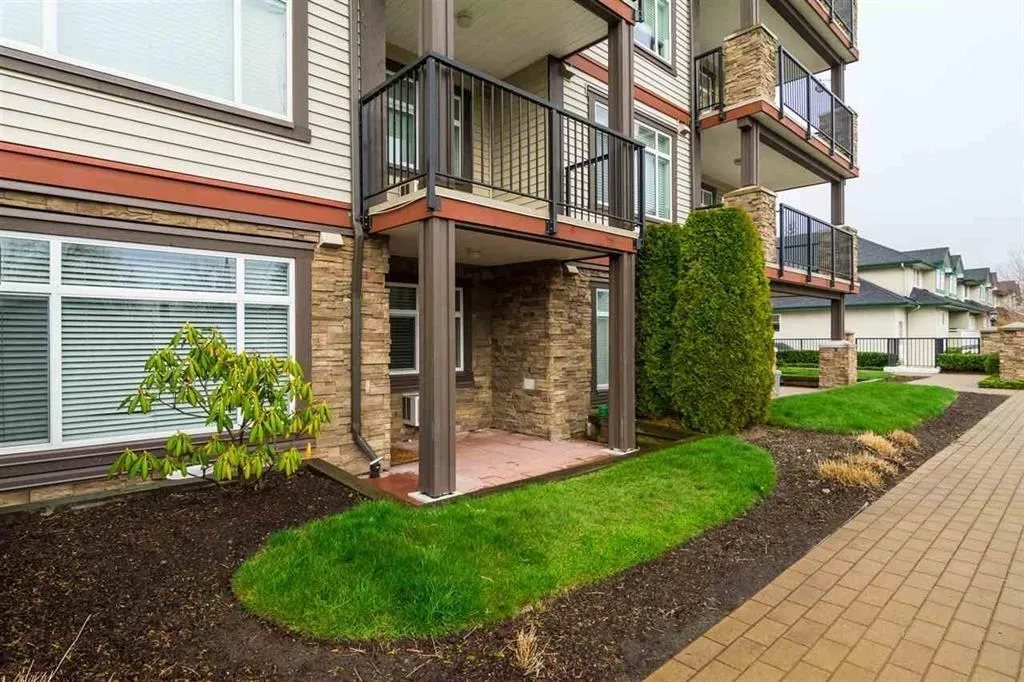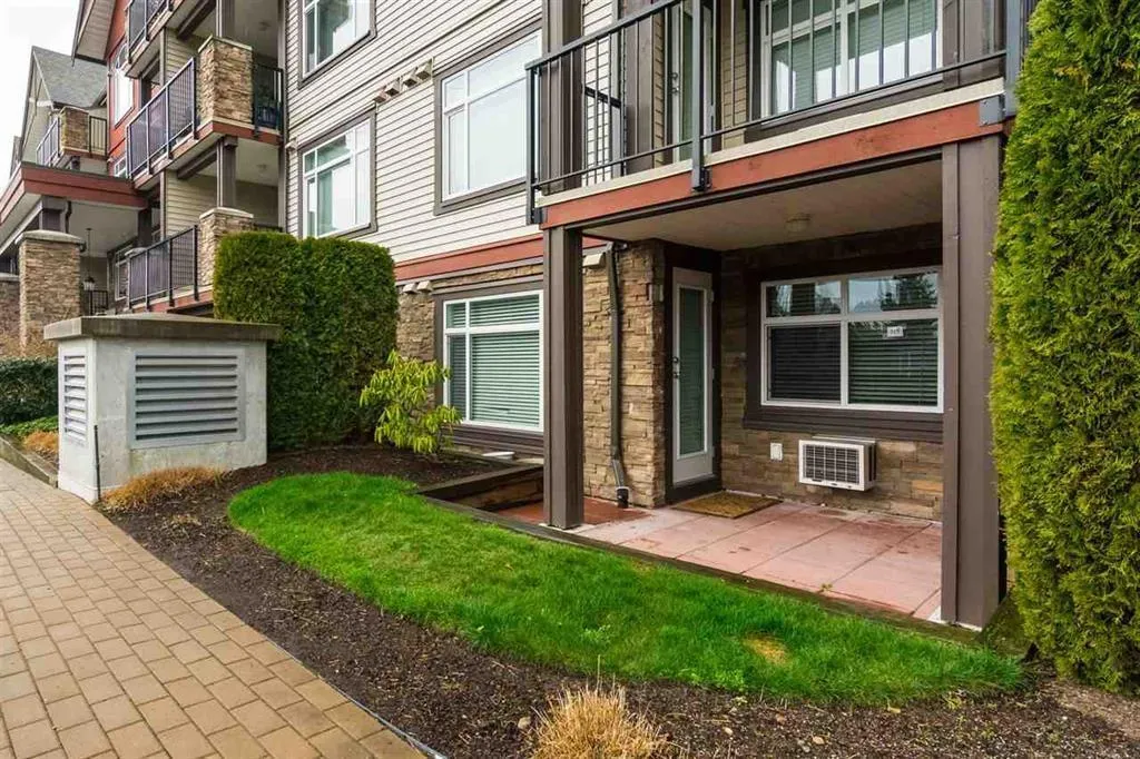 Quick possession possible! Welcome to Madison Crossing by Quadra Homes! This beautiful 1 bedroom + Den ground floor unit has bright southern exposure with lots of windows and your own private entrance! Open concept kitchen with cherry cabinets, stainless steel appliances, granite countertops & a large island. Perfect for entertaining! Master bedroom with ensuite. Use the den as an office or 2nd room! Large outdoor patio, great for those with kids or pets! In-wall air conditioning included. Located on a quiet street and near Willowbrook Mall, schools (Nicomekl Elementary & Global Montessori), transit, near future Skytrain Station, restaurants and parks. Rentals allowed, no restrict/. Perfect for first time buyers or investors! (id:27476)