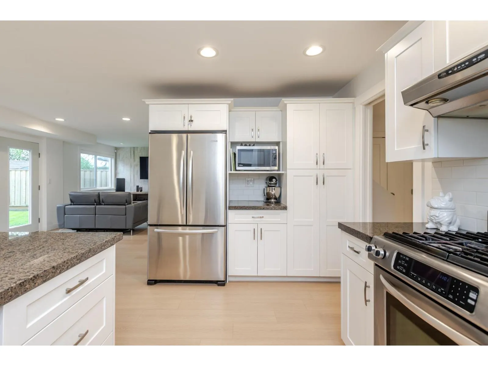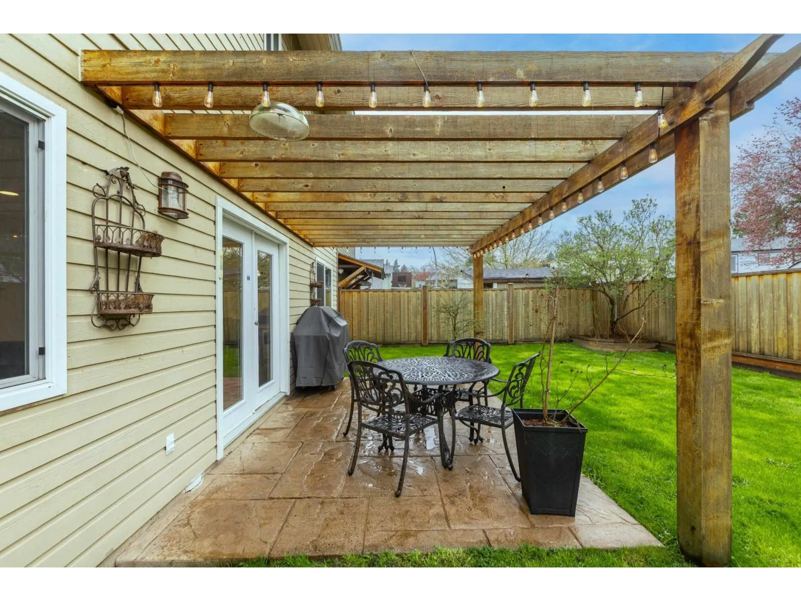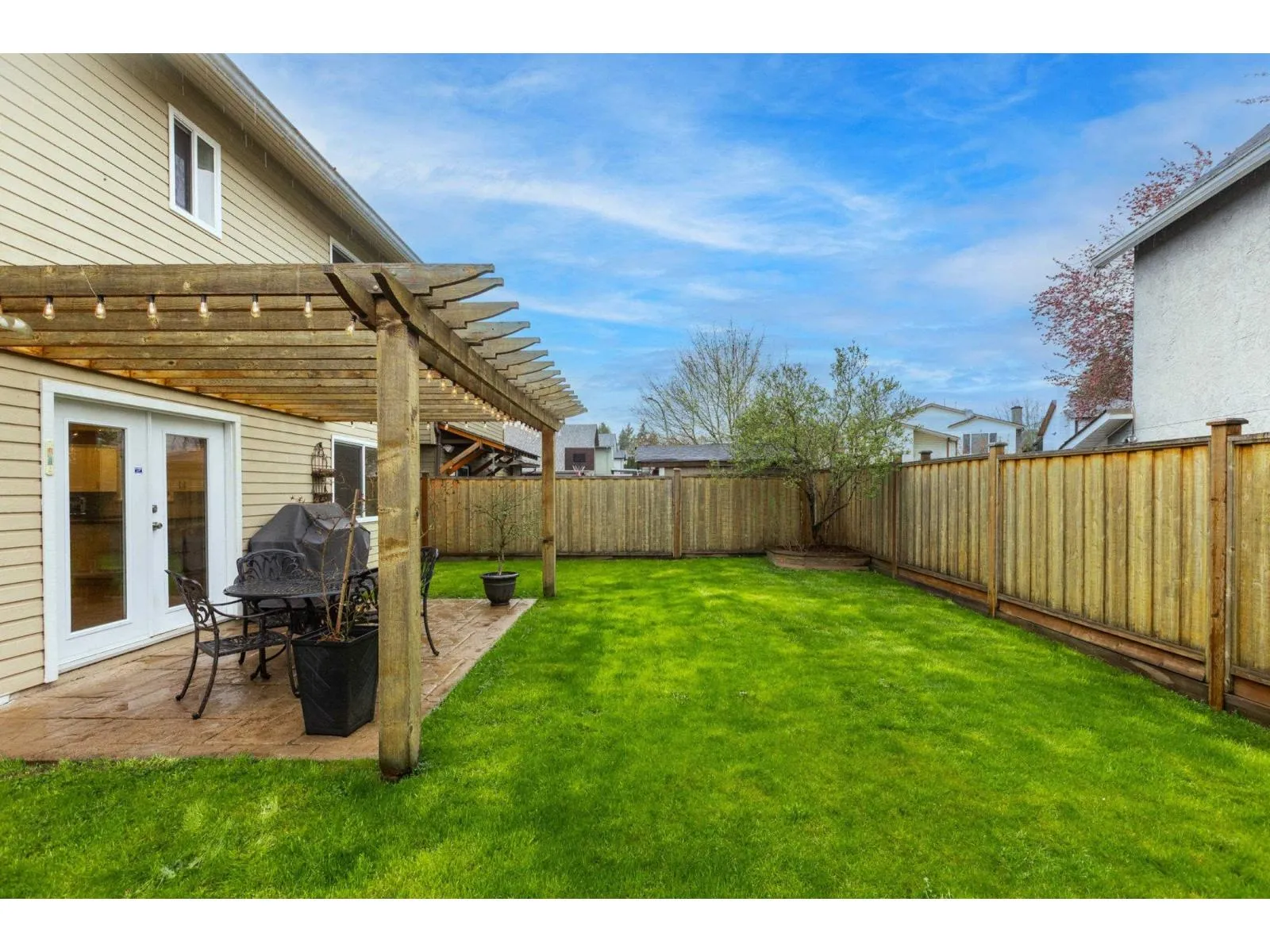 Beautifully updated 3-bed, 3-bath home in a prime Willoughby location! Features include new wide-plank laminate flooring on the main, new carpet upstairs, fresh paint, & new interior doors. The bright, open living room layout offers a cozy gas fireplace alongside a stylish kitchen with white shaker cabinets, stone counters, stainless steel appliances, & a large eat-up bar. Upstairs has 3 spacious bedrooms, including a primary with walk-in closet & ensuite. Bathrooms are tastefully refreshed. Enjoy the fully fenced backyard with stamped concrete patio, pergola, & grassy space for kids - plus a dog run along the side of the home. Extras include EV plug-in ready, central vac rough-in, security cameras, & single-car garage. Close to parks, shopping and future Skytrain! Just move in and enjoy! (id:27476)