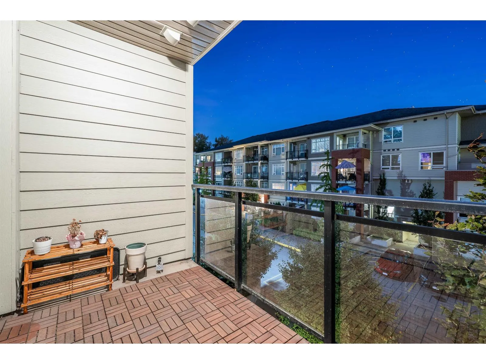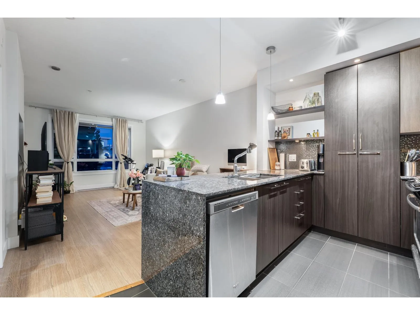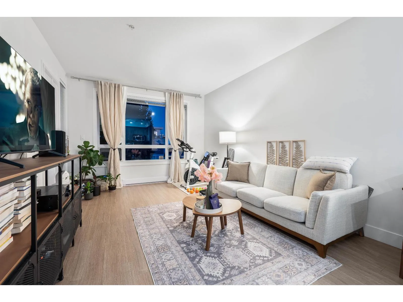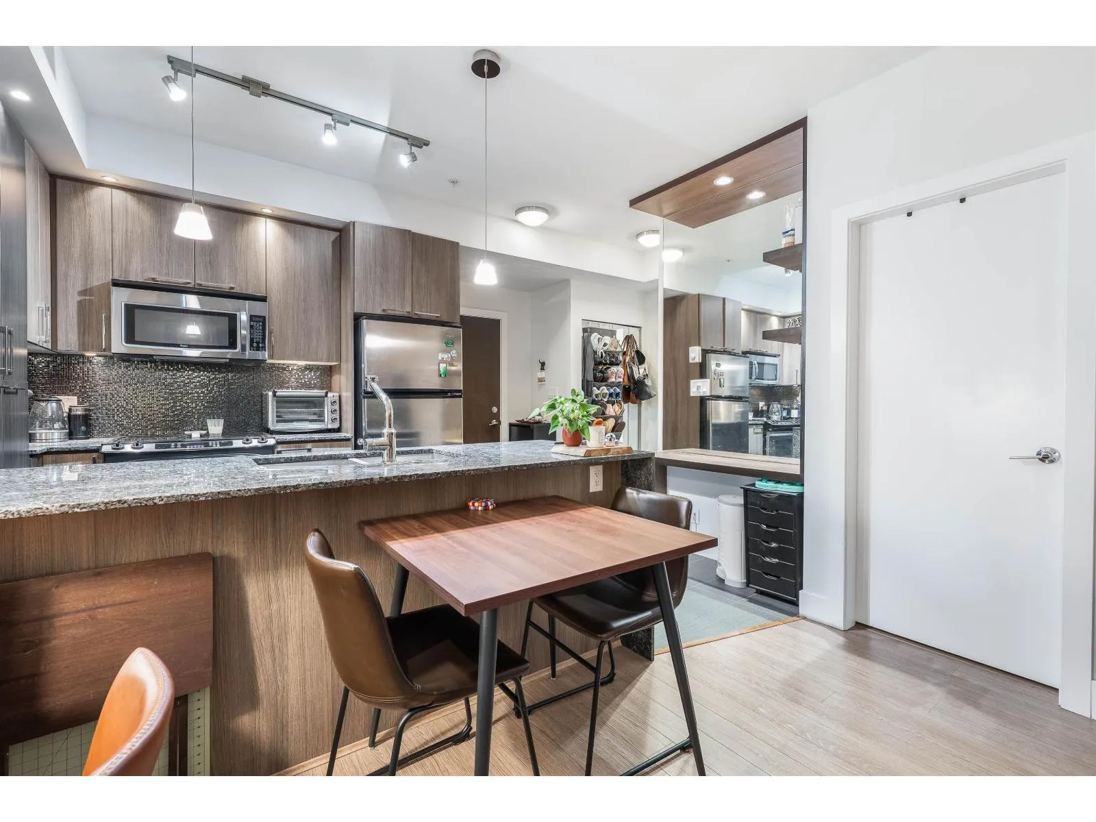 Welcome to Elements, located in one of Langley's most sought-after communities. This bright and modern 1-bedroom home features an open-concept layout with 9-foot ceilings, oversized windows, and stylish wide-plank flooring. The gourmet kitchen boasts granite countertops, stainless steel appliances, elegant cabinetry, and a spacious island perfect for entertaining. The living and dining areas flow seamlessly to a covered balcony, offering a peaceful outlook. The bedroom is spacious and inviting, and the bathroom showcases quality finishes with stone countertops and tile flooring. Residents have access to exceptional amenities, including a fully equipped gym, yoga studio, clubhouse lounge, party room, kids' playroom. (id:27476)