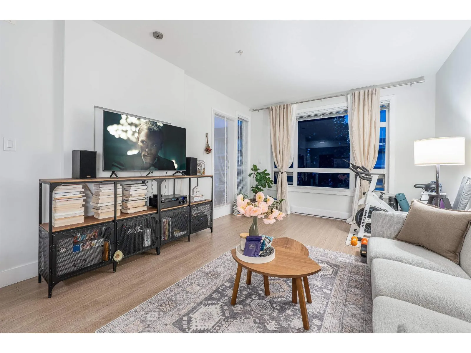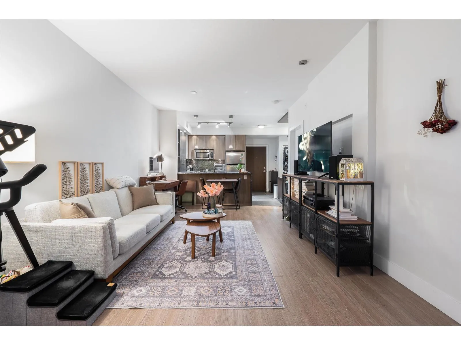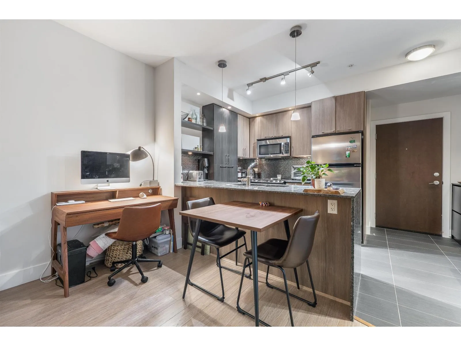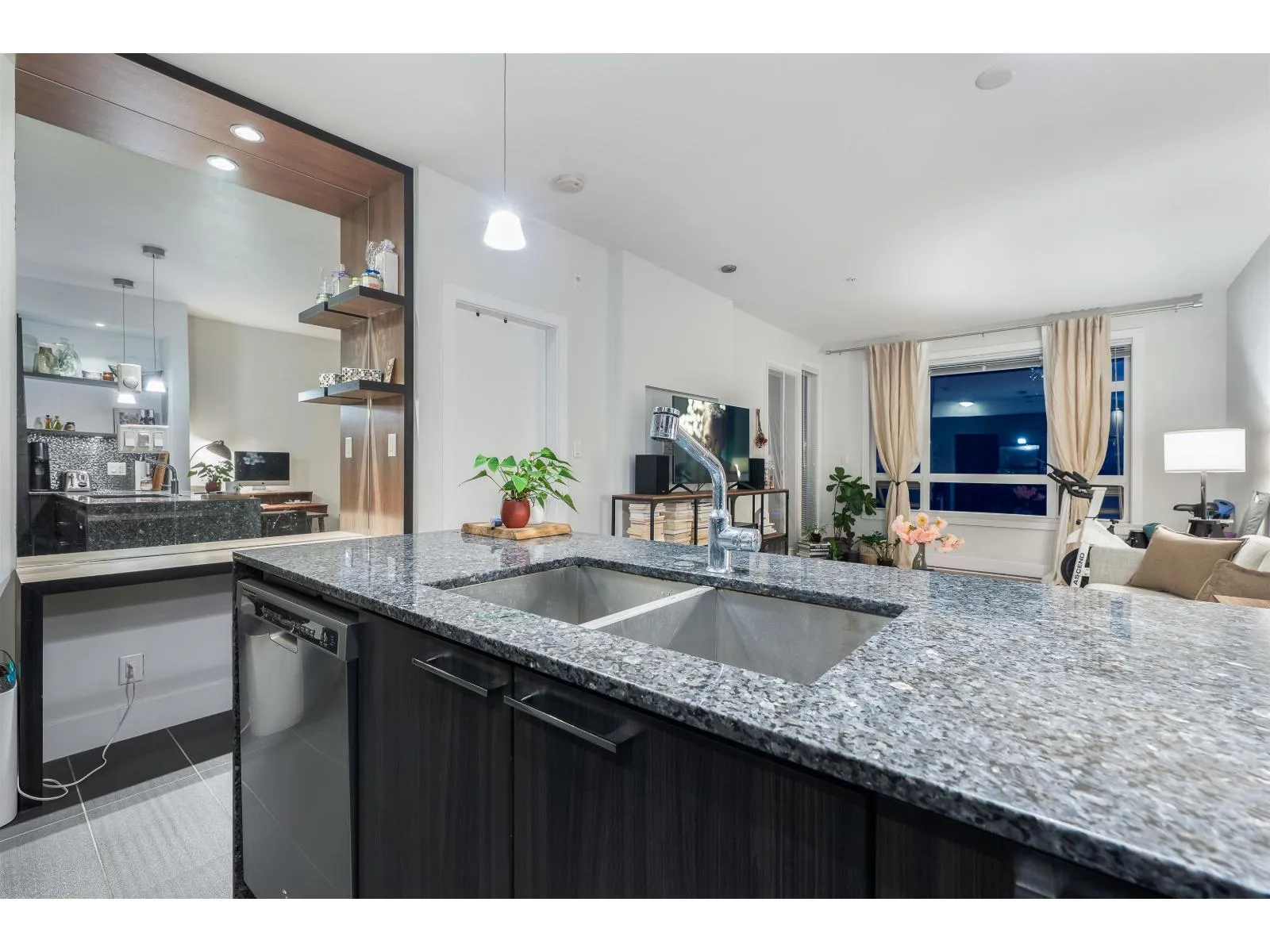 Welcome to Elements, located in one of Langley's most sought-after communities. This bright and modern 1-bedroom home features an open-concept layout with 9-foot ceilings, oversized windows, and stylish wide-plank flooring. The gourmet kitchen boasts granite countertops, stainless steel appliances, elegant cabinetry, and a spacious island perfect for entertaining. The living and dining areas flow seamlessly to a covered balcony, offering a peaceful outlook. The bedroom is spacious and inviting, and the bathroom showcases quality finishes with stone countertops and tile flooring. Residents have access to exceptional amenities, including a fully equipped gym, yoga studio, clubhouse lounge, party room, kids' playroom. (id:27476)
