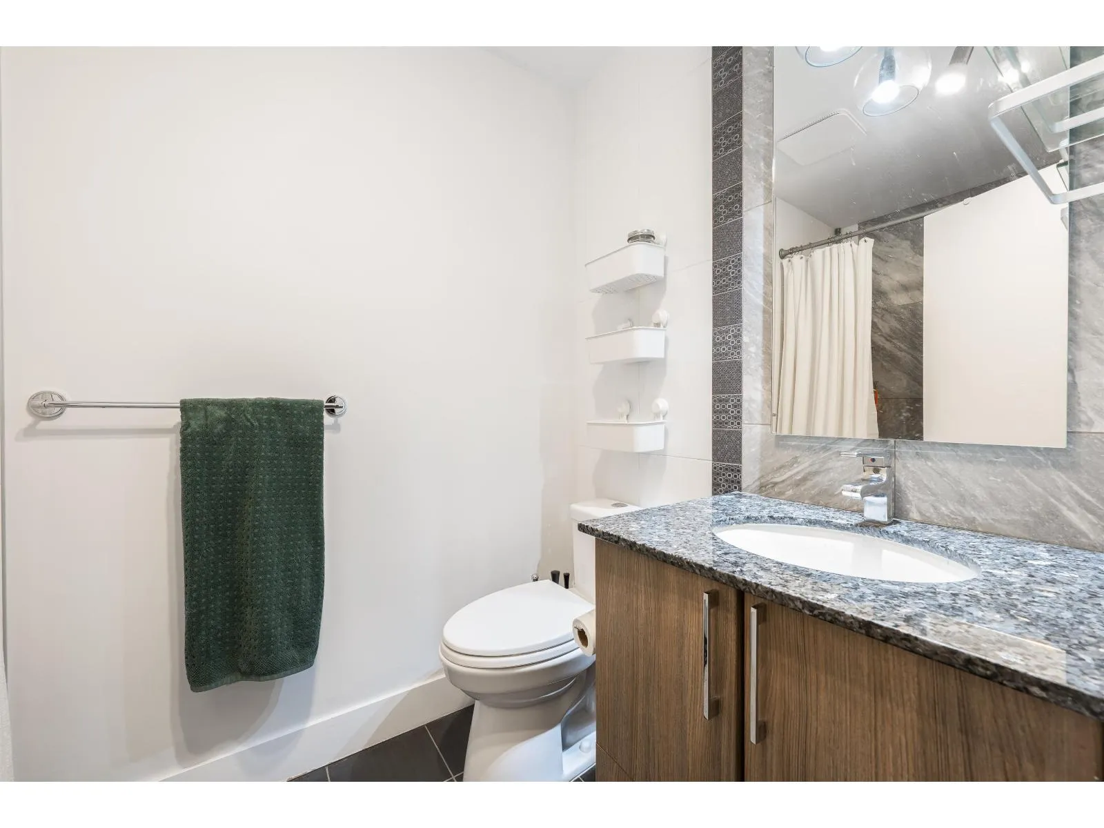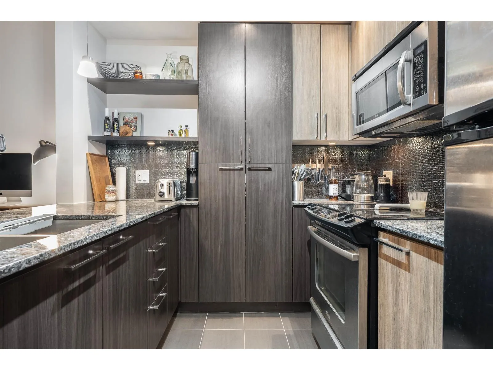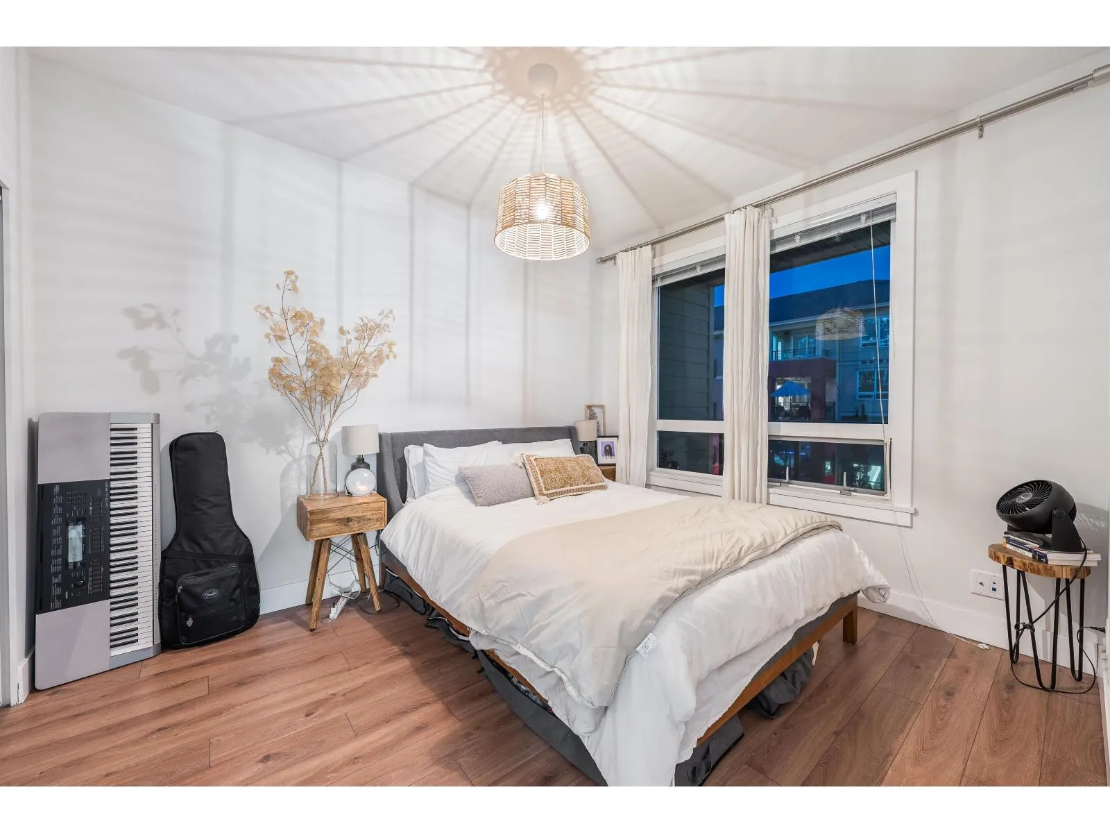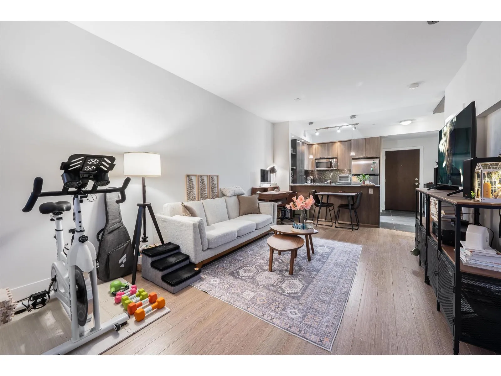 Welcome to Elements, located in one of Langley's most sought-after communities. This bright and modern 1-bedroom home features an open-concept layout with 9-foot ceilings, oversized windows, and stylish wide-plank flooring. The gourmet kitchen boasts granite countertops, stainless steel appliances, elegant cabinetry, and a spacious island perfect for entertaining. The living and dining areas flow seamlessly to a covered balcony, offering a peaceful outlook. The bedroom is spacious and inviting, and the bathroom showcases quality finishes with stone countertops and tile flooring. Residents have access to exceptional amenities, including a fully equipped gym, yoga studio, clubhouse lounge, party room, kids' playroom. (id:27476)