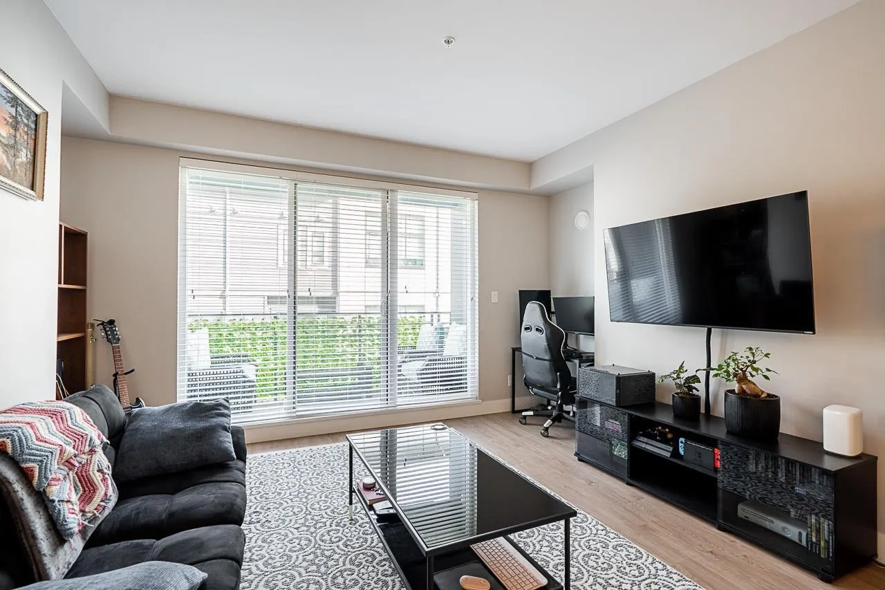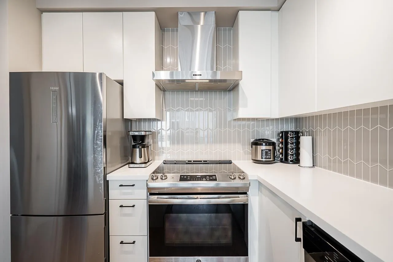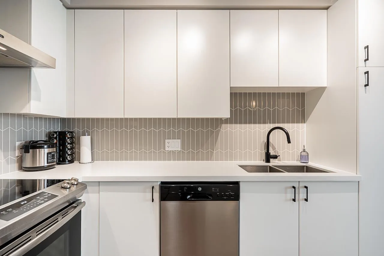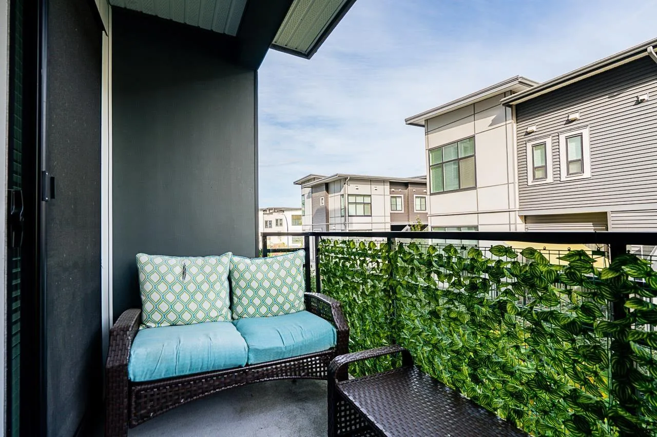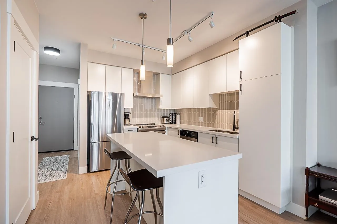 Welcome to this modern and thoughtfully designed 1 bed+den unit, offering 661 sqft of comfortable living in the heart of Willoughby. Situated on the quiet inside of the third floor, this unit provides a bright and functional open-concept layout that maximizes every inch of space. Enjoy cooking in the full-size kitchen featuring sleek cabinetry, quartz countertops, and stainless steel appliances. The generous living area opens to a private balcony, ideal for relaxing or entertaining. The versatile den is perfect for a home office, nursery, or extra storage. This home includes ample closet space, in-suite laundry, and access to Hudson & Singer's lifestyle amenities, including a courtyard, lounge, and communal workspaces. Located steps from Willoughby Town Centre, schools, parks, and transit. (id:27476)