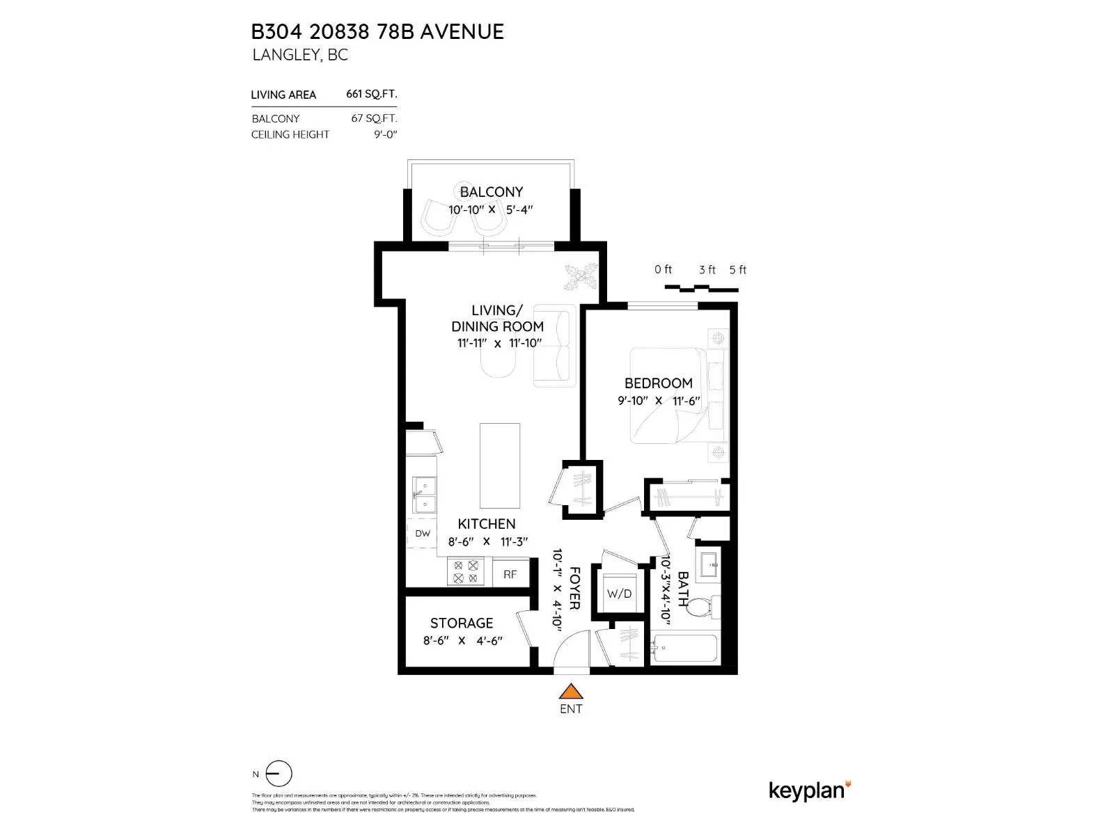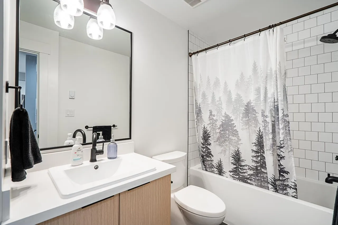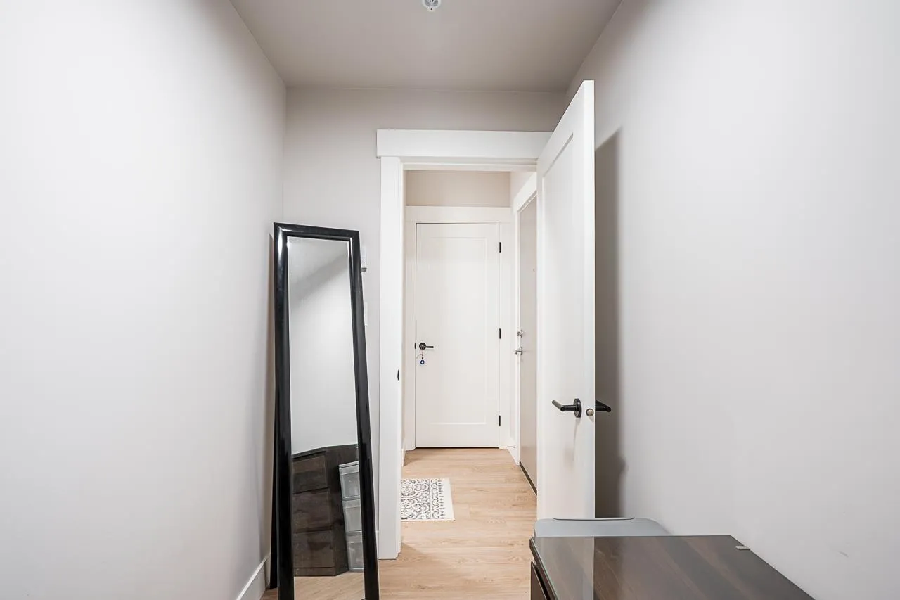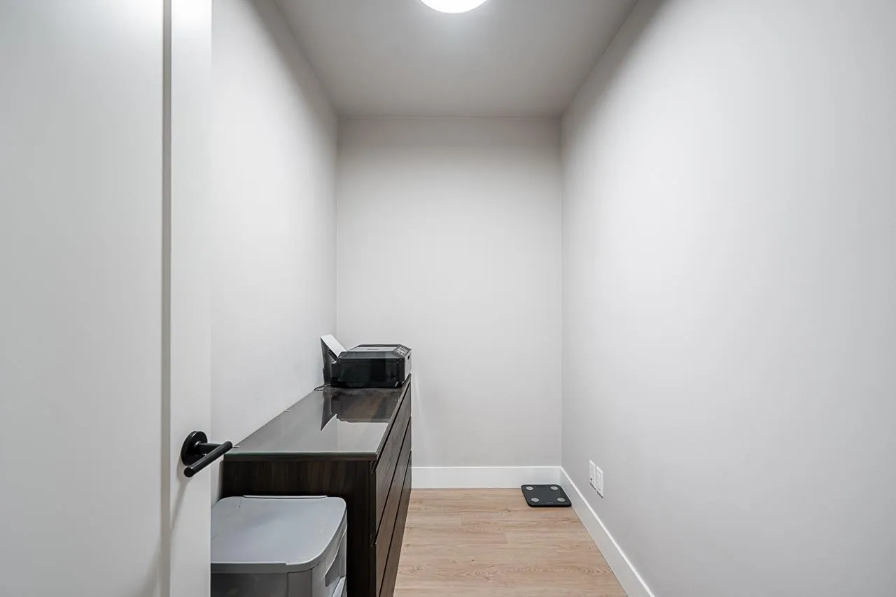 Welcome to this modern and thoughtfully designed 1 bed+den unit, offering 661 sqft of comfortable living in the heart of Willoughby. Situated on the quiet inside of the third floor, this unit provides a bright and functional open-concept layout that maximizes every inch of space. Enjoy cooking in the full-size kitchen featuring sleek cabinetry, quartz countertops, and stainless steel appliances. The generous living area opens to a private balcony, ideal for relaxing or entertaining. The versatile den is perfect for a home office, nursery, or extra storage. This home includes ample closet space, in-suite laundry, and access to Hudson & Singer's lifestyle amenities, including a courtyard, lounge, and communal workspaces. Located steps from Willoughby Town Centre, schools, parks, and transit. (id:27476)