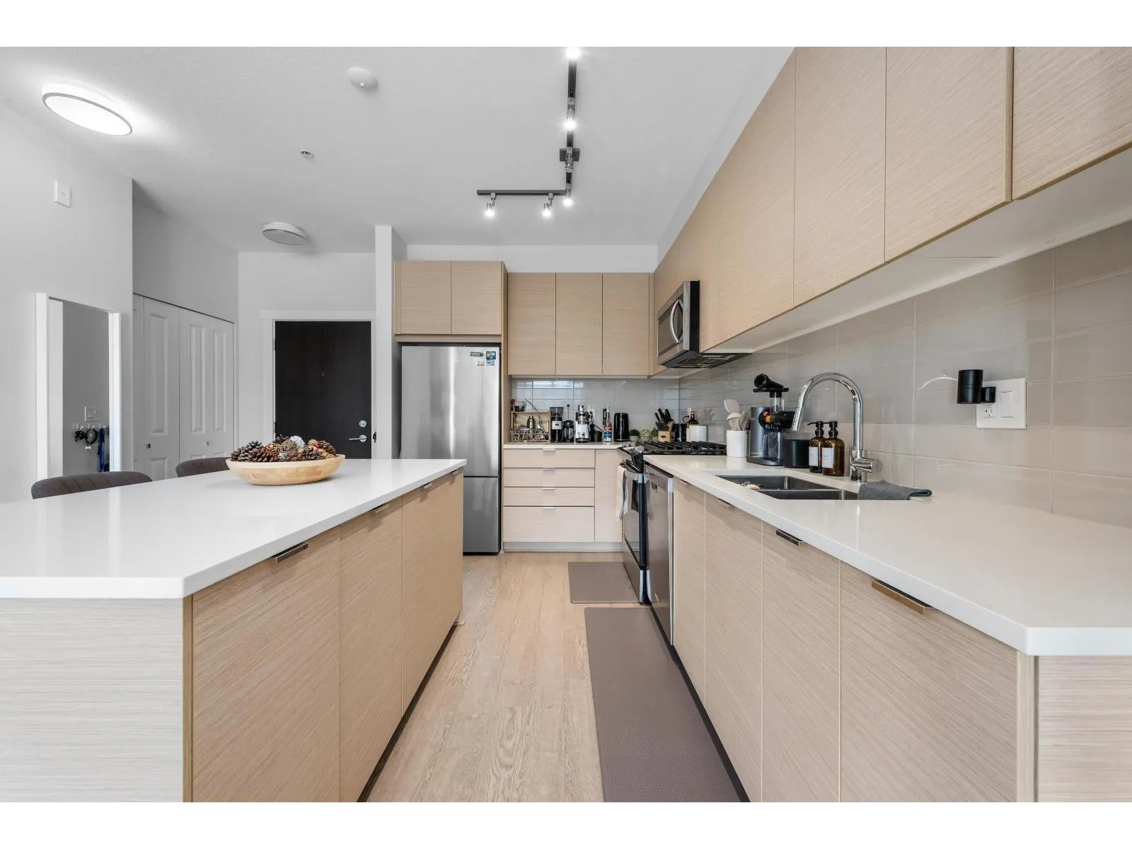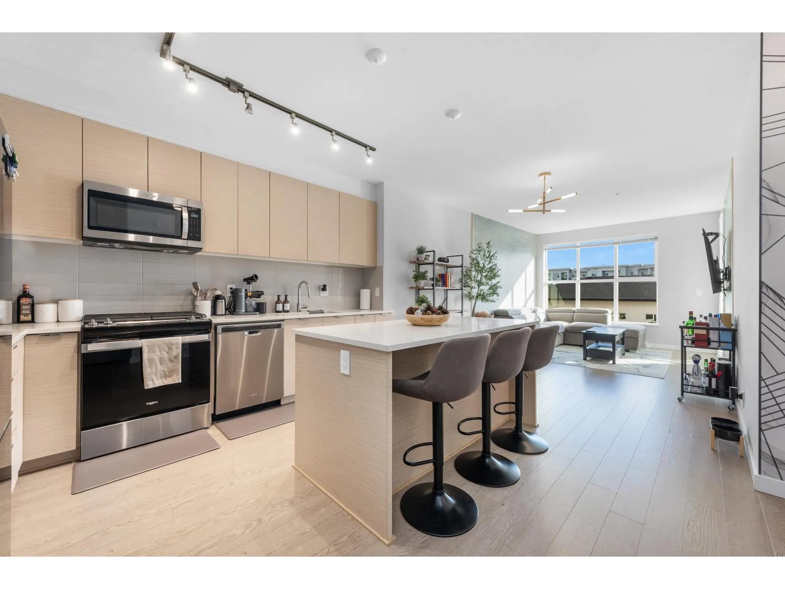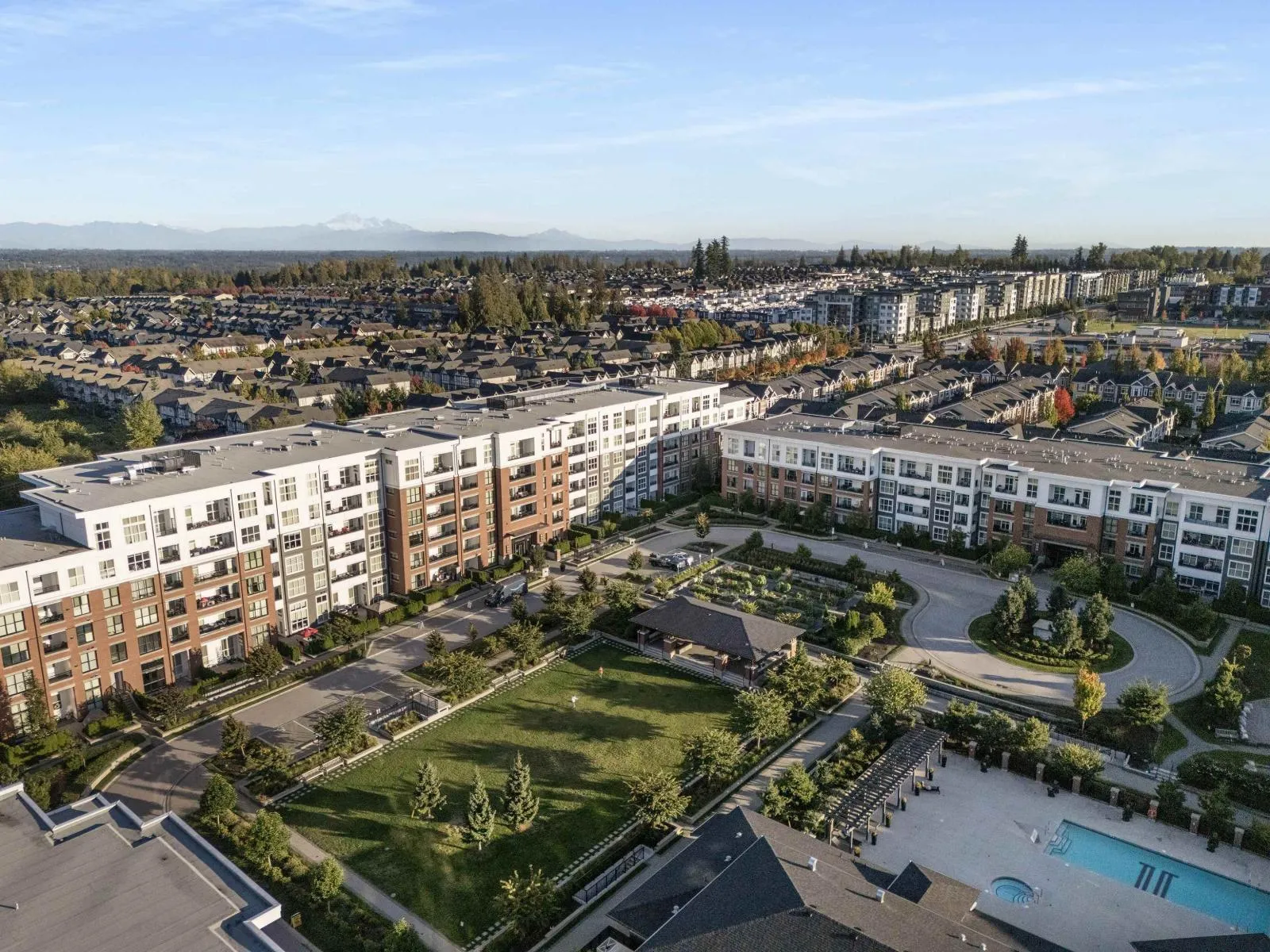 Experience resort-style living at Union Park by Polygon Homes in the heart of Langley. This bright 2 bedroom, 2 bathroom home features overheight 9 ft ceilings, engineered stone countertops, and sleek stainless steel appliances; including a 17 cu ft fridge, gas range, dishwasher, and microwave with hood fan. Enjoy exclusive access to over 12,000 sq ft of amenities at the Union Club with an outdoor pool and whirlpool spa, air-conditioned fitness studio, gymnasium, fireside and bar lounges, games room, dog wash, two guest suites, music rooms, and more. Step outside to 85,000 sq ft of extra outdoor amenity space with a private park, children's play area, community garden, and BBQ terrace. Includes EV-ready parking in front of the elevator and storage. Showings BY APPOINTMENT. (id:27476)