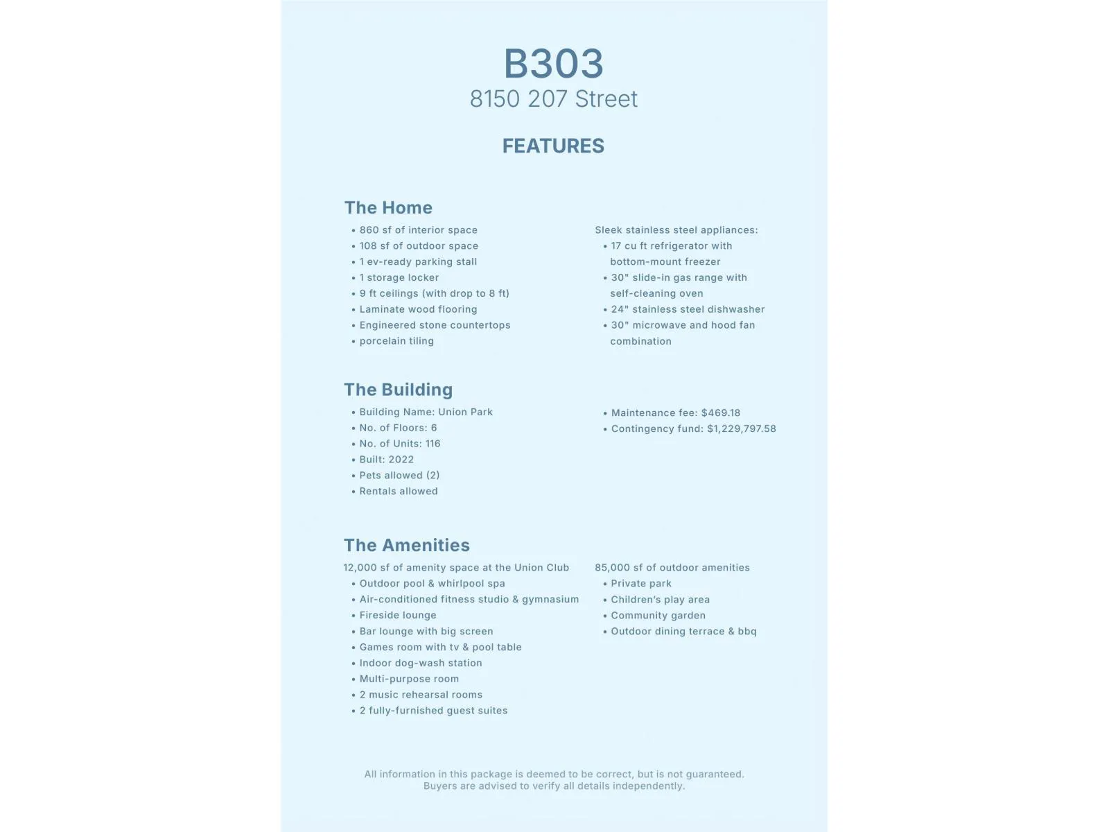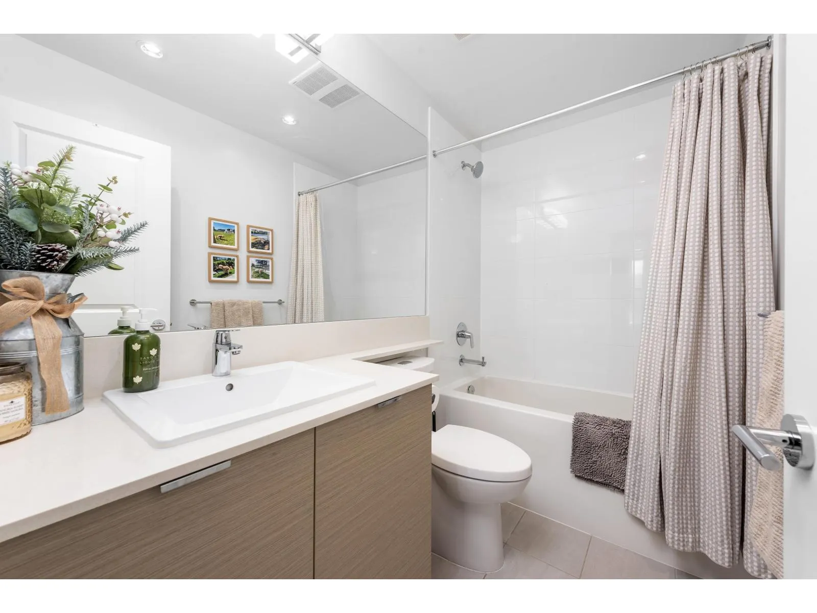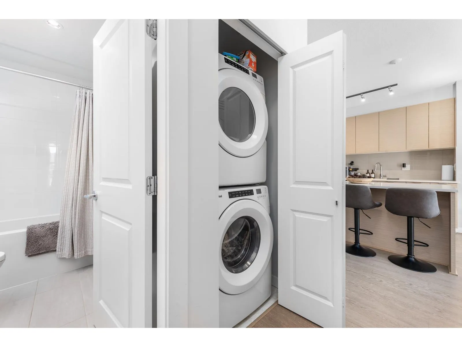 Experience resort-style living at Union Park by Polygon Homes in the heart of Langley. This bright 2 bedroom, 2 bathroom home features overheight 9 ft ceilings, engineered stone countertops, and sleek stainless steel appliances; including a 17 cu ft fridge, gas range, dishwasher, and microwave with hood fan. Enjoy exclusive access to over 12,000 sq ft of amenities at the Union Club with an outdoor pool and whirlpool spa, air-conditioned fitness studio, gymnasium, fireside and bar lounges, games room, dog wash, two guest suites, music rooms, and more. Step outside to 85,000 sq ft of extra outdoor amenity space with a private park, children's play area, community garden, and BBQ terrace. Includes EV-ready parking in front of the elevator and storage. Showings BY APPOINTMENT. (id:27476)