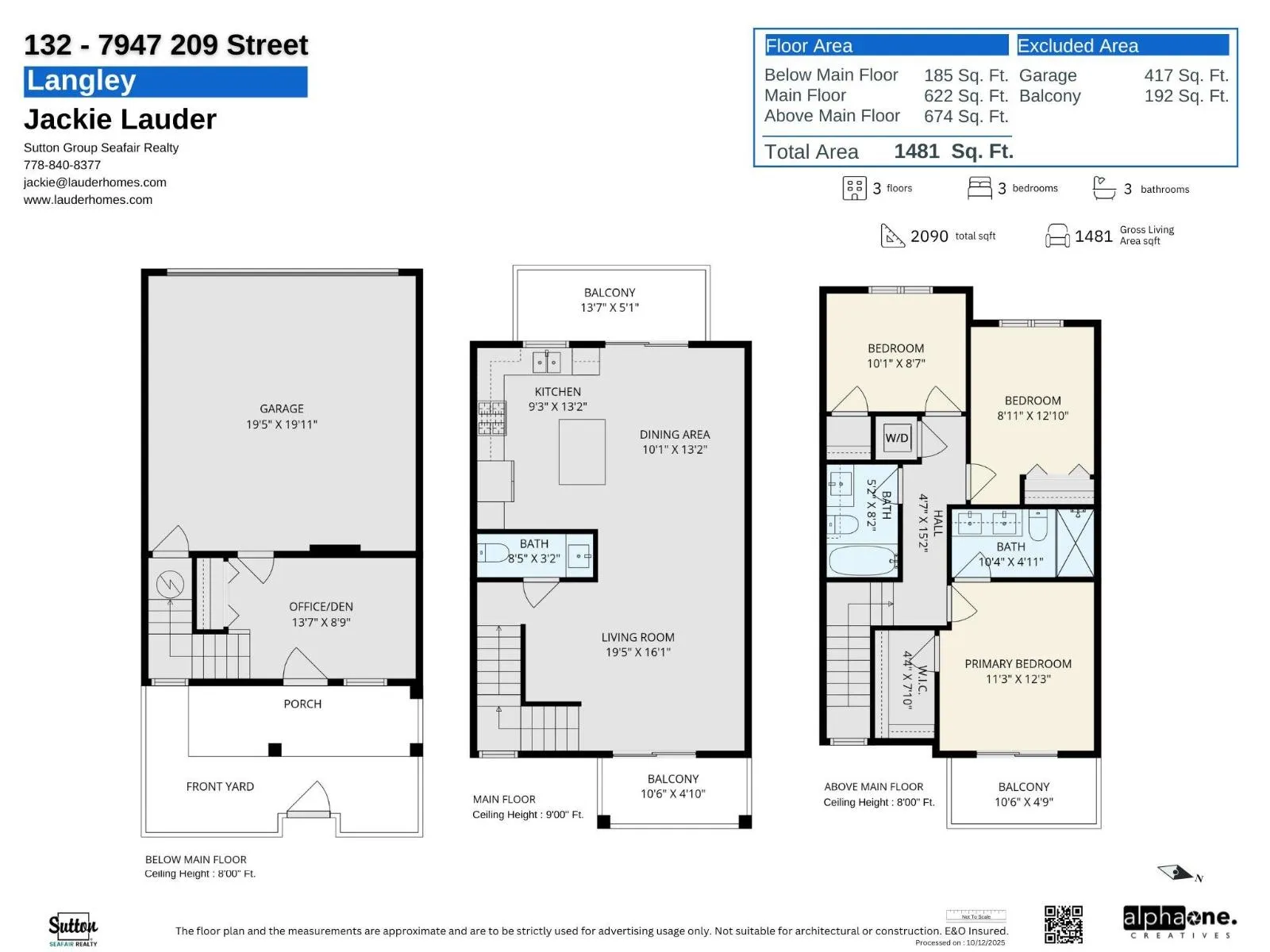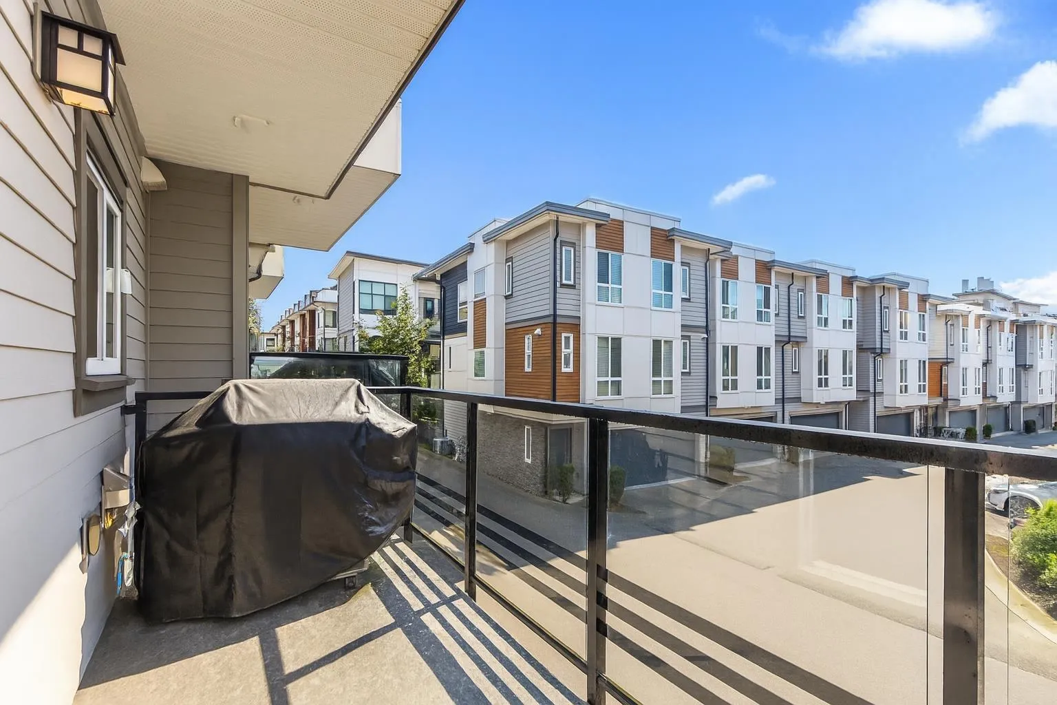 Breathtaking 3-bed + large DEN at 'Luxia at Yorkson' in Willoughby Heights! Private w open air corridors outside windows, & awe inspiring views from 3(!!!) decks both east & west + a fenced area at the front entry & filled w natural light all day! The 1481 sqft of open living boasts a lrg den by the entry, expansive 9 ft. ceilings on the main, a huge living rm, a well appointed kitchen w quartz counters, Grohe faucets, a 5 burner gas stove, st stl appliances, an island & a lrg deck off the spacious dining rm, a powdr rm on the main & up 2 full baths + 3 spacious beds. Windows upgraded w screens, 2 car private garage,& an incredible location within Luxia w gorgeous views & privacy & close hwy access,great schools & shopping!Showing by apptmt Wed 12-1,Thurs 6-8 & Sat 10-2 Must book your time (id:27476)