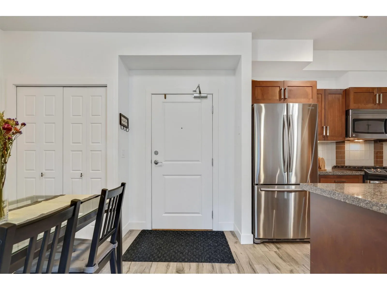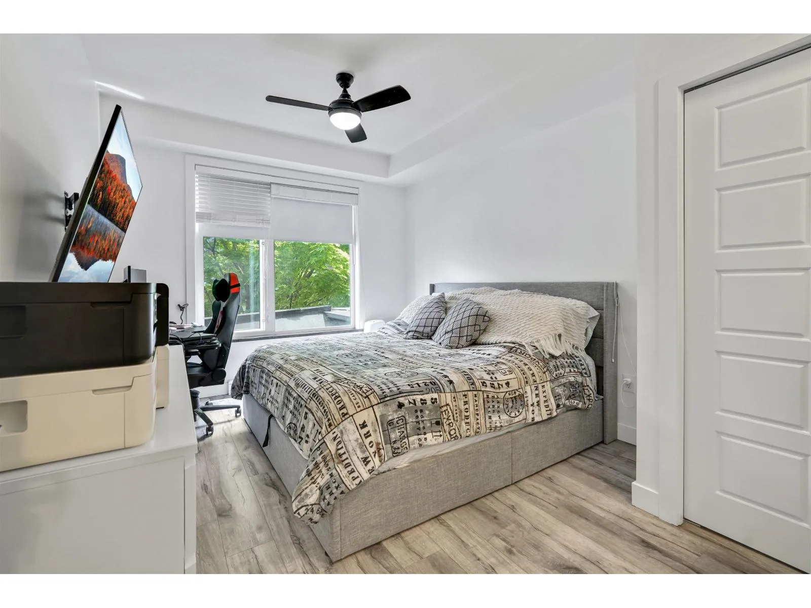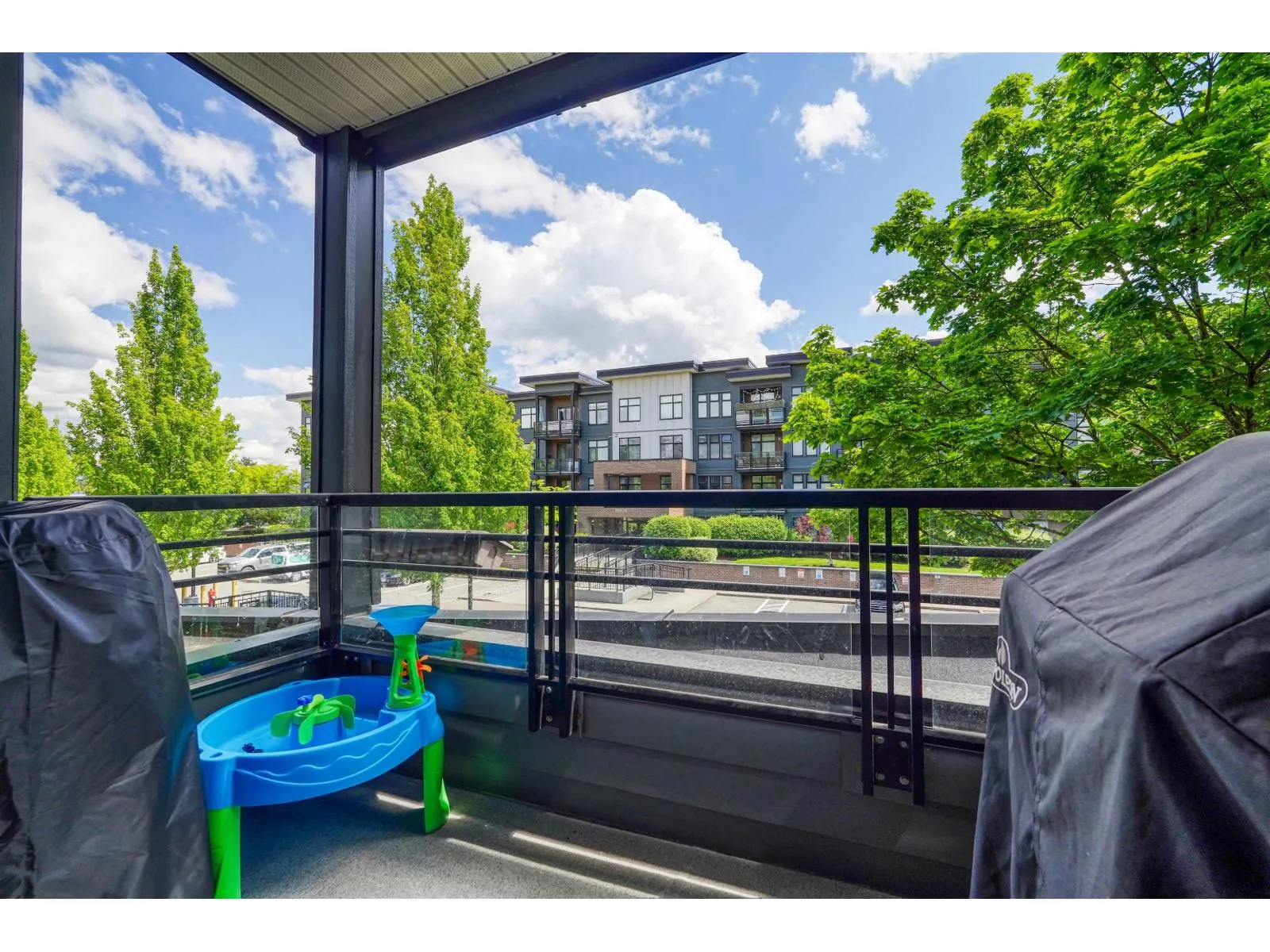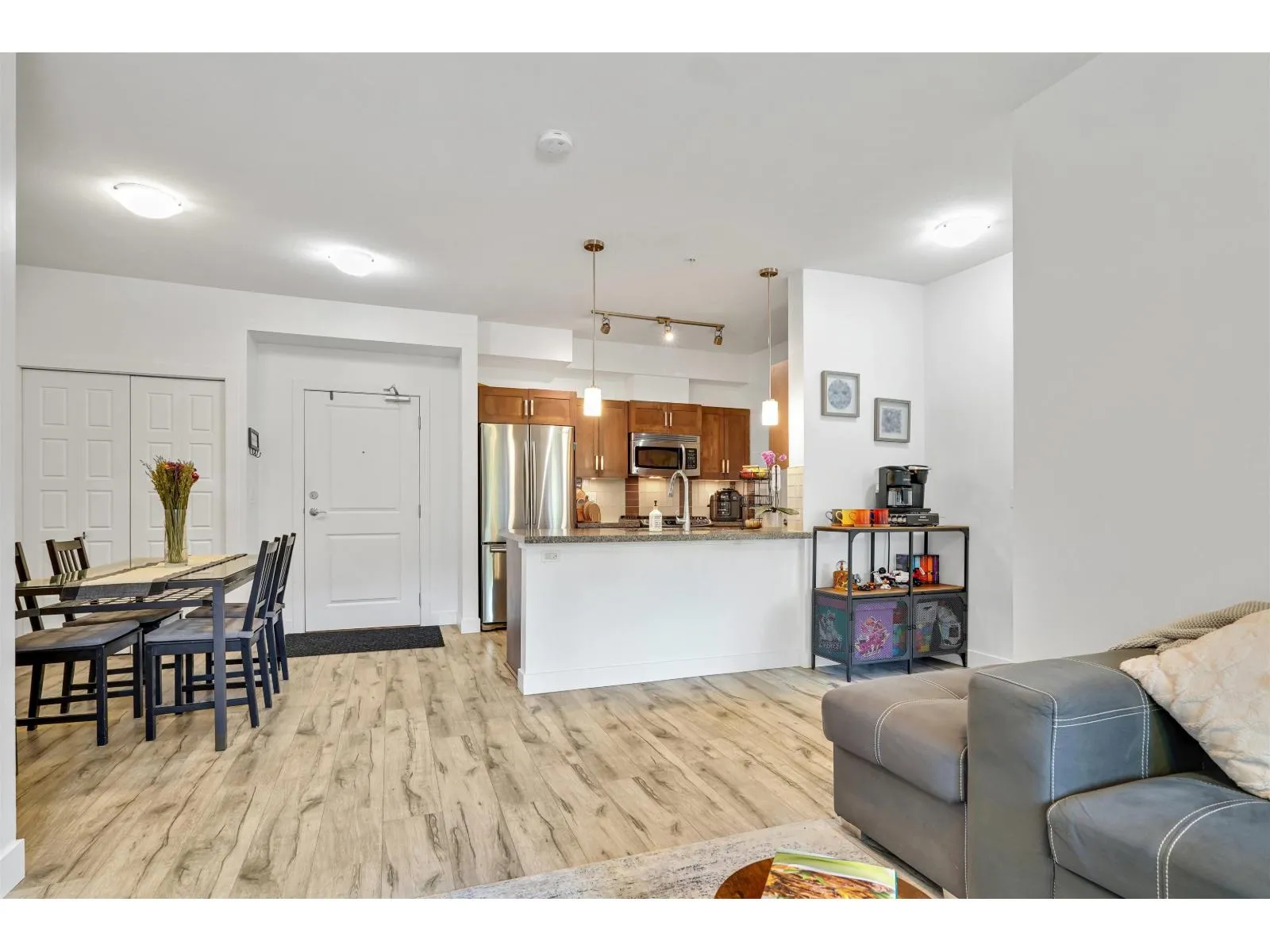 Welcome to VARSITY, the most popular complex in the heart of Langley City! Centrally located and walking distance to shopping, restaurants, schools, transit and amenities, Varsity is just steps away to the upcoming sky train line in Langley. In a gated community and with a safe underground parking, this 2 bed + 2 bath condo features an open layout, new laminate flooring all throughout, stainless steel appliances, granite countertops, ceiling fans, new light fixtures in the kitchen and bathrooms, smart thermostats and smart switches. A private setting plus a great location facing North East makes this property an excellent starter home, upgrade or investment property. This is a corner unit on 2nd floor and no unit underneath. Don't miss this opportunity and book your showing today! (id:27476)