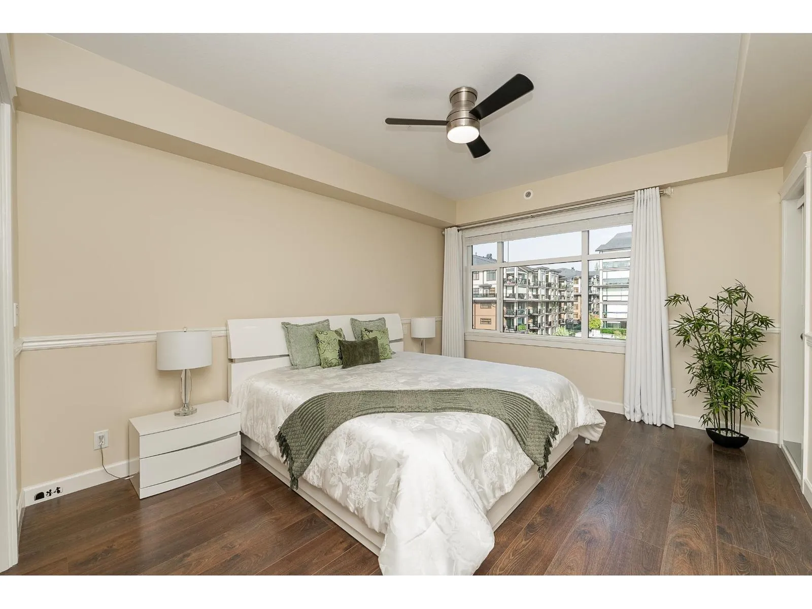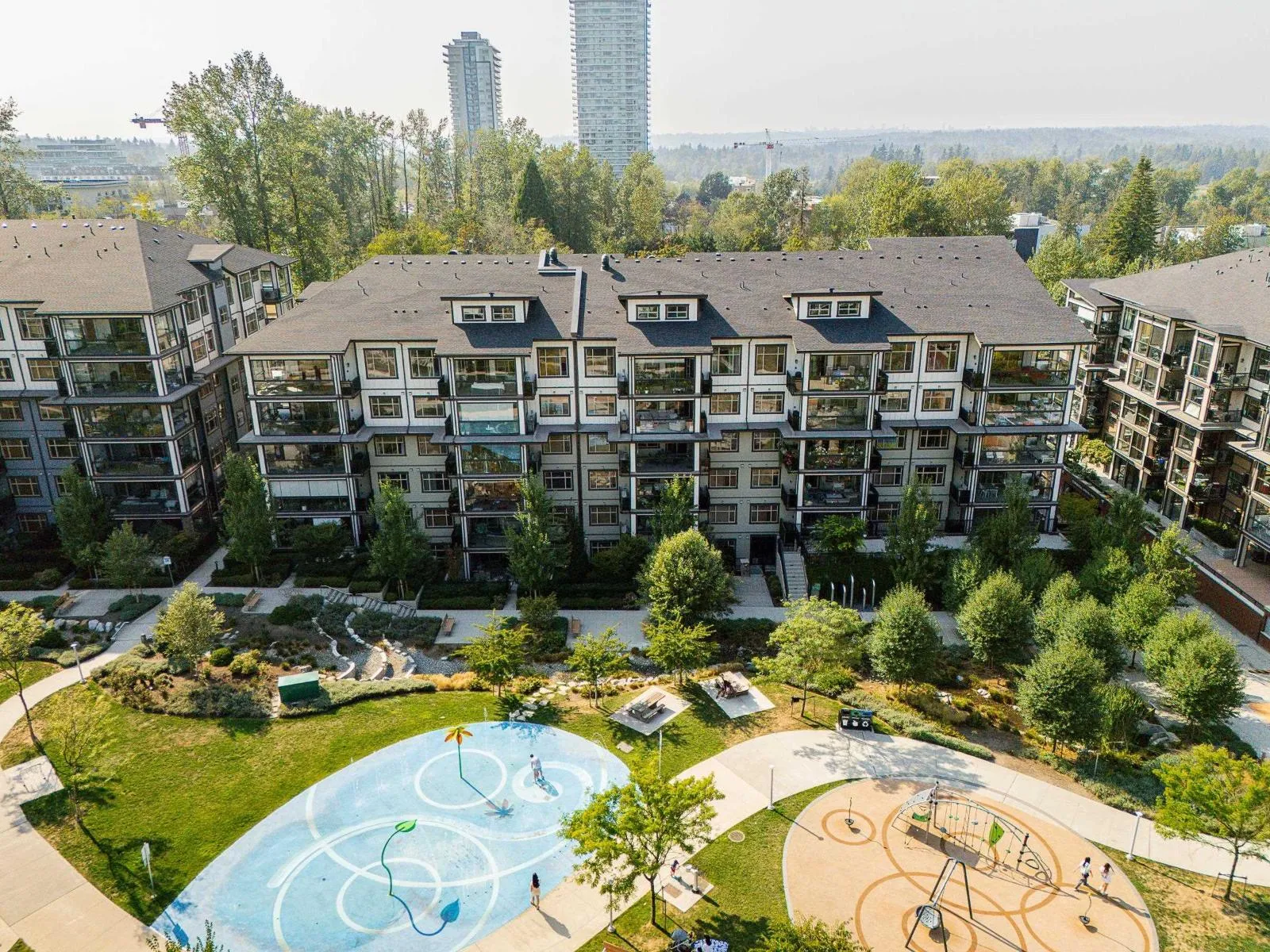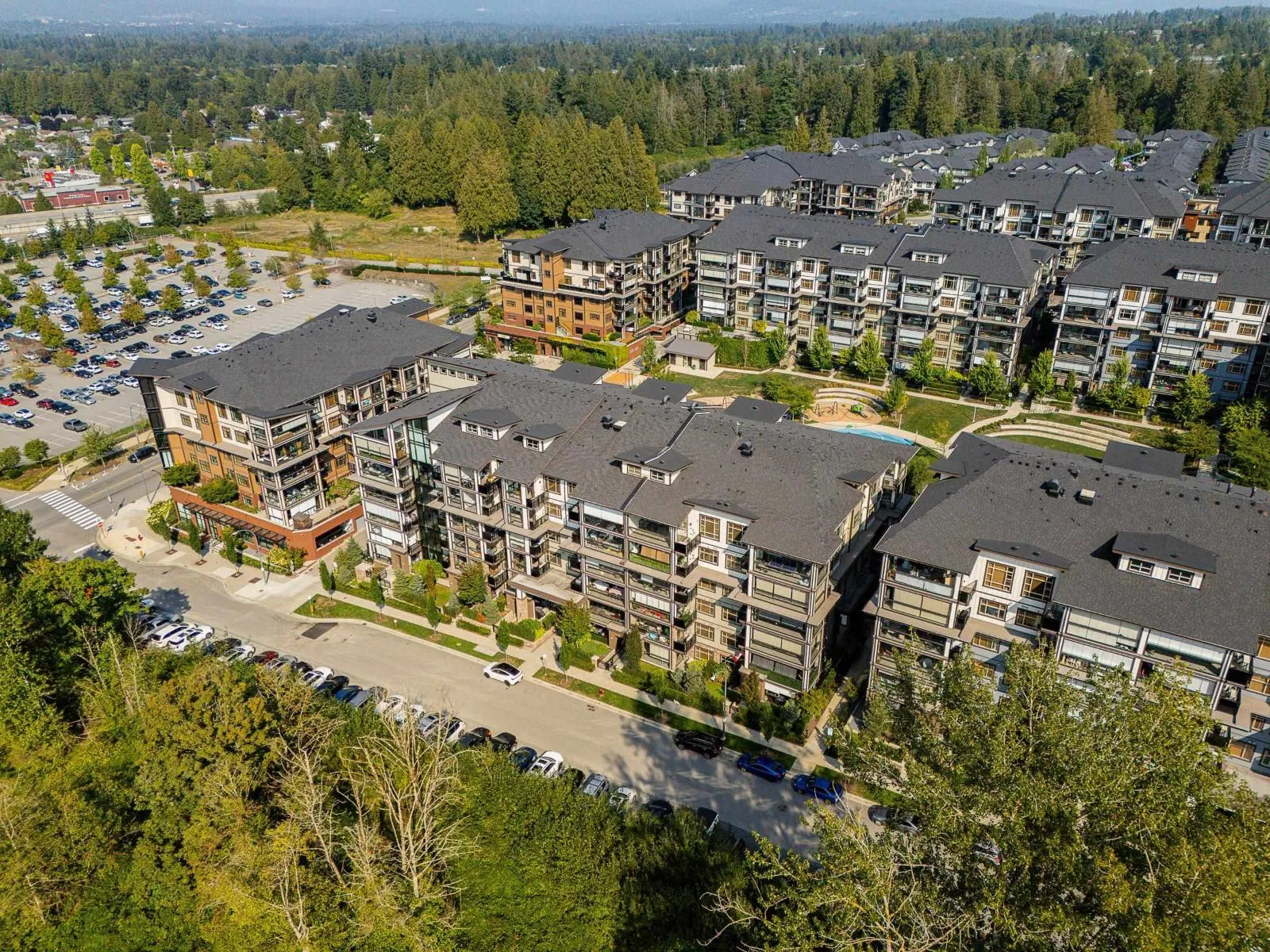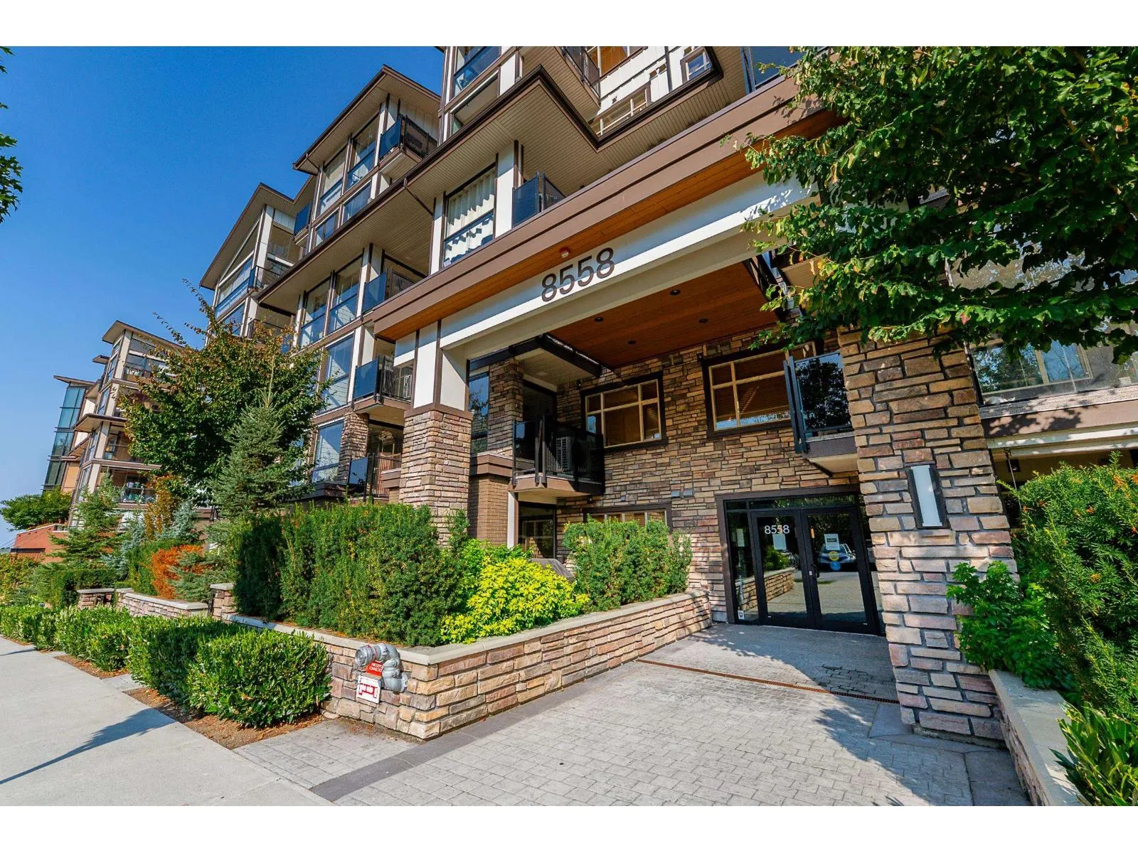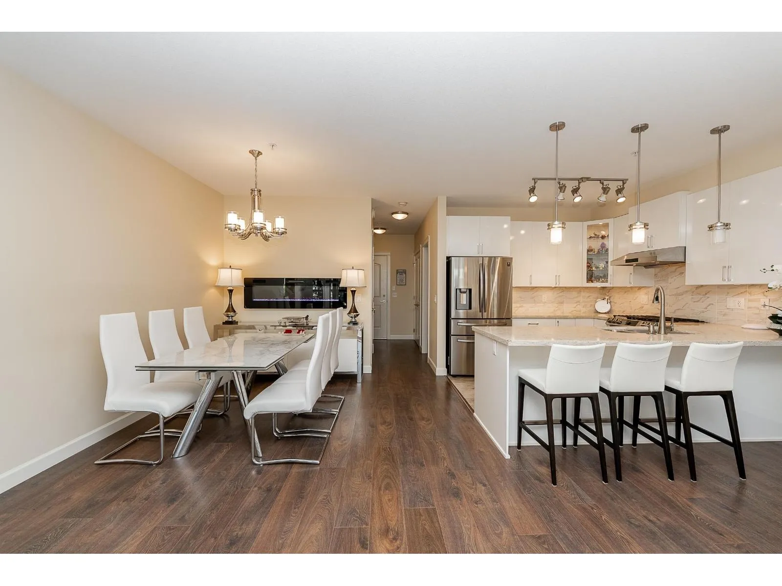 Immaculate and spacious East-facing 3 bedroom + den at sought-after Yorkson Park! Offering 1,583 sq ft of bright and air conditioned living space, plus a 225 sq ft solarium/balcony with retractable glass panels and courtyard views. The gourmet kitchen features a peninsula with seating, gas range and sleek cabinetry, seamlessly connecting to the dining and living area. Designed for year-round enjoyment, the solarium expands your living space. Generous bedrooms include two with luxurious ensuites, double vanities, frameless glass showers, walk-in closets, and access to the solarium. Added features include an energy-efficient heat pump with A/C, gas BBQ hookup, 2 parking stalls, and a storage locker. Conveniently located near Carvolth Exchange, shopping, restaurants, and quick highway access. (id:27476)