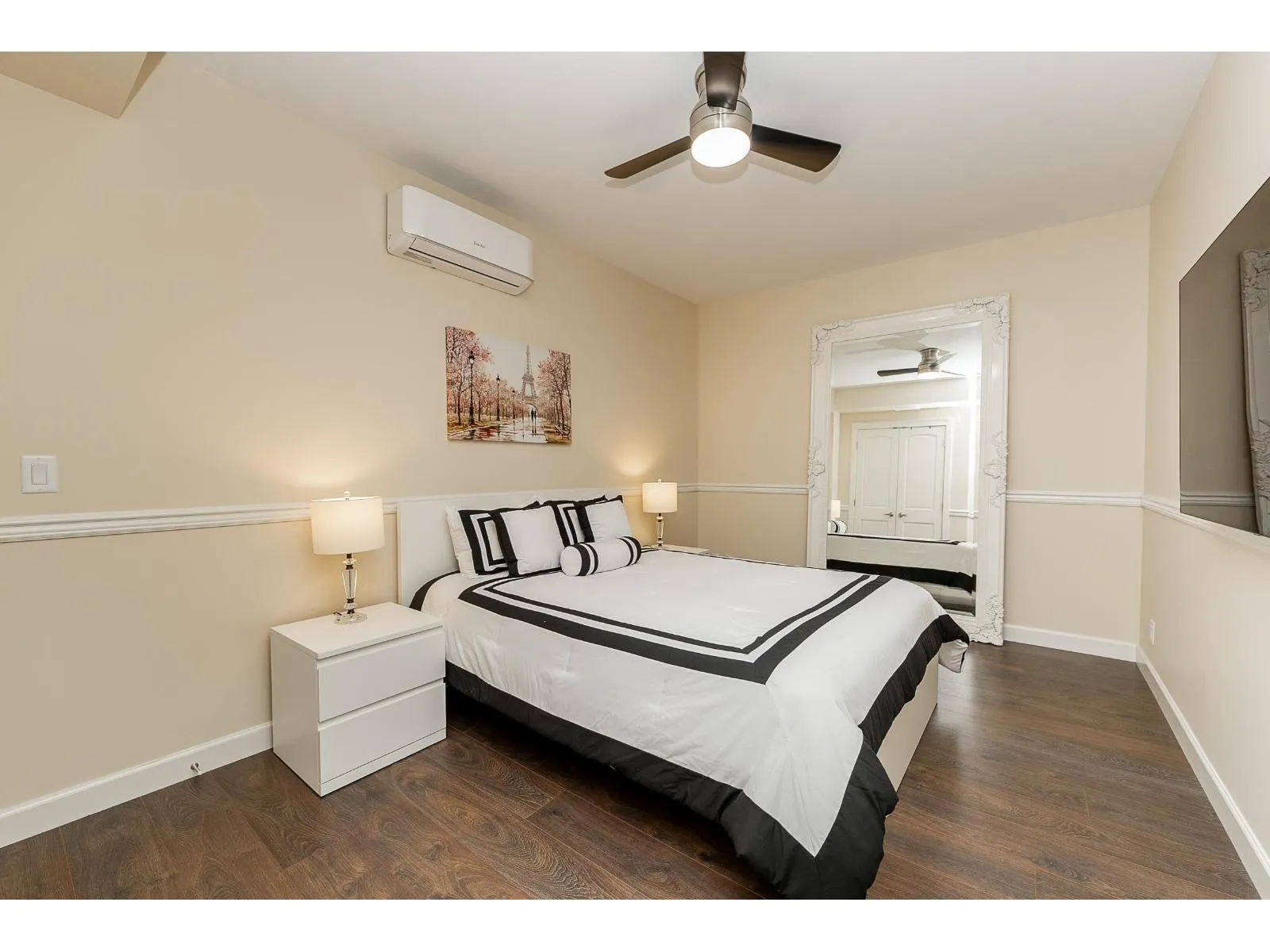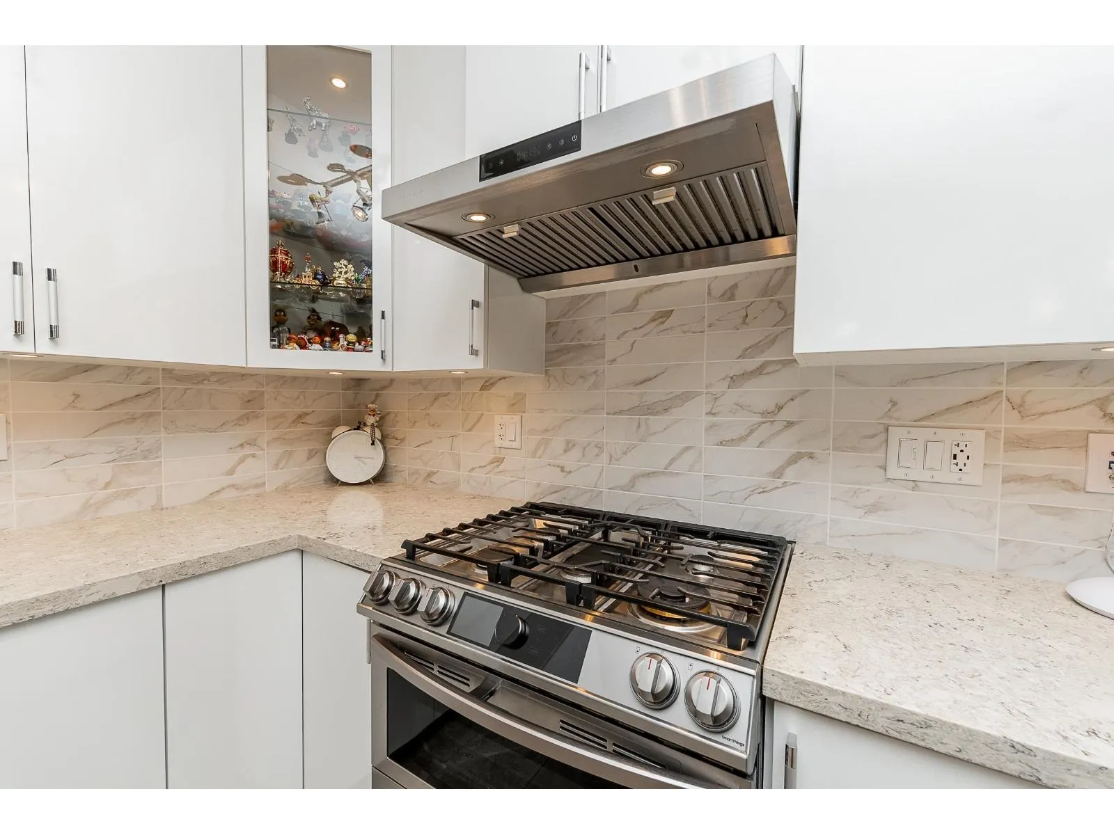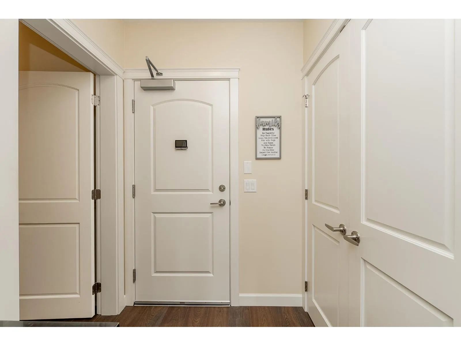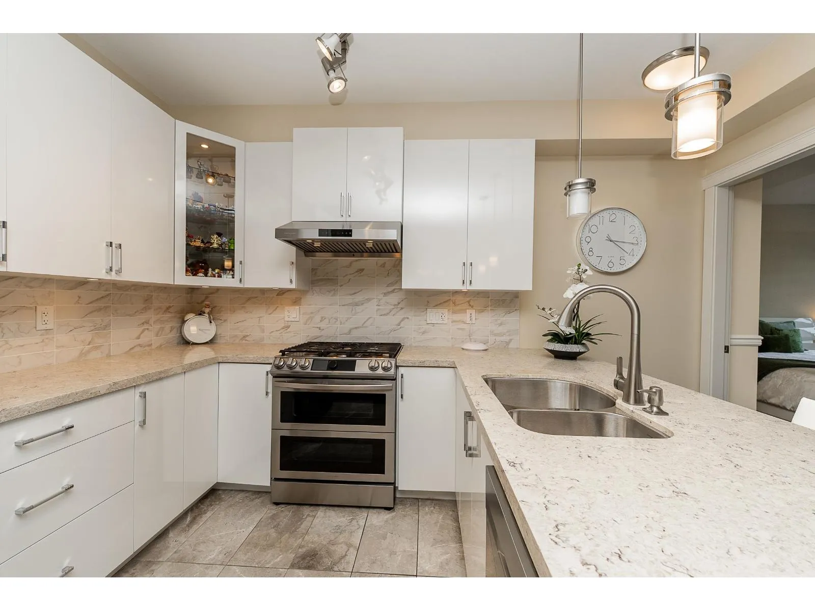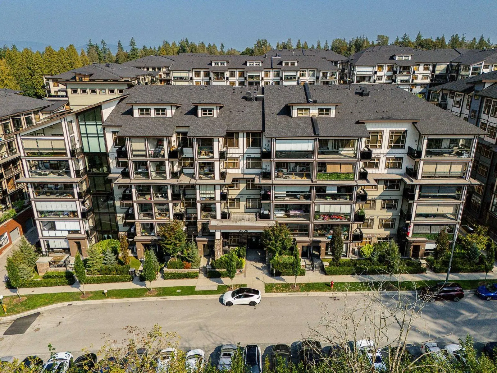 Immaculate and spacious East-facing 3 bedroom + den at sought-after Yorkson Park! Offering 1,583 sq ft of bright and air conditioned living space, plus a 225 sq ft solarium/balcony with retractable glass panels and courtyard views. The gourmet kitchen features a peninsula with seating, gas range and sleek cabinetry, seamlessly connecting to the dining and living area. Designed for year-round enjoyment, the solarium expands your living space. Generous bedrooms include two with luxurious ensuites, double vanities, frameless glass showers, walk-in closets, and access to the solarium. Added features include an energy-efficient heat pump with A/C, gas BBQ hookup, 2 parking stalls, and a storage locker. Conveniently located near Carvolth Exchange, shopping, restaurants, and quick highway access. (id:27476)