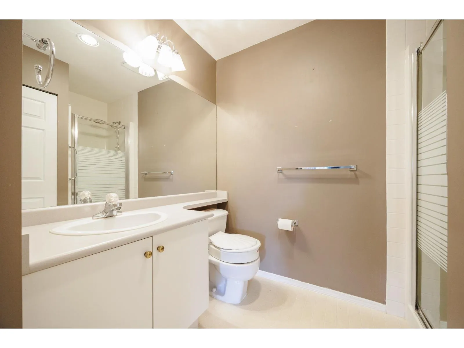 Welcome to Chelsea Green in the heart of Walnut Grove! This bright, top-floor, corner unit is designed for vibrant 55+ living. With over 1,200 sqft of thoughtfully designed space, enjoy 2 spacious bedrooms and 2 full baths with added A/C for your ultimate comfort. The immense primary includes a heated-floor ensuite and patio access. Relax by the cozy gas fireplace or unwind on your private patio with serene mountain views. The kitchen features a pantry and an open bay window to the living room-great for entertaining. Strata includes A/C, on-demand hot water, and gas heat. Enjoy a warm, welcoming community with RV & visitor parking and resort-style amenities like aqua-fit, woodworking, and games nights. Steps to shops, parks & transit - Home is where your Storey begins! (id:27476)