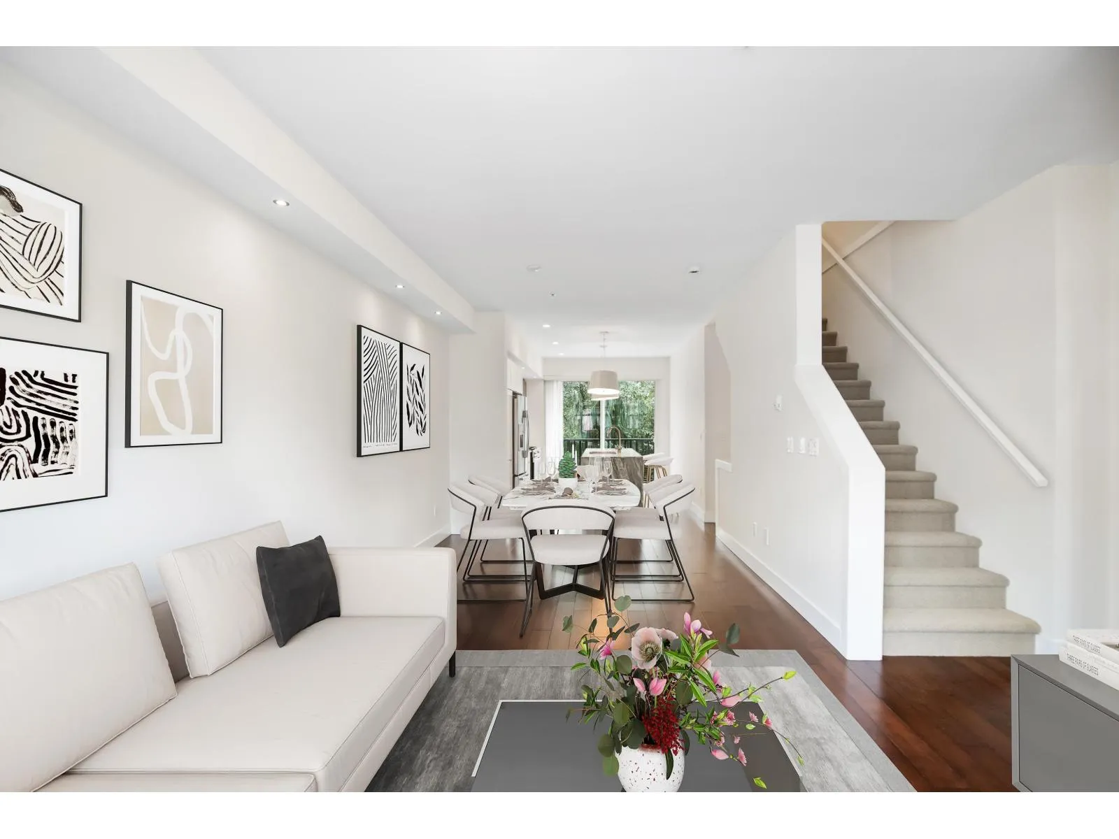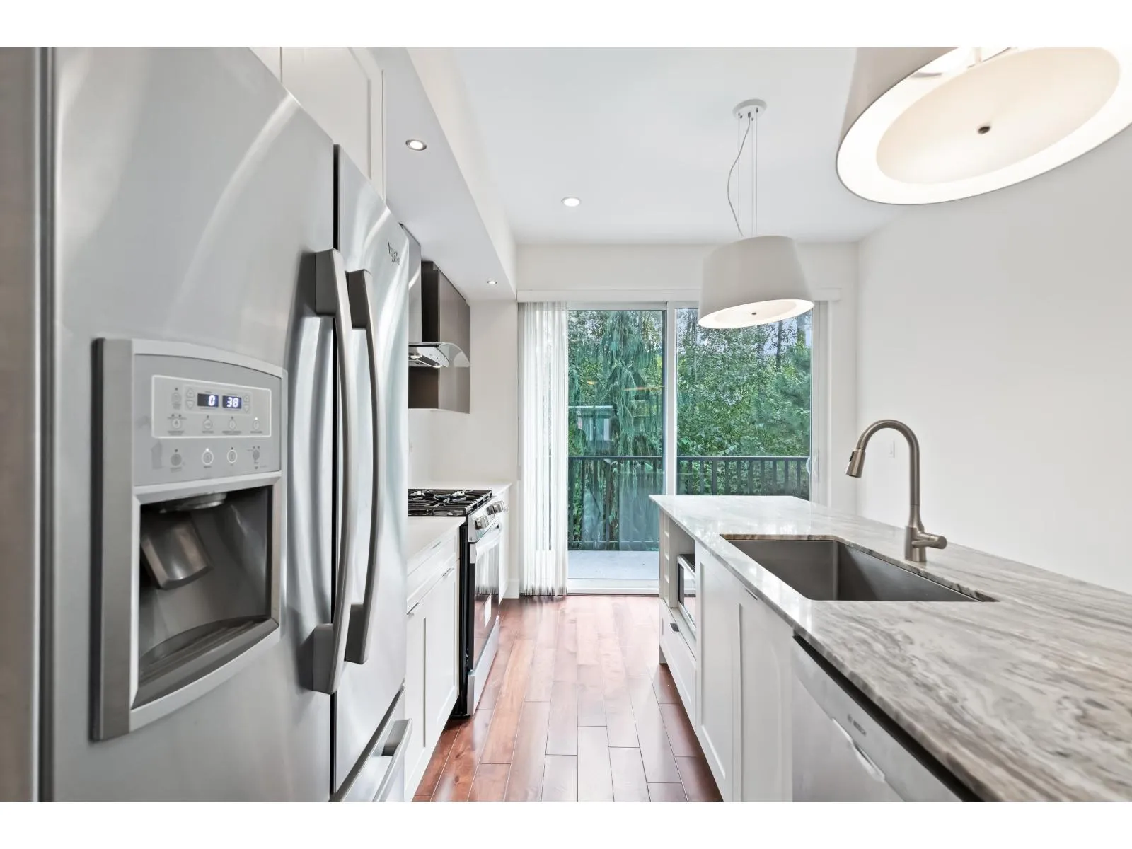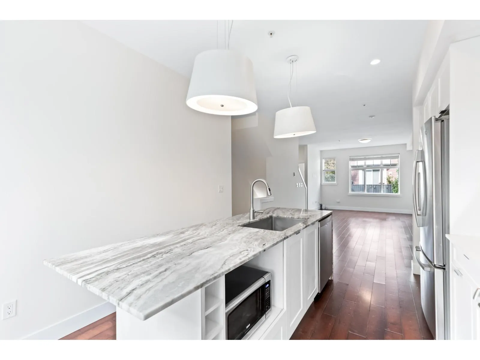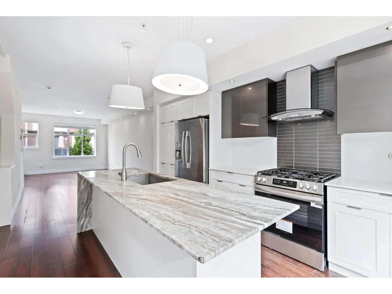 WELCOME TO ARCADIA! 3 bed + 2.5 Bath townhome in the heart of Willoughby. Radiant in floor heating throughout! Backs onto beautiful and private green belt! Kitchen features stainless steel appliances, NEW gas range, quartz countertops, and a spacious island perfect for entertaining! Offers modern living with a bright, open-concept design. The adjoining dining and living areas boast large windows, creating a warm and inviting atmosphere. Upstairs you'll find three generous bedrooms, including a primary suite with a walk-through closet and private ensuite. Situated in a family-friendly neighbourhood, a stones throw to Richard Bulpitt Elem, shopping, and Willoughby Town Centre, with easy access to Highway 1 and transit. A perfect blend of comfort, style, and location! OPEN HOUSE SAT 1PM-3PM (id:27476)