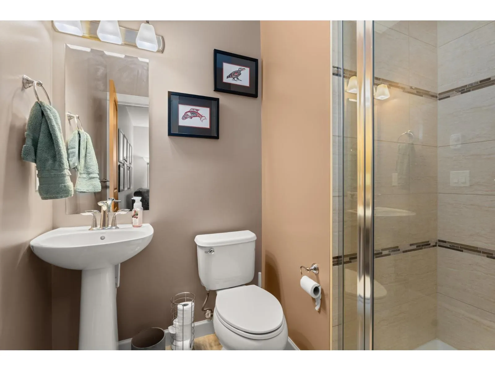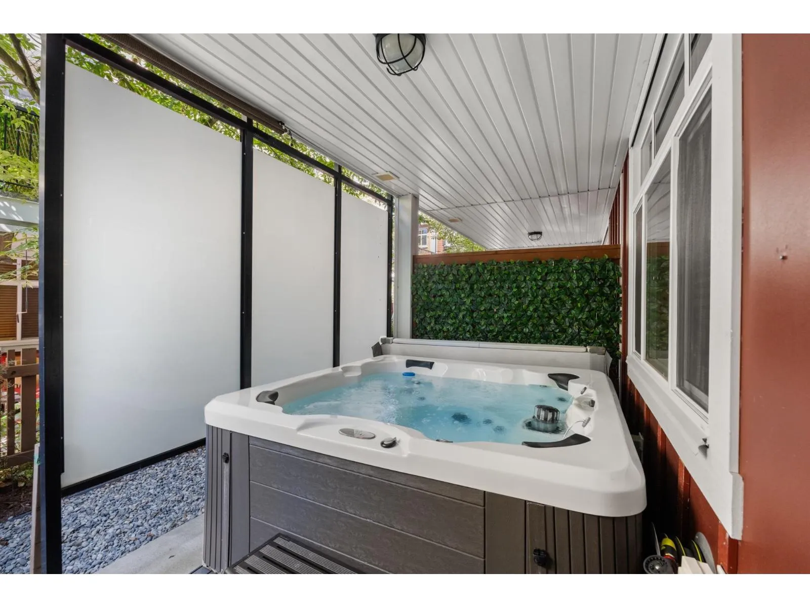 3 Car Parking! Welcome to the highly sought-after Yorkson Creek South complex in the heart of Willoughby! This home features luxury high-end finishings including granite counters in bathrooms & kitchen, organizers in all the closets, solid wood soft-close cabinets, gas stove, high-end hardwood flooring, Pantry + powder on the main level. Upstairs primary has vaulted ceilings, A/C unit, walk-in closet, ensuite with heated floors, fog-free mirror, and a rain shower, two additional generous-sized bedrooms + full bath & your own laundry room. Downstairs bedroom has its own separate entrance + full ensuite with shower! Epoxy garage and HOT TUB out back!! Walk to Schools, Shopping, close to Hwy 1 and Carvolth Park & Ride. Perfect for the family! (id:27476)