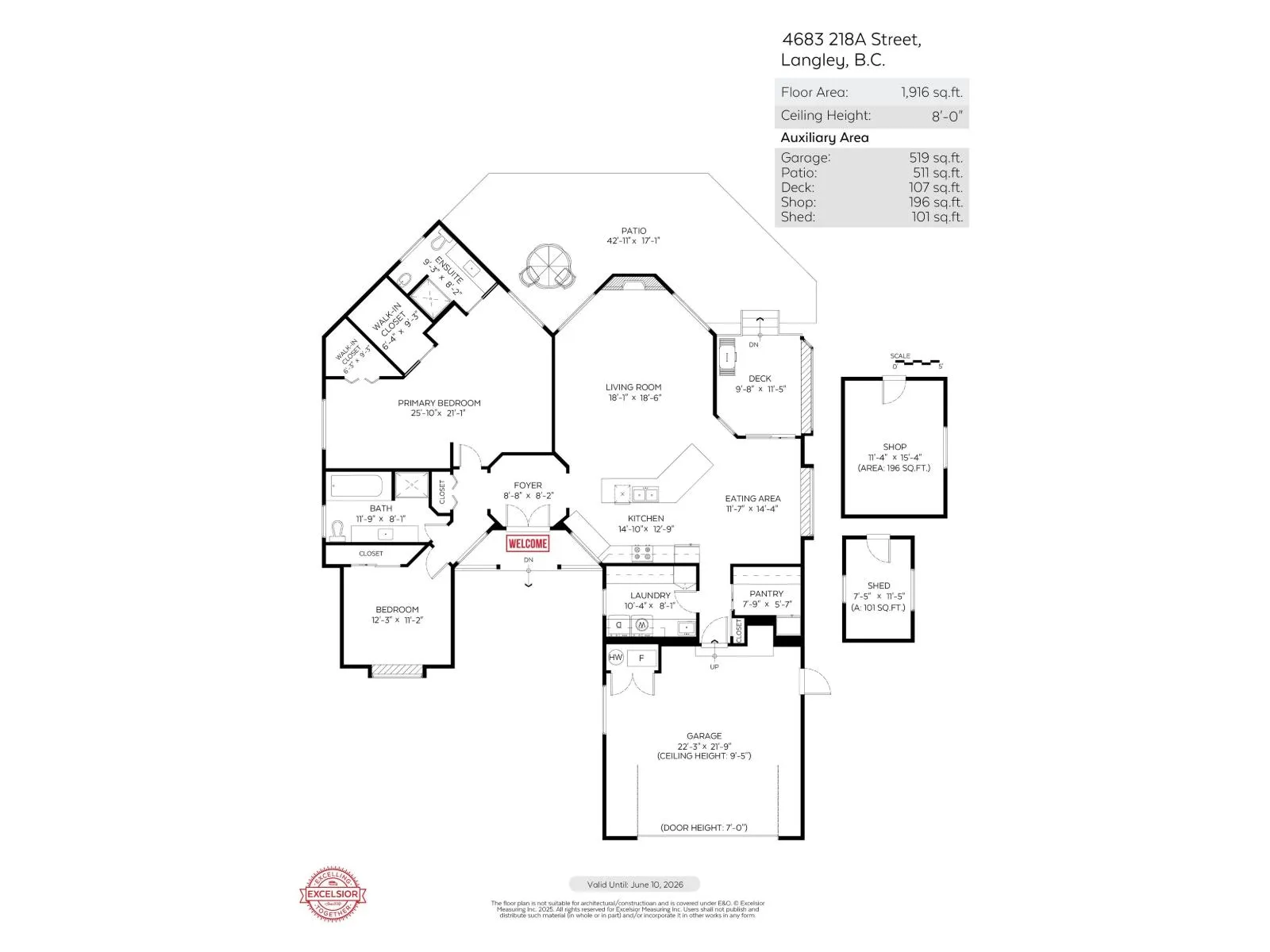 Gorgeous custom rancher on a 1/4 acre cul-de-sac lot in upper Murrayville. This spacious home boasts an open floor plan w/ inviting foyer leading to a bright living area w/ gas fireplace, large windows, adjacent kitchen w/ huge island, ample counter space, oak cabinetry, & walk-in pantry. Large eating area w/ sliding door access to covered porch, rear patio, & beautifully landscaped & private yard; ideal for entertaining and family gatherings. Huge primary bedroom with double walk-in closets, 4 pc ensuite, & sitting/study area w/ window (easy conversion to an additional bedroom). Second bedroom, 4 pc bath, & laundry room. Double garage, & two detached sheds/shops; 16'x12' & 8'x12'. Quiet location & short walk to parks, golf, cafés, & shopping, & close to hospital & WC Blair Rec Centre. (id:27476)