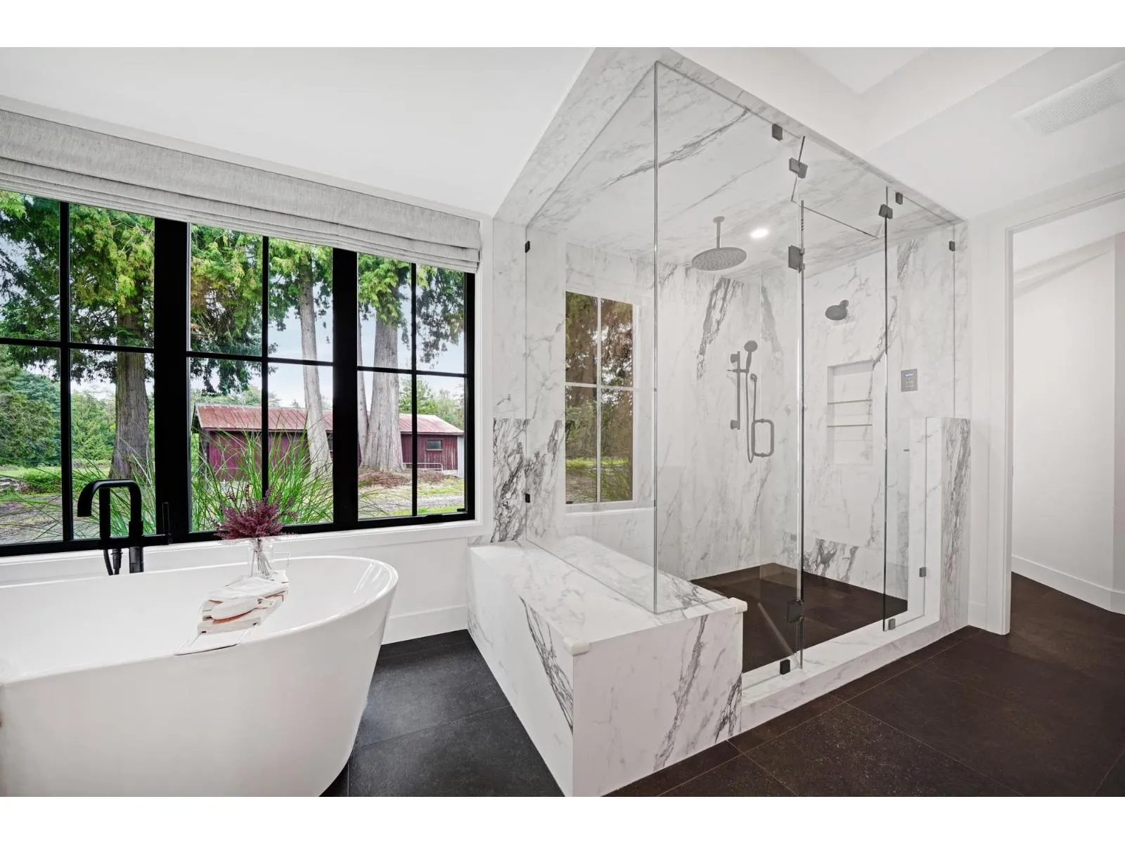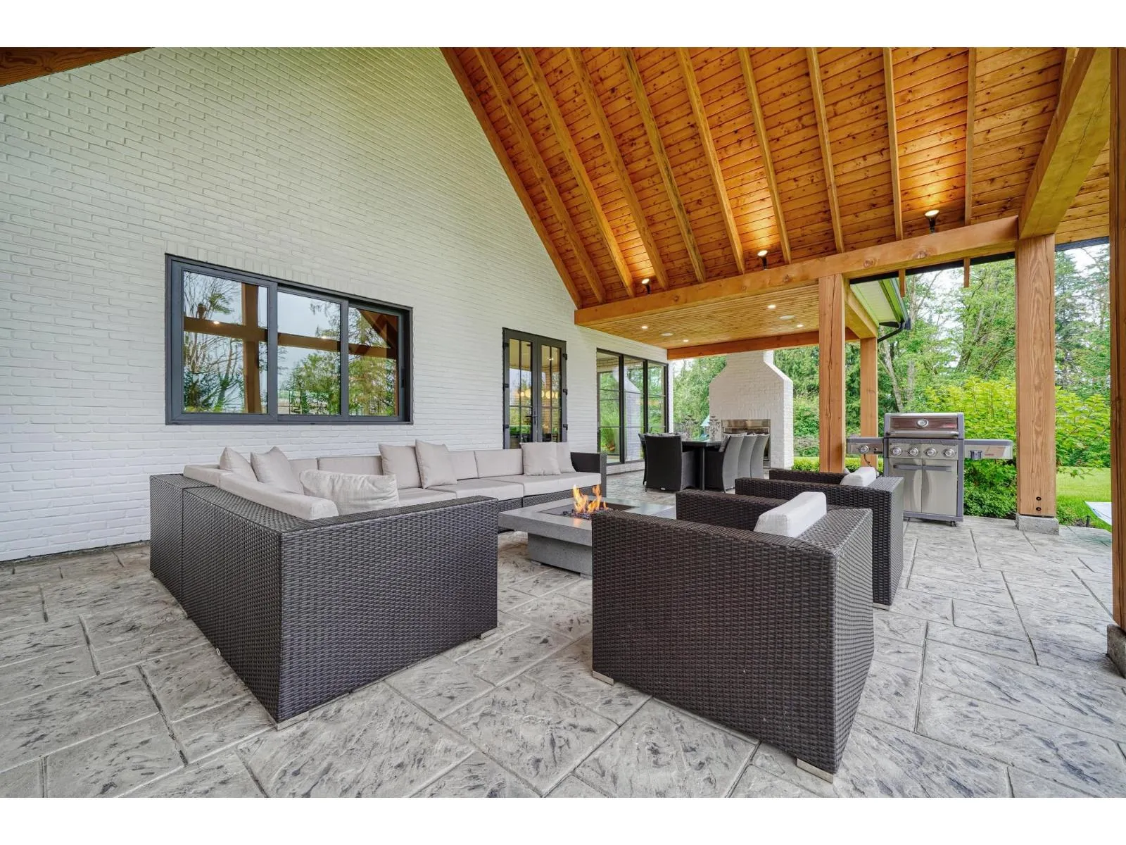Welcome to this gated, custom-built luxury estate in Langley, masterfully designed by Su Casa Designs with interiors by PlaidFox. Privately set back on a long driveway, this home is the perfect blend of elegance, function, and privacy. The gourmet kitchen has vaulted ceilings, a butler's pantry, double dishwashers and fridges, and a wine cooler-ideal for entertaining. Two Primary Bedrooms on the main - features a spa-style ensuite with steam shower, soaker tub, and walk-in closet. Outdoors, relax by the gas or wood fire pit, or explore the lush garden, playground, and fully fenced treed backyard. For multi-generational living, a beautifully appointed suite offers privacy and independence. Two barns, two fenced pastures, and a detached shop complete this rare offering. (id:27476)