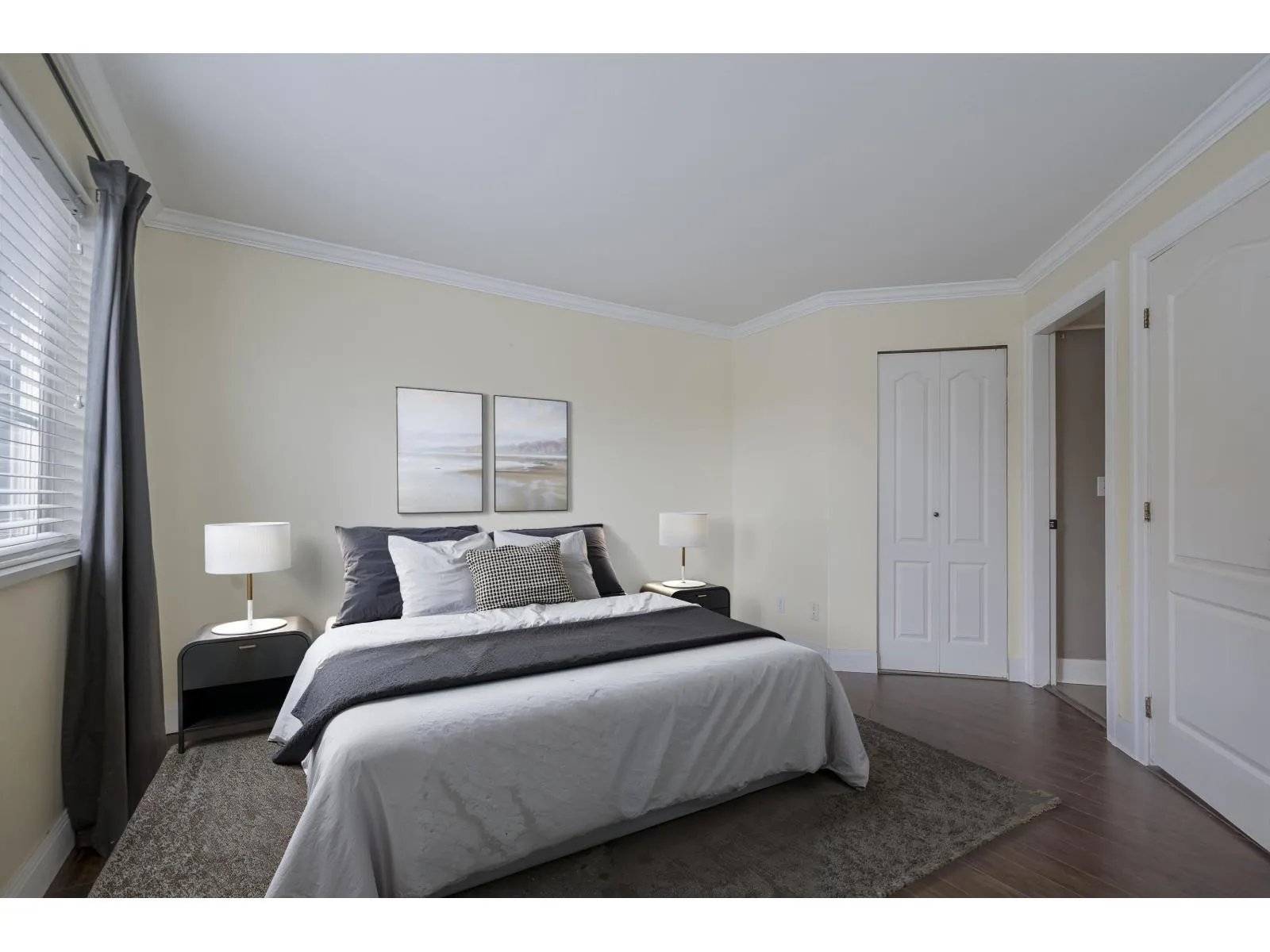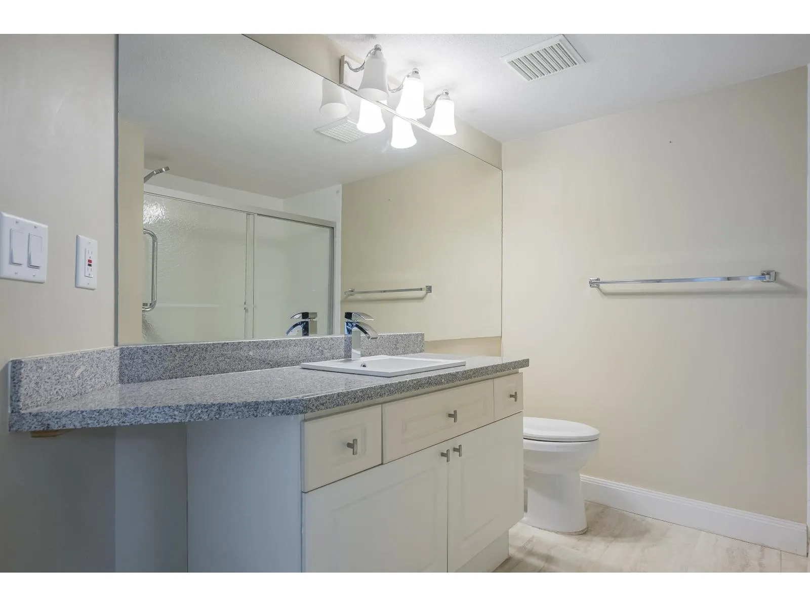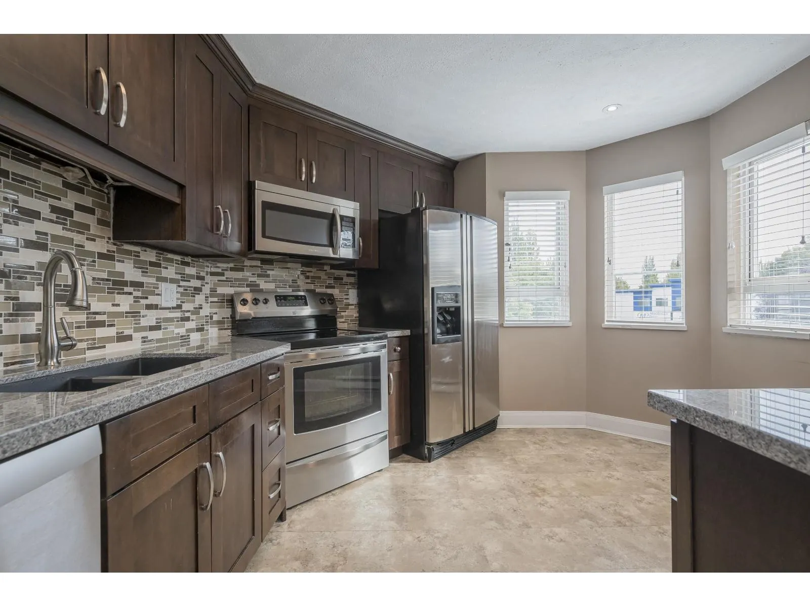 College Court! A great pet friendly complex, presents this 1005 sq ft END UNIT with 2 large bedrooms on opposite ends for privacy. Primary has 4 pc updated ensuite and the 2nd bedroom has a cheater ensuite as well! Newer kitchen with granite & S/S appliances ~ bright, spacious, with southern exposure providing tons of light. This unit comes with 2 secure underground parking spots and there is a bike storage area. In suite laundry, lots of storage & hot water is included in strata fee. Great rental for investors with Kwantlen Polytechnic steps away and near the upcoming new skytrain. Walk to shopping, transit & all amenities. (id:27476)
