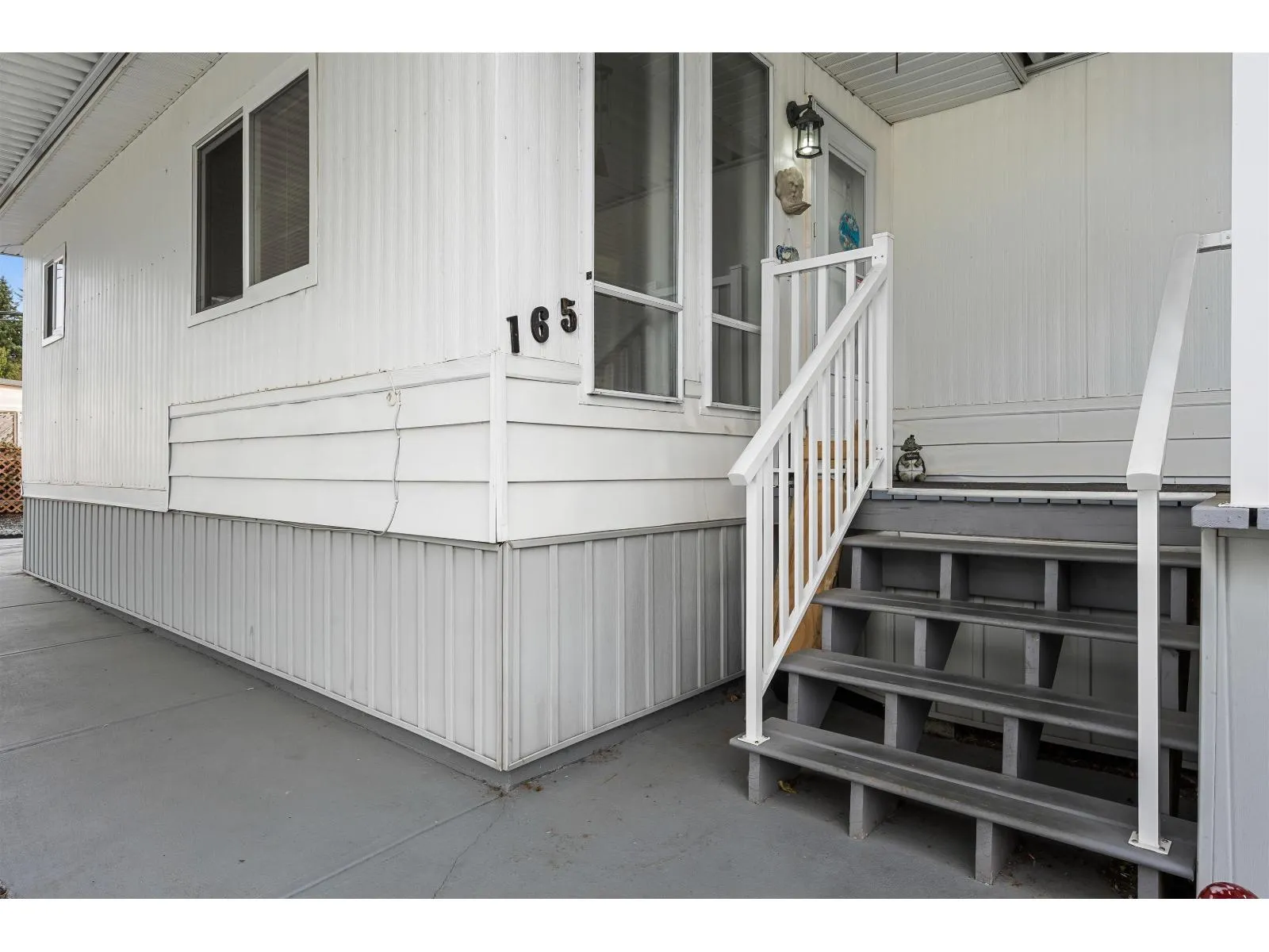 Nestled in the tranquil 55+ community of Pioneer Park in Aldergrove, #165 offers a peaceful retreat close to shopping and amenities, with serene farm surroundings near the US border. This move-in ready home, lovingly maintained by the same owner for 20 years, features 2 bedrooms, 2 bathrooms, and modern updates. Enjoy an open-concept living area with a gas fireplace and abundant natural light from south-facing windows. The updated kitchen boasts stainless steel appliances, while a heat pump ensures year-round comfort. Outdoor living is enhanced by a fully covered oversized deck, a large car park & a detached storage shed. With co-op land ownership, a $510 monthly maintenance fee, and no size restrictions for two pets, this community welcomes you & your furry friends. Book your appt today! (id:27476)