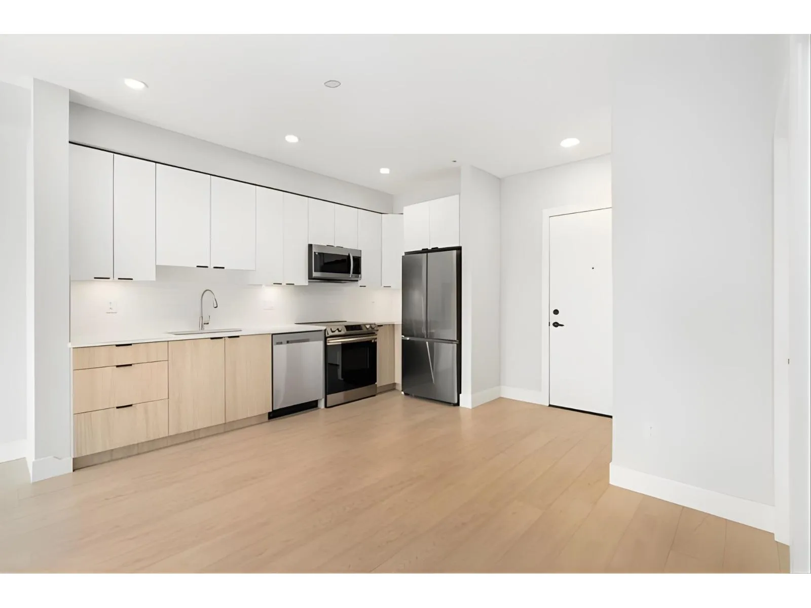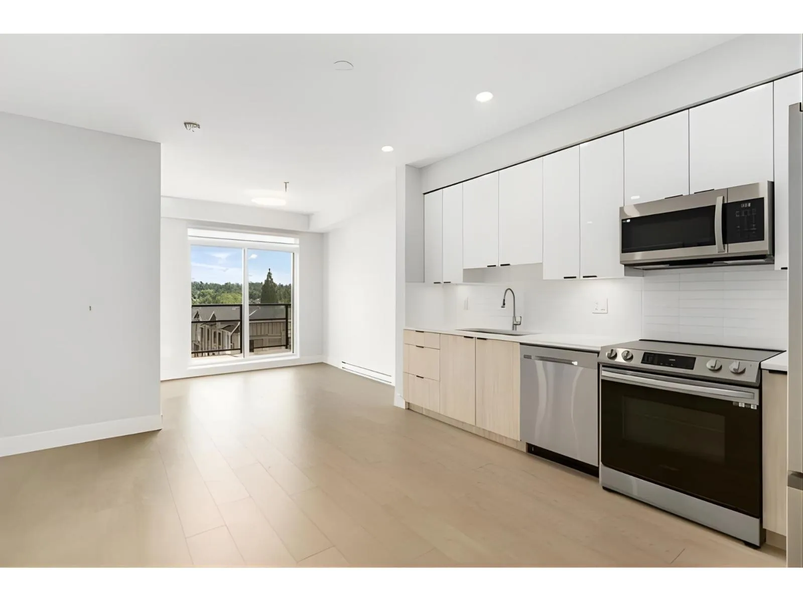 Welcome to this centrally located residence, just moments away from the future Skytrain in Langley City! This impeccably maintained top-floor condo is brand new, featuring 2 spacious bedrooms, along with 2 full bathrooms. The well-designed layout includes one ensuite, with 20 Foot high ceilings and another bathroom. The home offers stainless steel appliances, quartz countertops, laminate flooring, and convenient in-suite laundry. Enjoy western exposure from your generously sized private outdoor space. Elevated above neighboring homes, this home includes 1 parking stall, along with plenty of visitor parking and ample street parking. Ideal for down-sizers or young families! (id:27476)