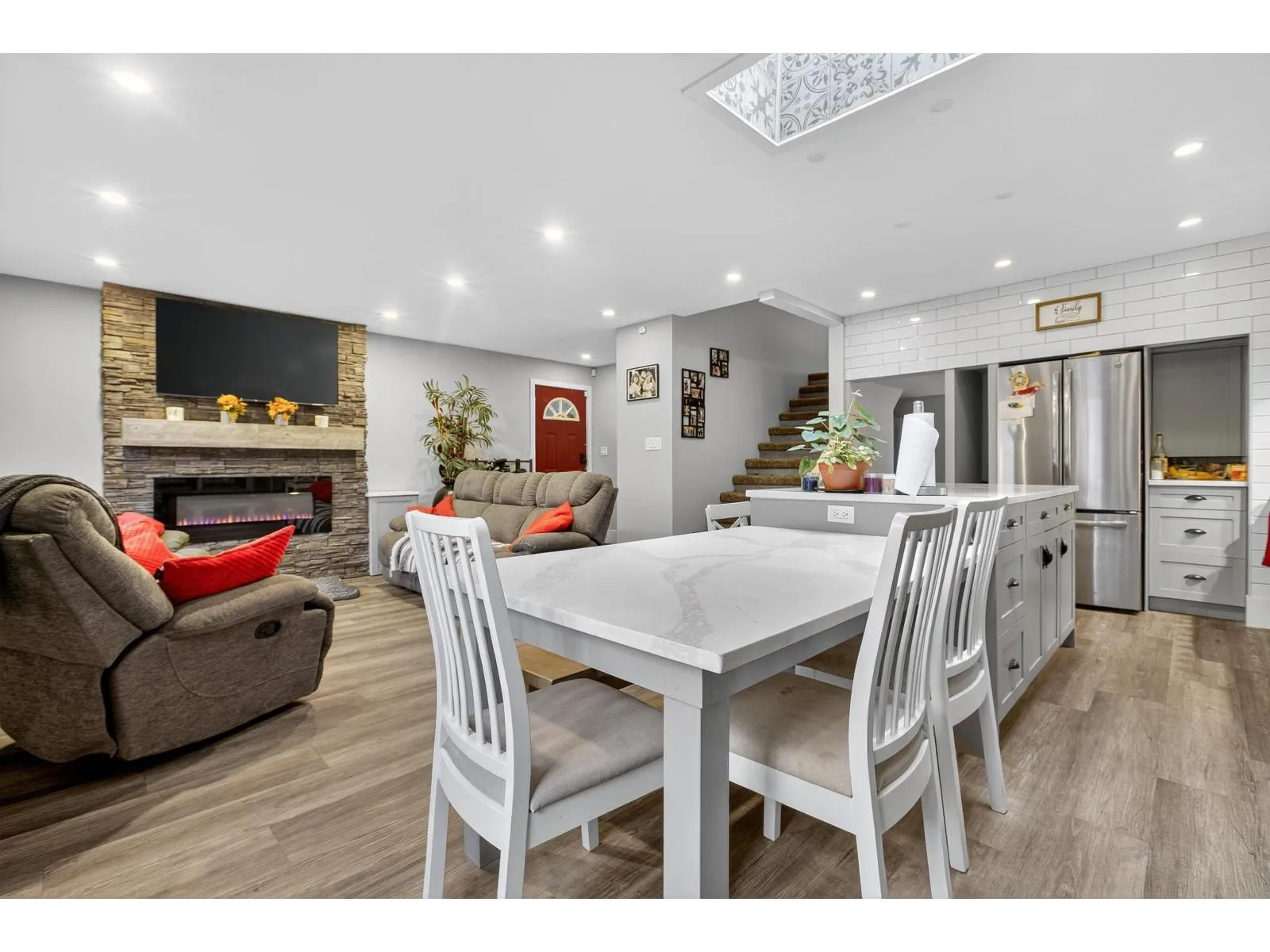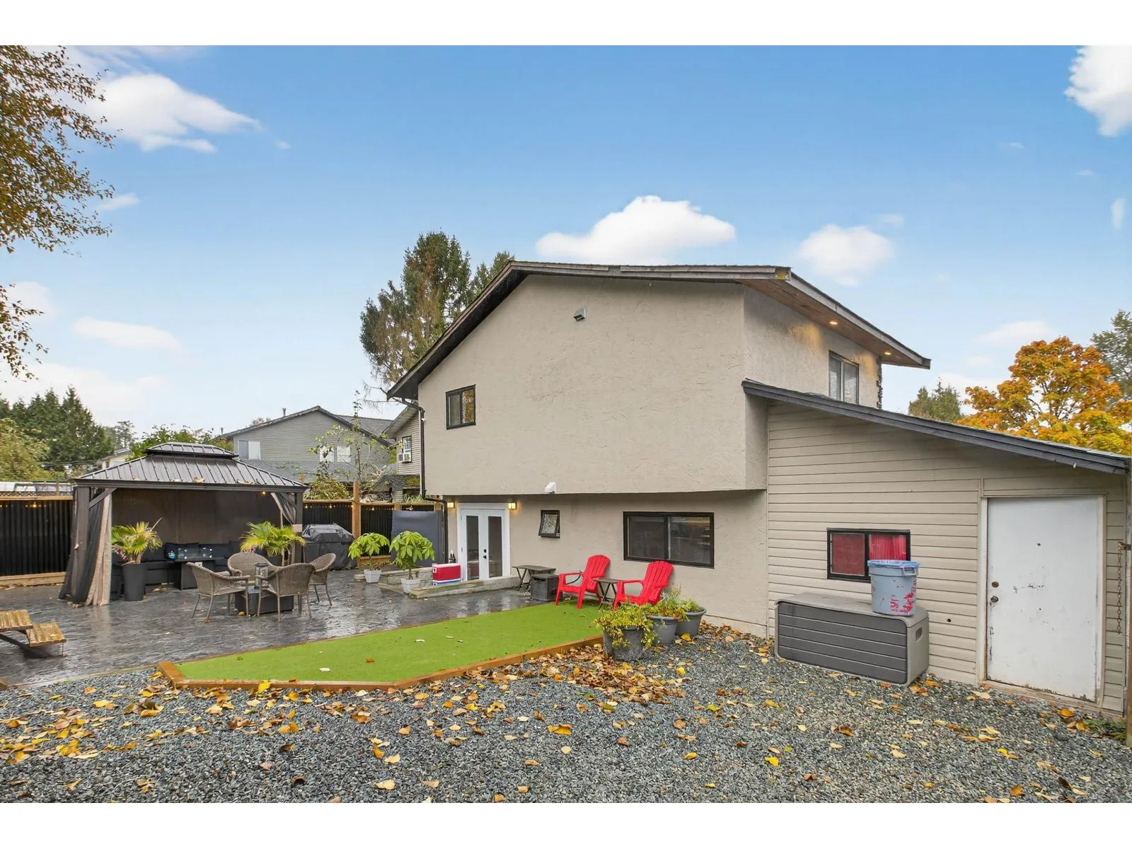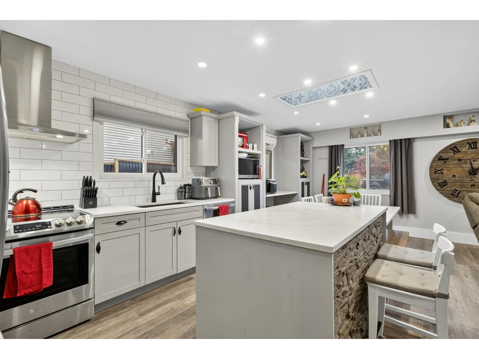 Nice split level home in Aldergrove Parkside neighbourhood, 4 beds, 1.5 baths with plenty of updating! Enjoy entertaining on the main level with updated kitchen including skylight, quartz countertops and quality backsplash, centre island with attached eating area, coffee bar, new cabinets, newer appliances, cast double sink, updated lighting, air con, and electric fireplace with cultured stone feature wall. Upstairs offers 3 bedrooms and has a beautifully remodelled bath with rain shower, free standing tub, marble counters and quality tile work. The lower level has a good sized family room and French doors leading out to the fully fenced, professionally landscaped backyard plus 4th bedroom. Above ground outdoor pool. Aprox 14 x 24 Large Workshop. Newer windows and roof, lots of parking. (id:27476)