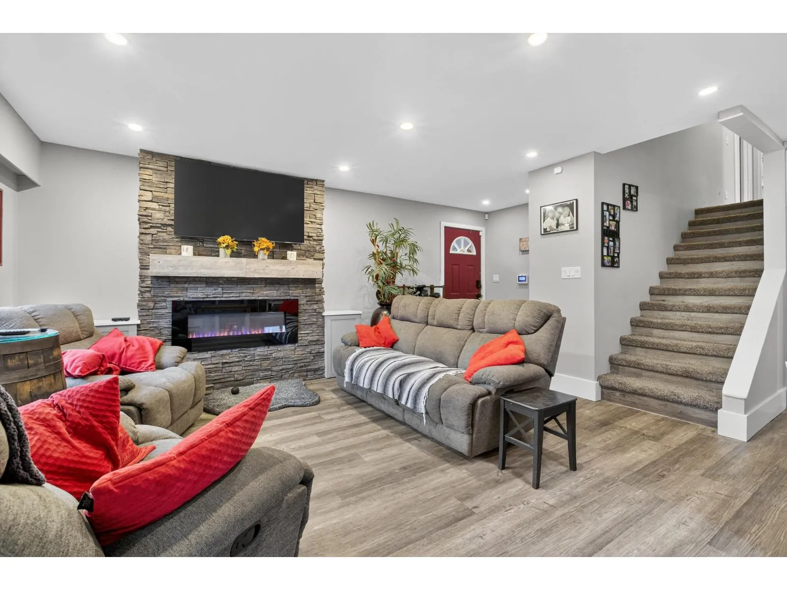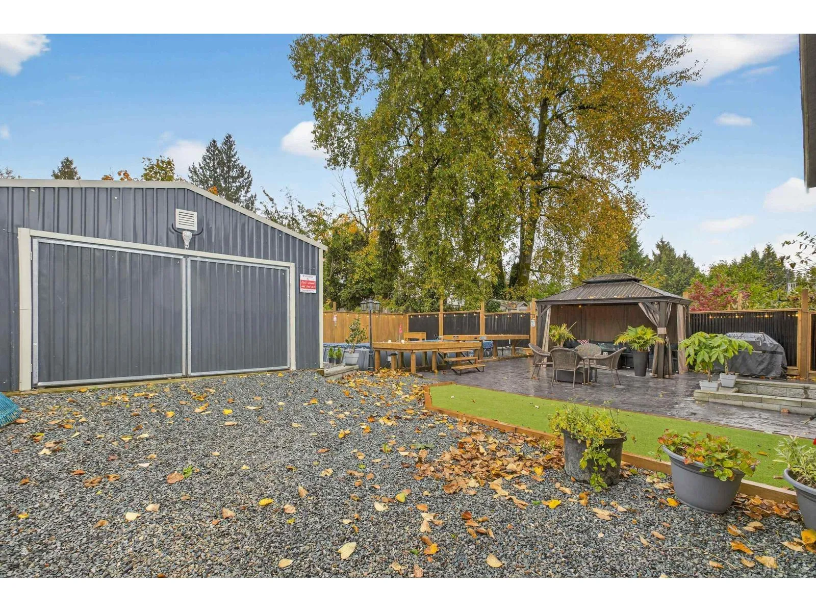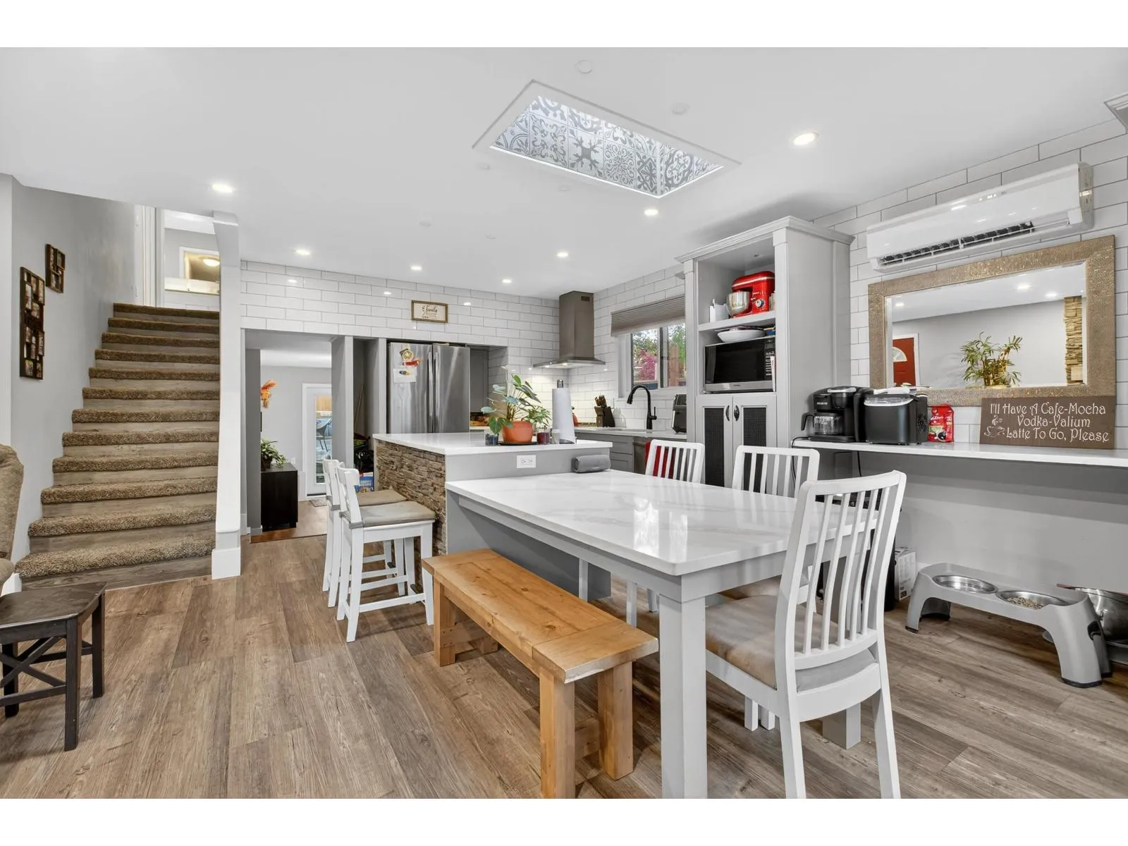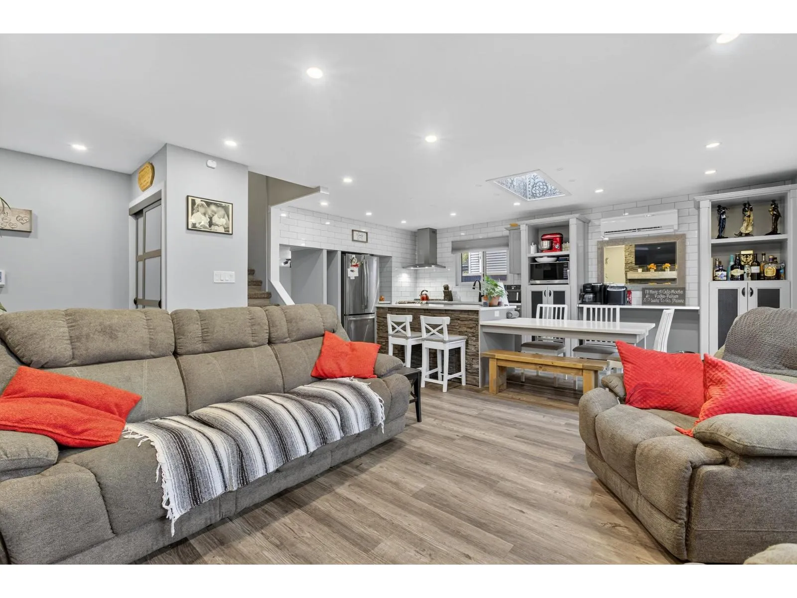 Nice split level home in Aldergrove Parkside neighbourhood, 4 beds, 1.5 baths with plenty of updating! Enjoy entertaining on the main level with updated kitchen including skylight, quartz countertops and quality backsplash, centre island with attached eating area, coffee bar, new cabinets, newer appliances, cast double sink, updated lighting, air con, and electric fireplace with cultured stone feature wall. Upstairs offers 3 bedrooms and has a beautifully remodelled bath with rain shower, free standing tub, marble counters and quality tile work. The lower level has a good sized family room and French doors leading out to the fully fenced, professionally landscaped backyard plus 4th bedroom. Above ground outdoor pool. Aprox 14 x 24 Large Workshop. Newer windows and roof, lots of parking. (id:27476)