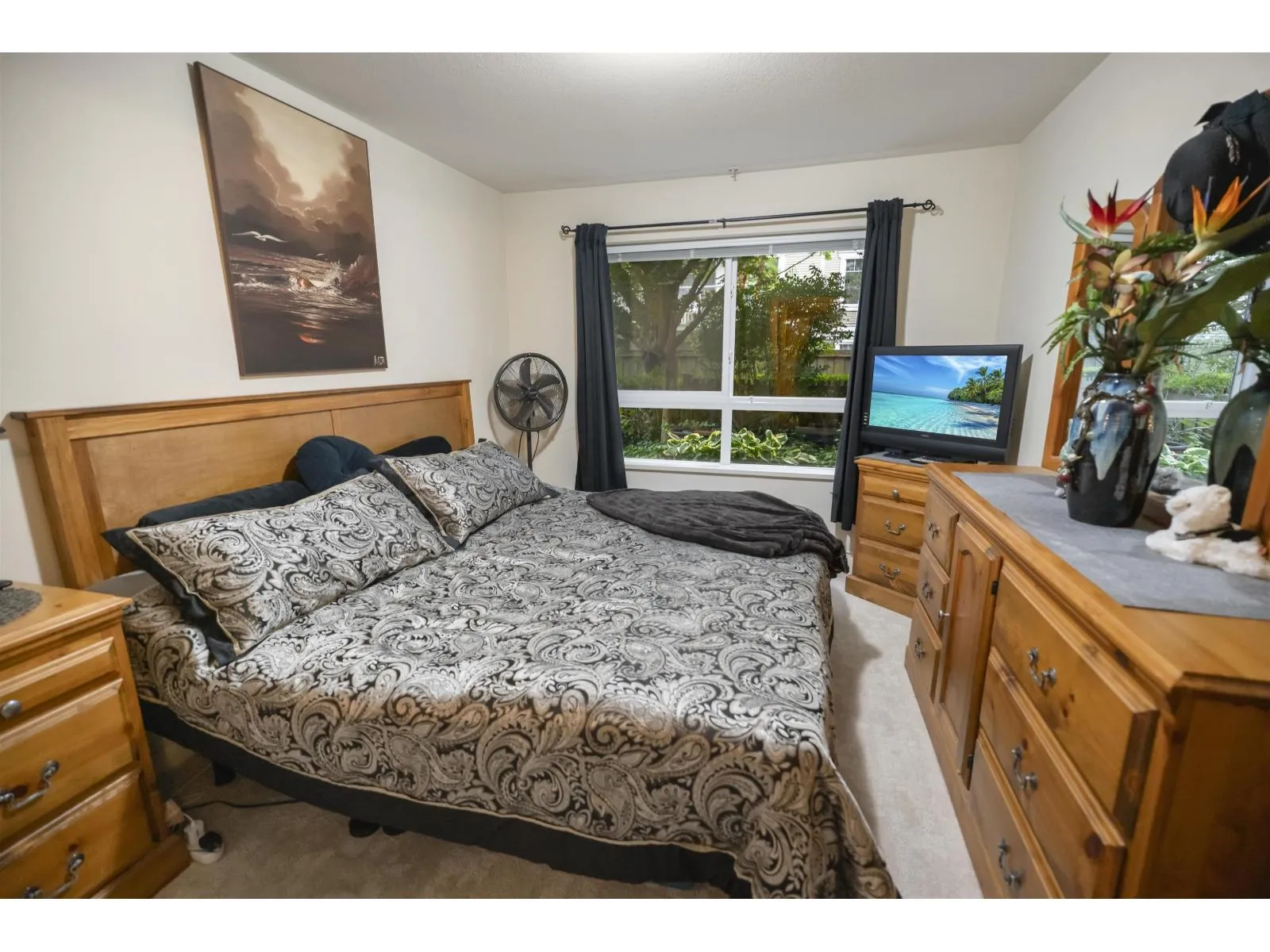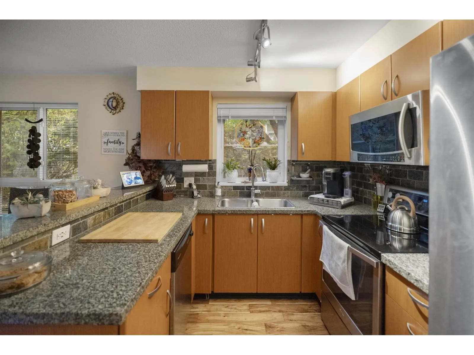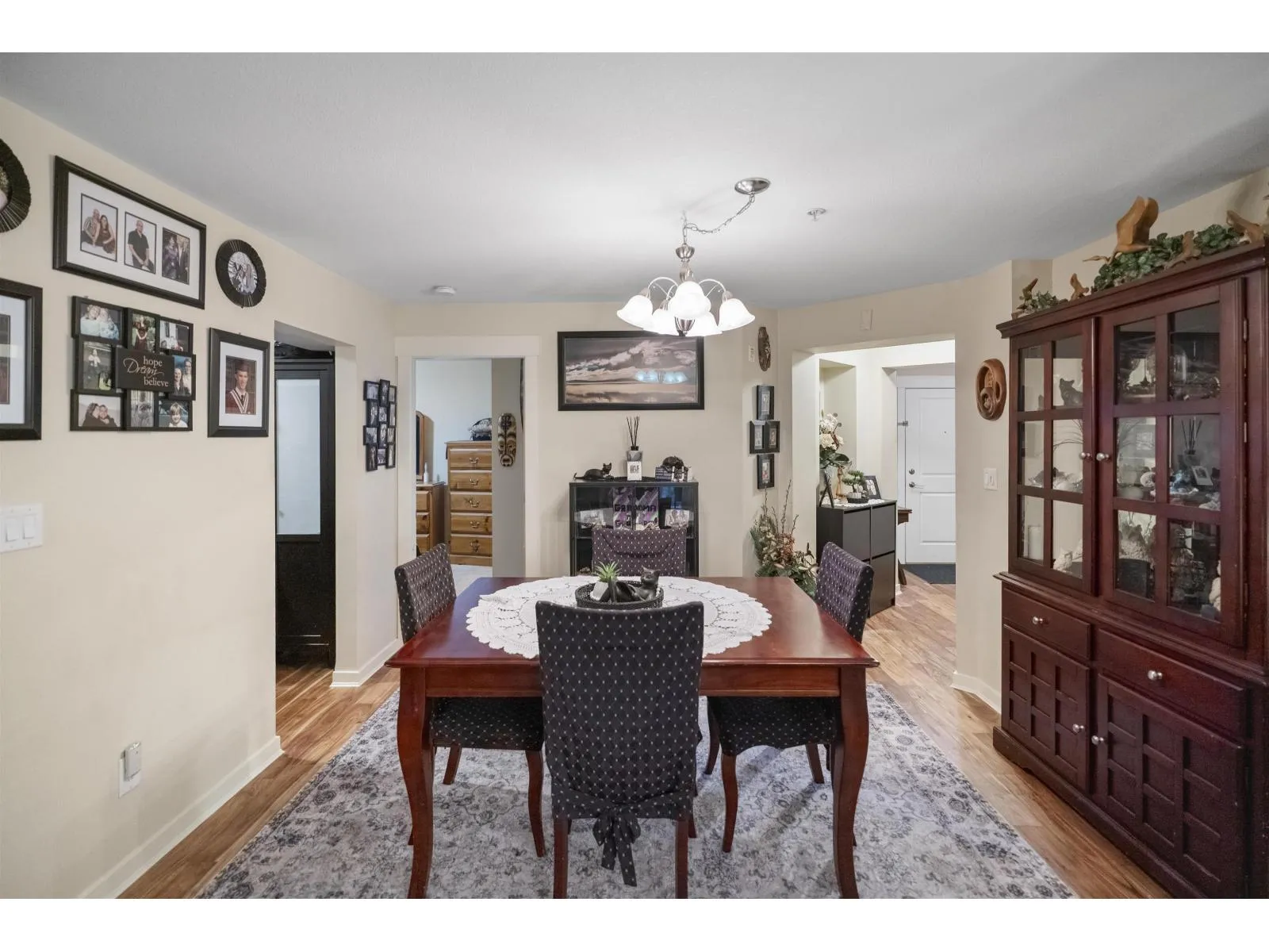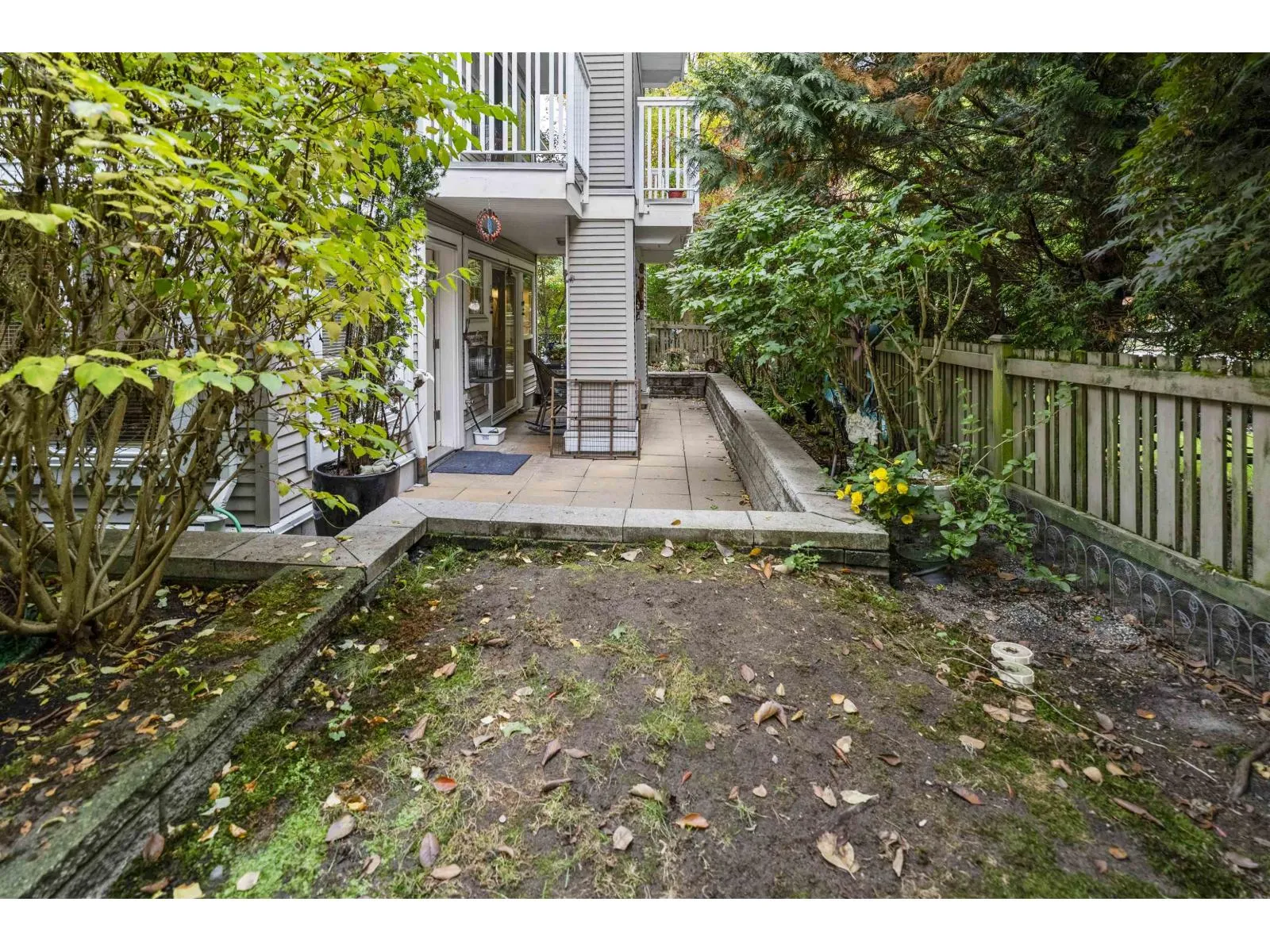 Fantastic Ground-Floor Corner Unit! Bright and spacious 2-bedroom + den home featuring upgraded hardwood flooring and freshly painted, ready for you to move in! The inviting living room with a cozy gas fireplace flows into a formal dining area, perfect for entertaining. Enjoy your morning coffee or unwind on the large private, treed patio-a peaceful retreat ideal for pets, kids, or gardening enthusiasts. The kitchen offers stainless steel appliances, ample cabinetry, and a sunny eating nook. The primary bedroom includes a walk-in closet and a full ensuite, while the second bedroom is thoughtfully separated for privacy. The den makes a perfect home office or guest space. Located on a quiet street yet close to shopping, cafes, transit, schools, parks, and Kwantlen University. Experience comfort, space, and convenience in one perfect package. Open House: Oct 25 & 26, 2-4 PM! (id:27476)