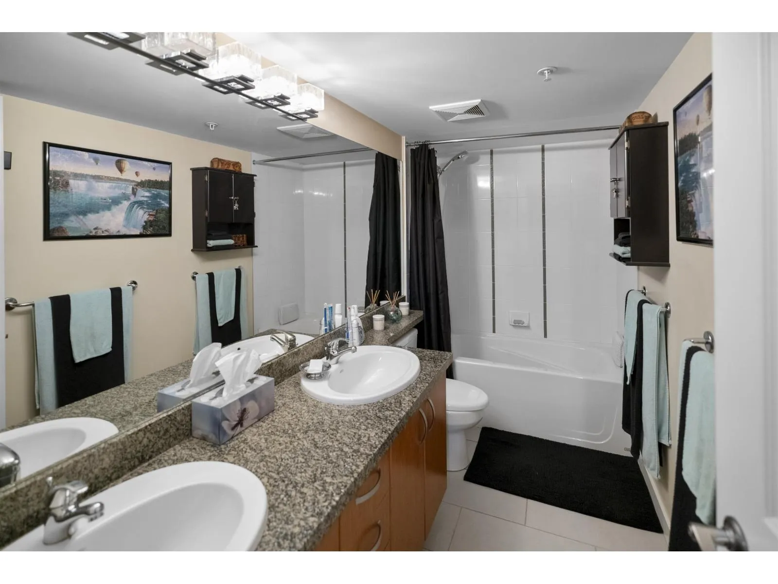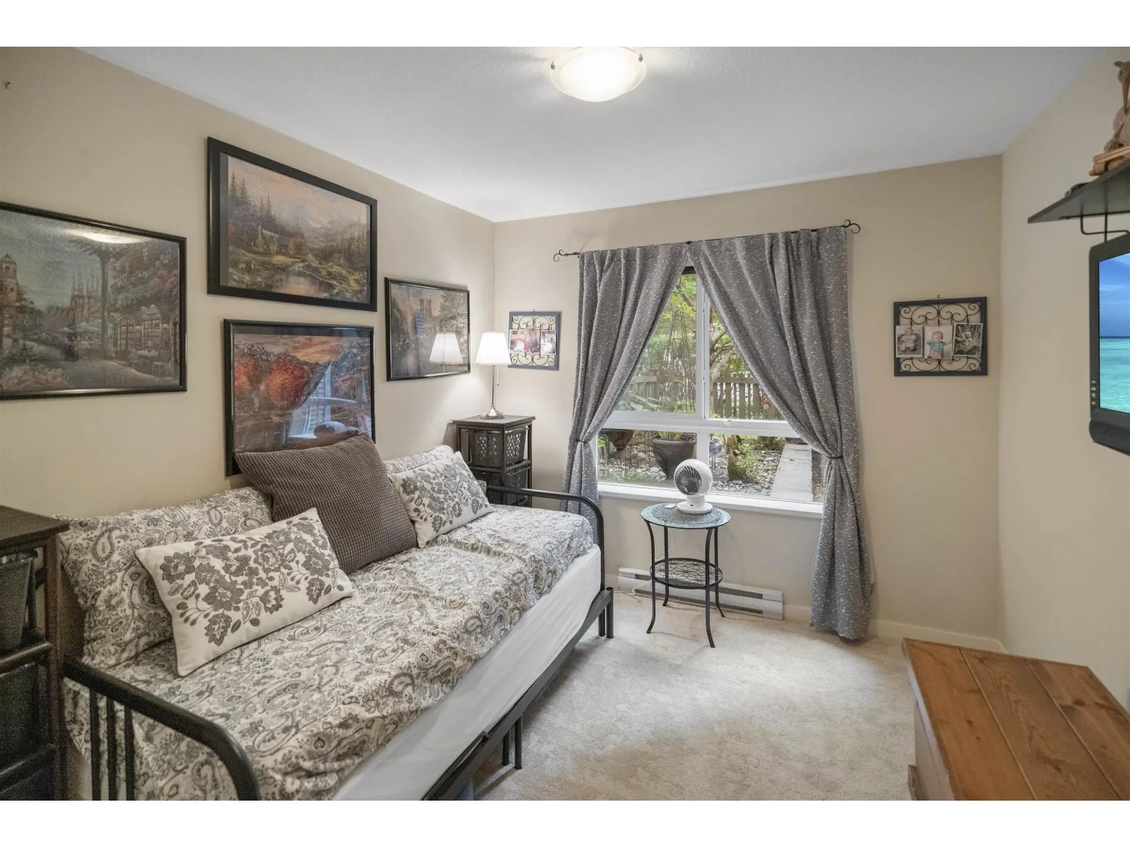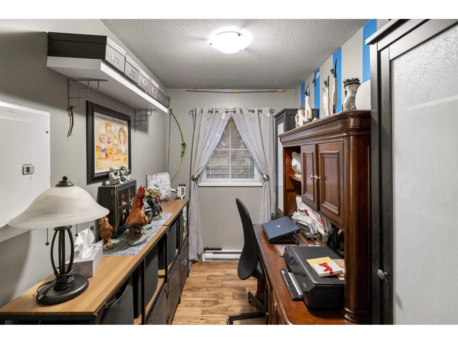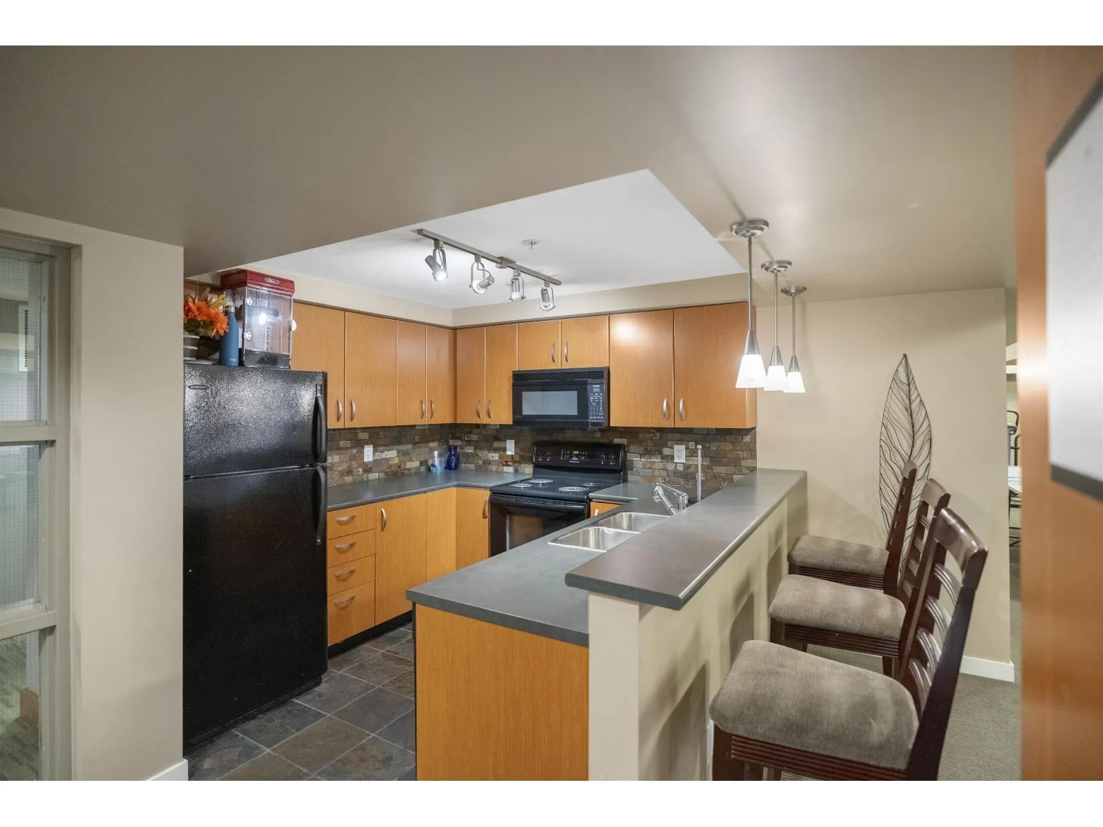 Fantastic Ground-Floor Corner Unit! Bright and spacious 2-bedroom + den home featuring upgraded hardwood flooring and freshly painted, ready for you to move in! The inviting living room with a cozy gas fireplace flows into a formal dining area, perfect for entertaining. Enjoy your morning coffee or unwind on the large private, treed patio-a peaceful retreat ideal for pets, kids, or gardening enthusiasts. The kitchen offers stainless steel appliances, ample cabinetry, and a sunny eating nook. The primary bedroom includes a walk-in closet and a full ensuite, while the second bedroom is thoughtfully separated for privacy. The den makes a perfect home office or guest space. Located on a quiet street yet close to shopping, cafes, transit, schools, parks, and Kwantlen University. Experience comfort, space, and convenience in one perfect package. Open House: Oct 25 & 26, 2-4 PM! (id:27476)