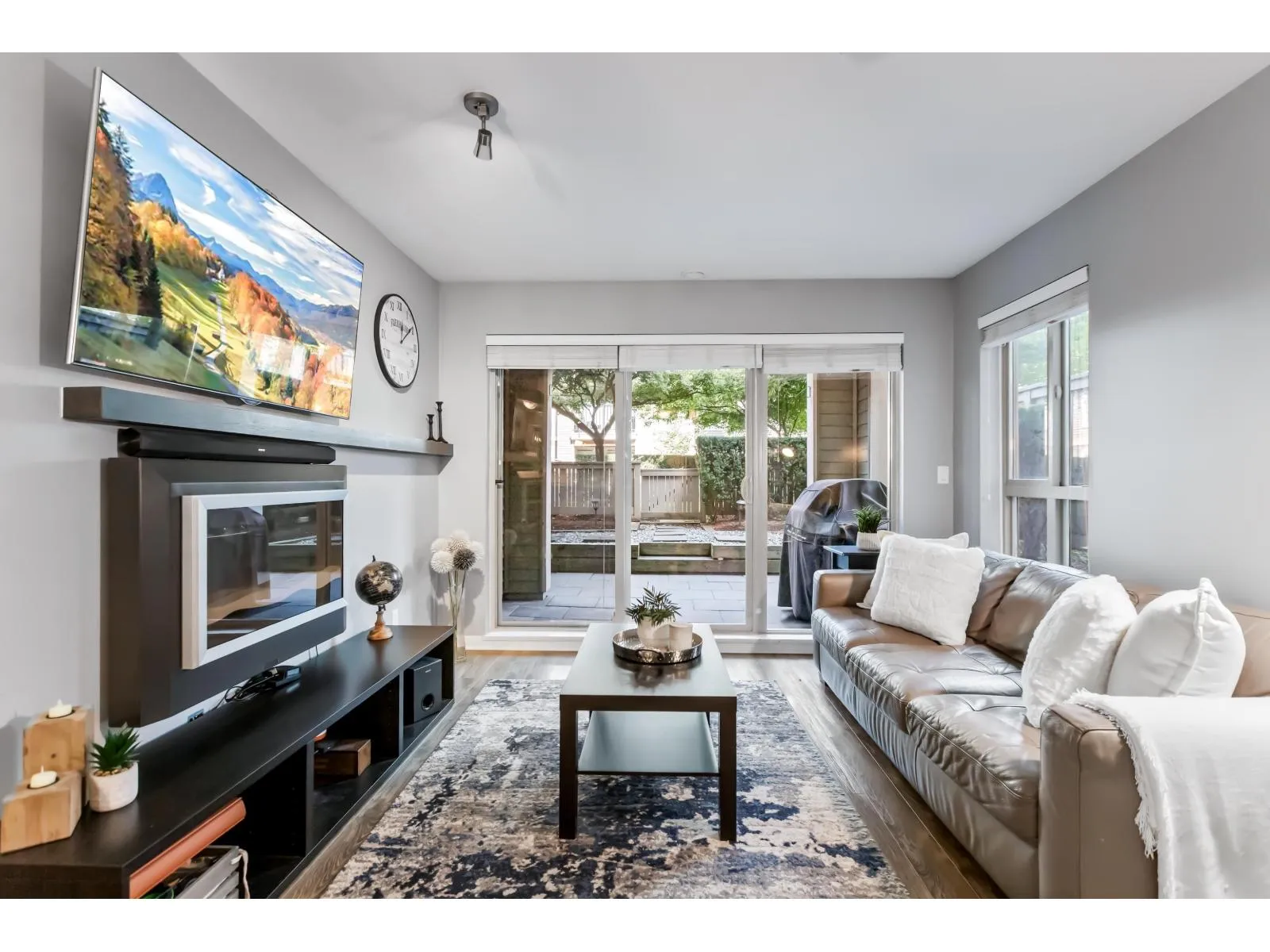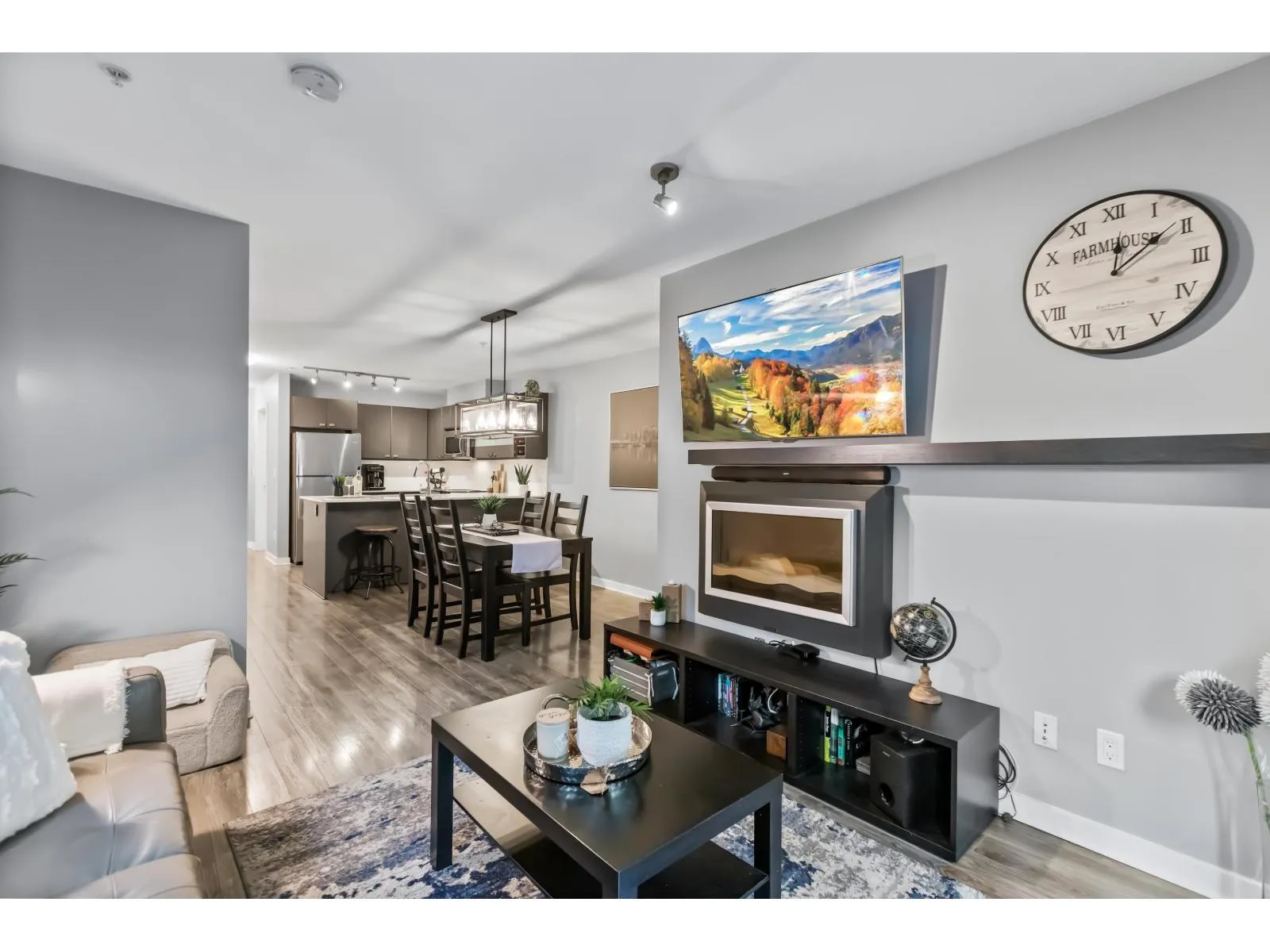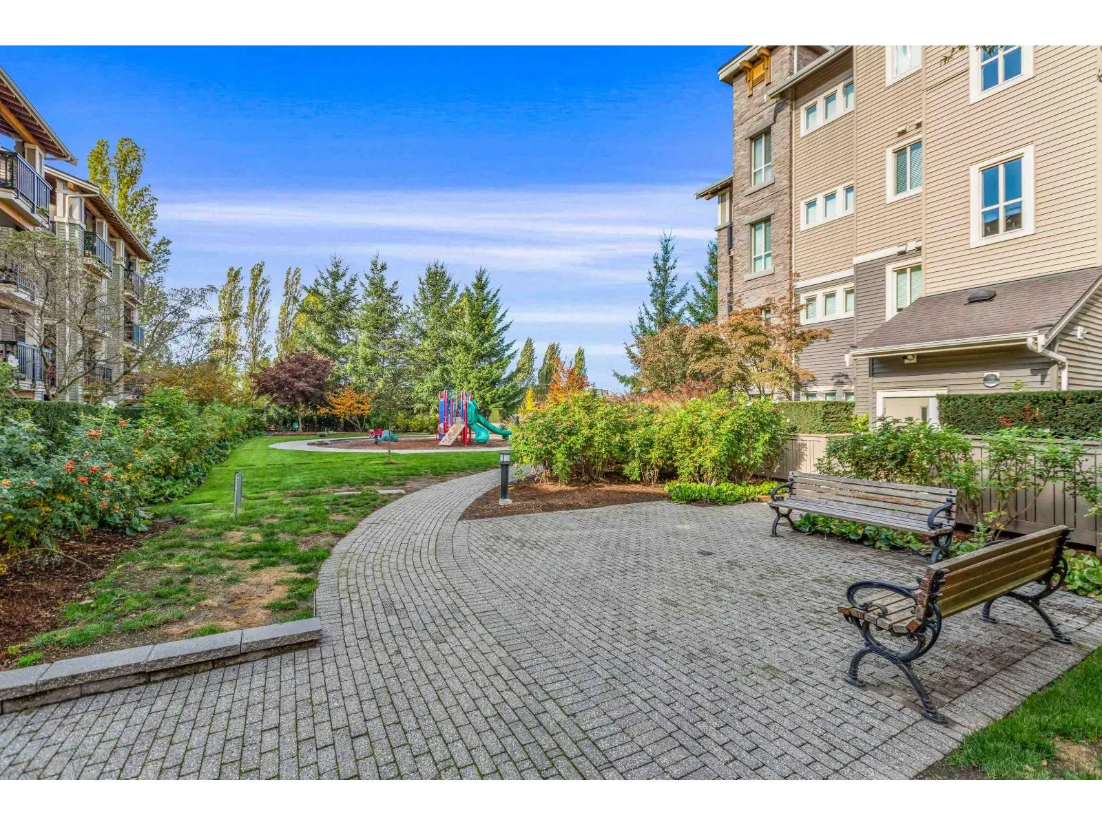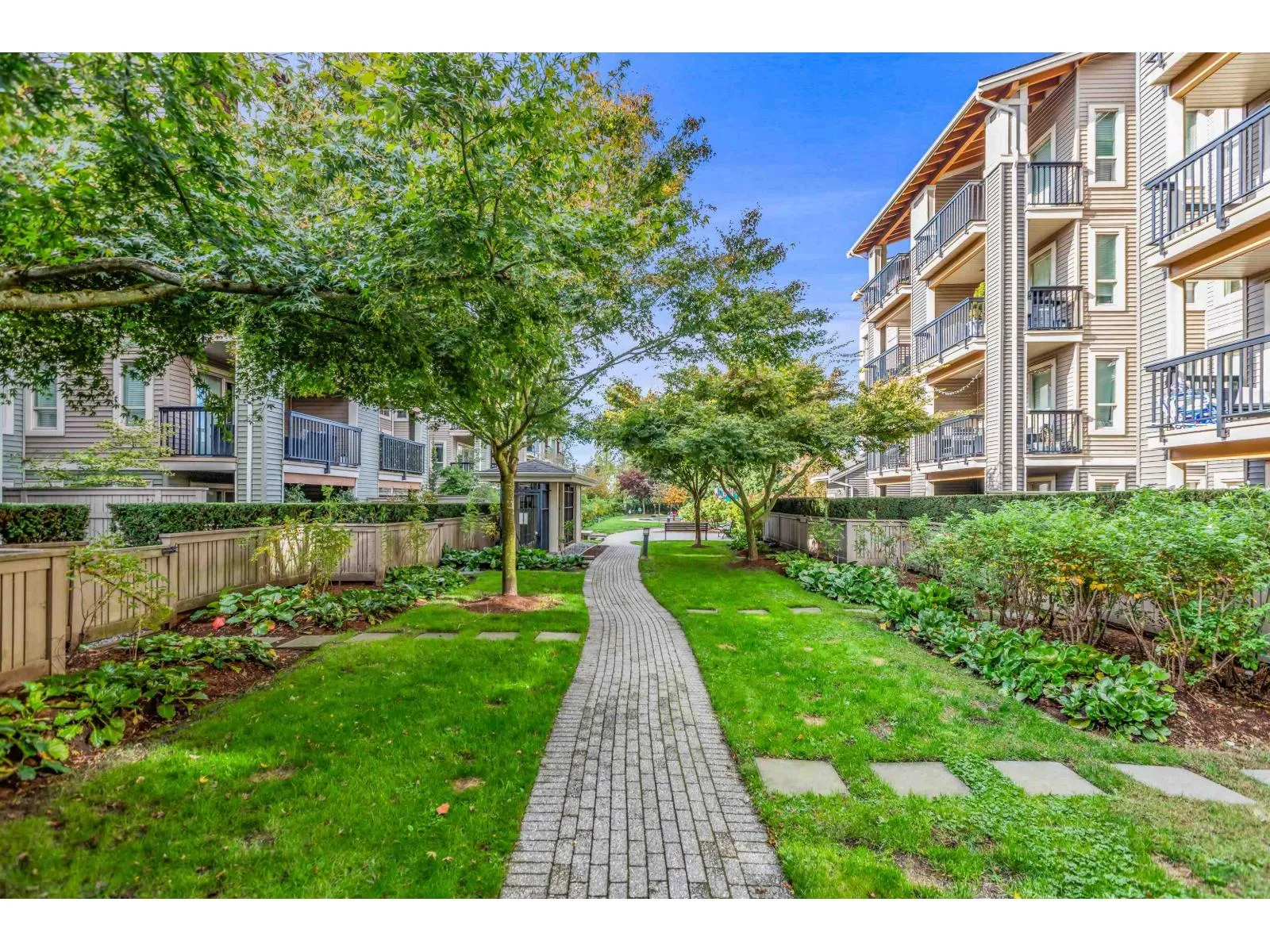 CORNERSTONE presents this beautiful GROUND FLOOR HOME offering a LARGE PRIVATE YARD with EXTRA ENTRANCE, situated on the QUIET SIDE OF THE BUILDING. Located in a secure, raised podium-style complex with no public access,ideal for pets/children.This 2-bedrm, 2-bathrm condo features an open-concept floor plan. The modern kitchen is thoughtfully designed with quartz countertops, S/S appliances, sleek cabinetry & laminate flooring that flows seamlessly into the dining/living areas.Living rm includes a floating fireplace & provides access to your private 149 sqft patio/large yard through oversized sliding doors/windows. The well-designed layout offers separated bedrms for added privacy,primary features a W/I closet & full ensuite. Pet-friendly building & located just off the Langley Bypass. (id:27476)
