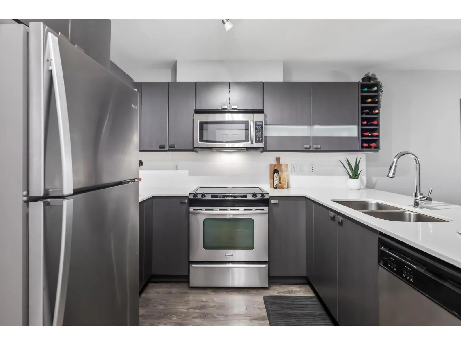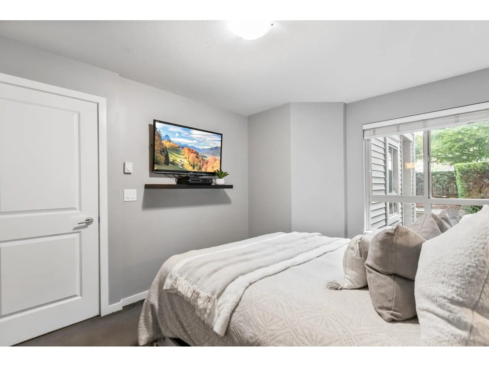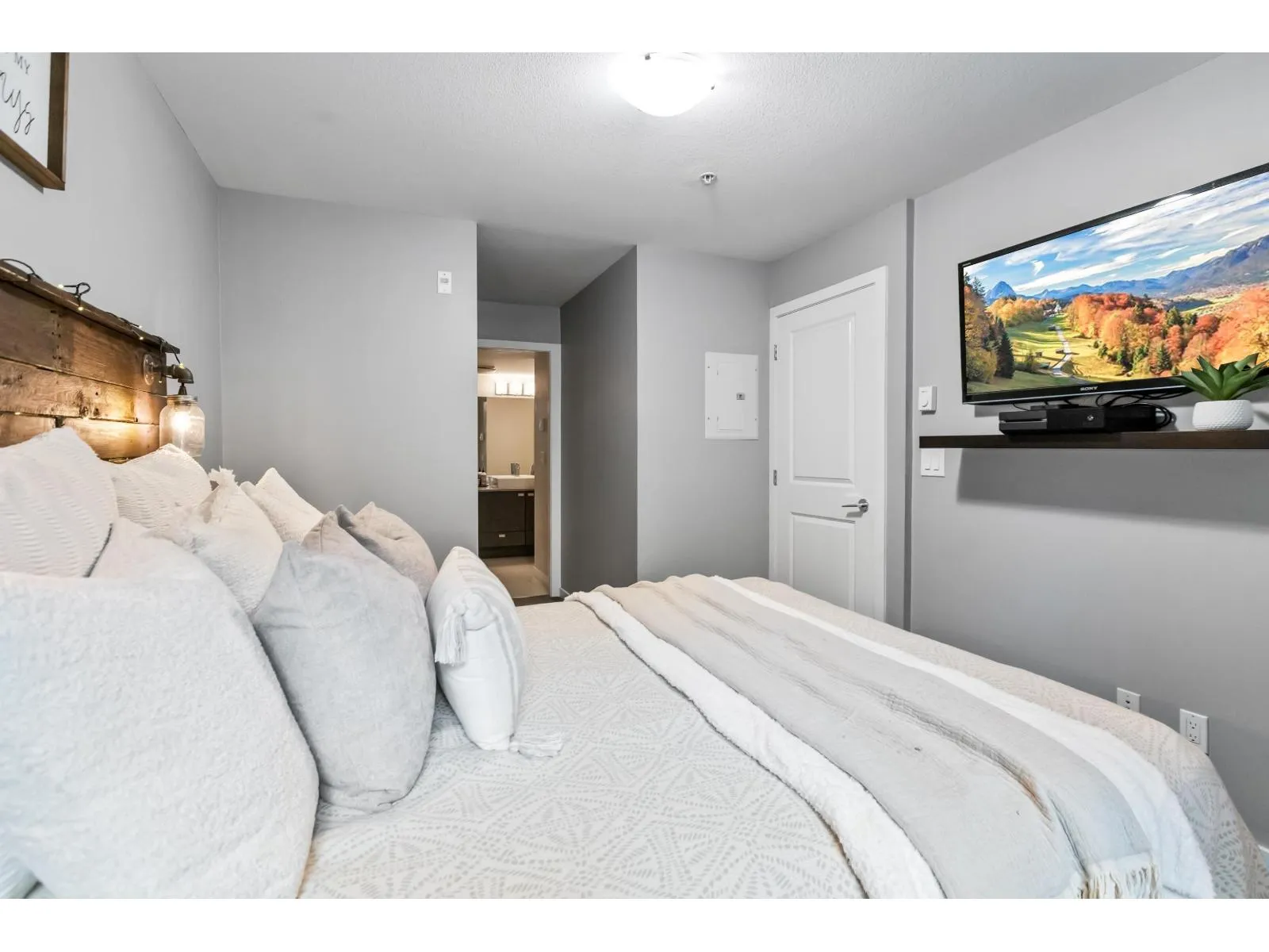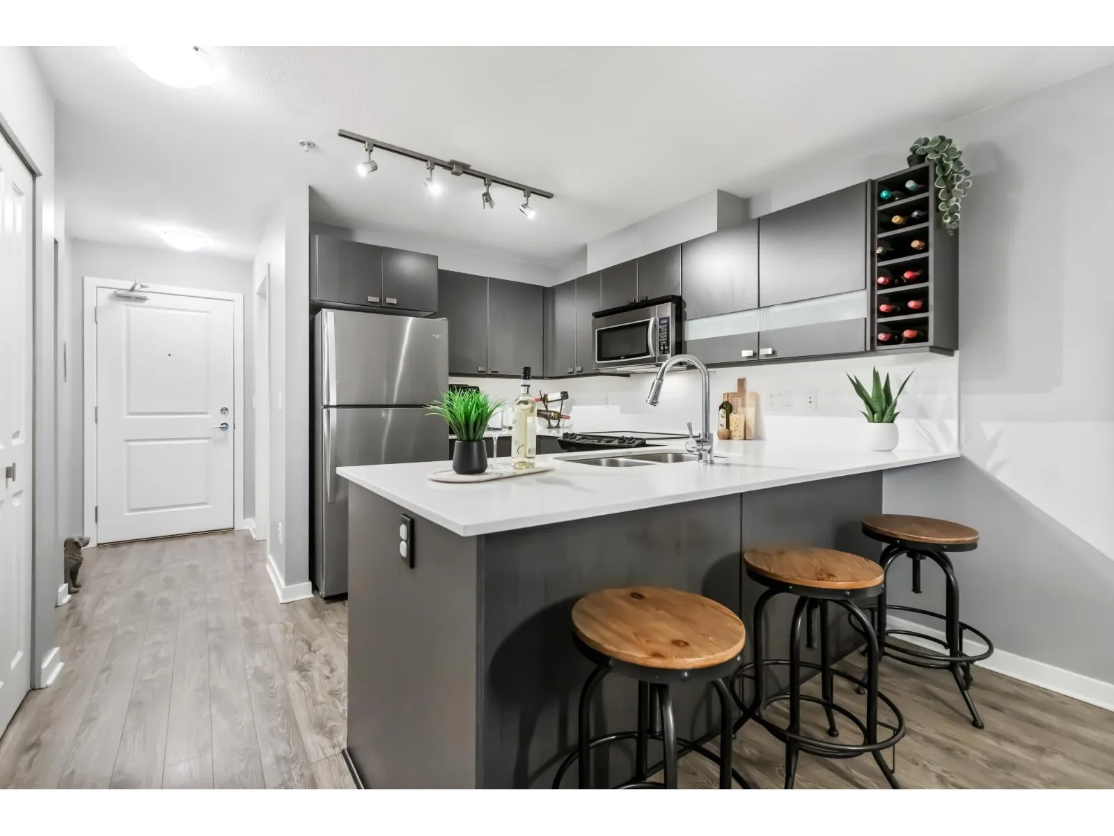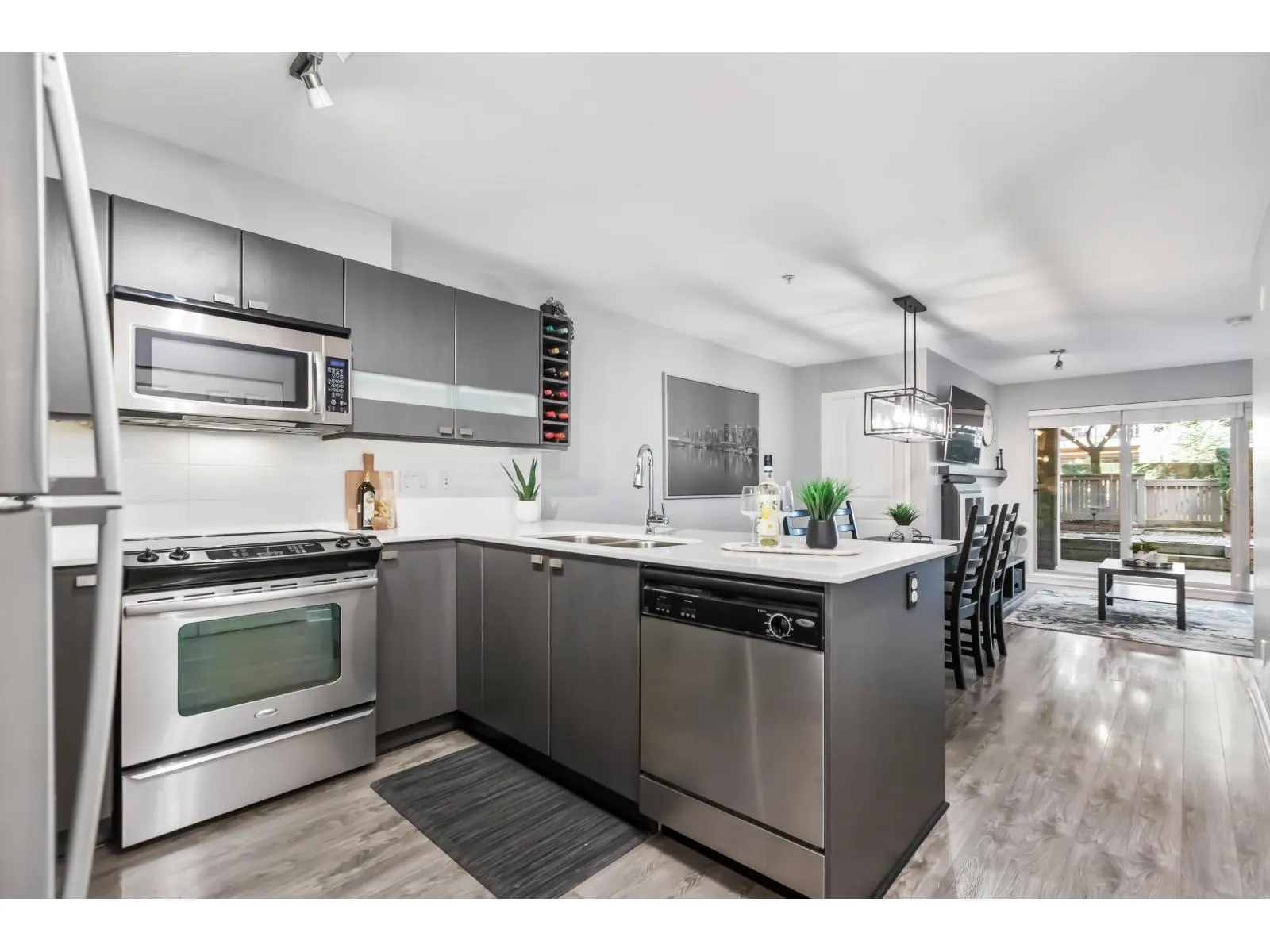CORNERSTONE presents this beautiful GROUND FLOOR HOME offering a LARGE PRIVATE YARD with EXTRA ENTRANCE, situated on the QUIET SIDE OF THE BUILDING. Located in a secure, raised podium-style complex with no public access,ideal for pets/children.This 2-bedrm, 2-bathrm condo features an open-concept floor plan. The modern kitchen is thoughtfully designed with quartz countertops, S/S appliances, sleek cabinetry & laminate flooring that flows seamlessly into the dining/living areas.Living rm includes a floating fireplace & provides access to your private 149 sqft patio/large yard through oversized sliding doors/windows. The well-designed layout offers separated bedrms for added privacy,primary features a W/I closet & full ensuite. Pet-friendly building & located just off the Langley Bypass. (id:27476)