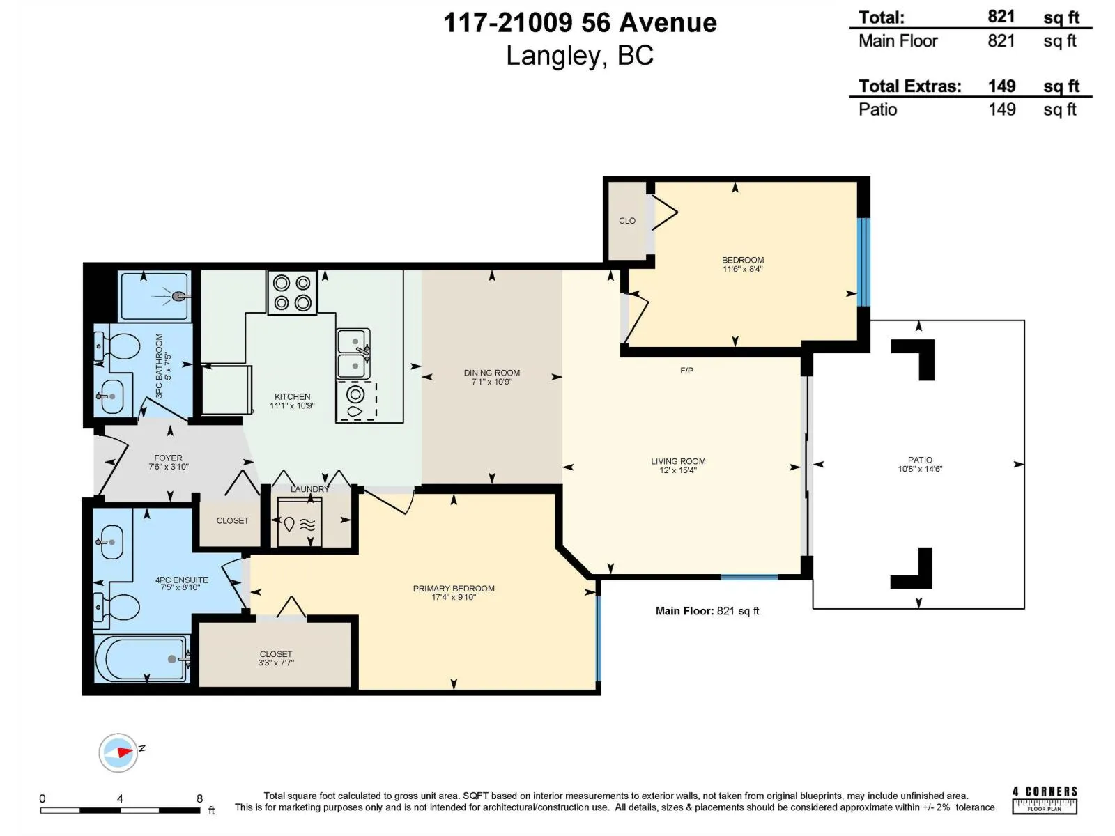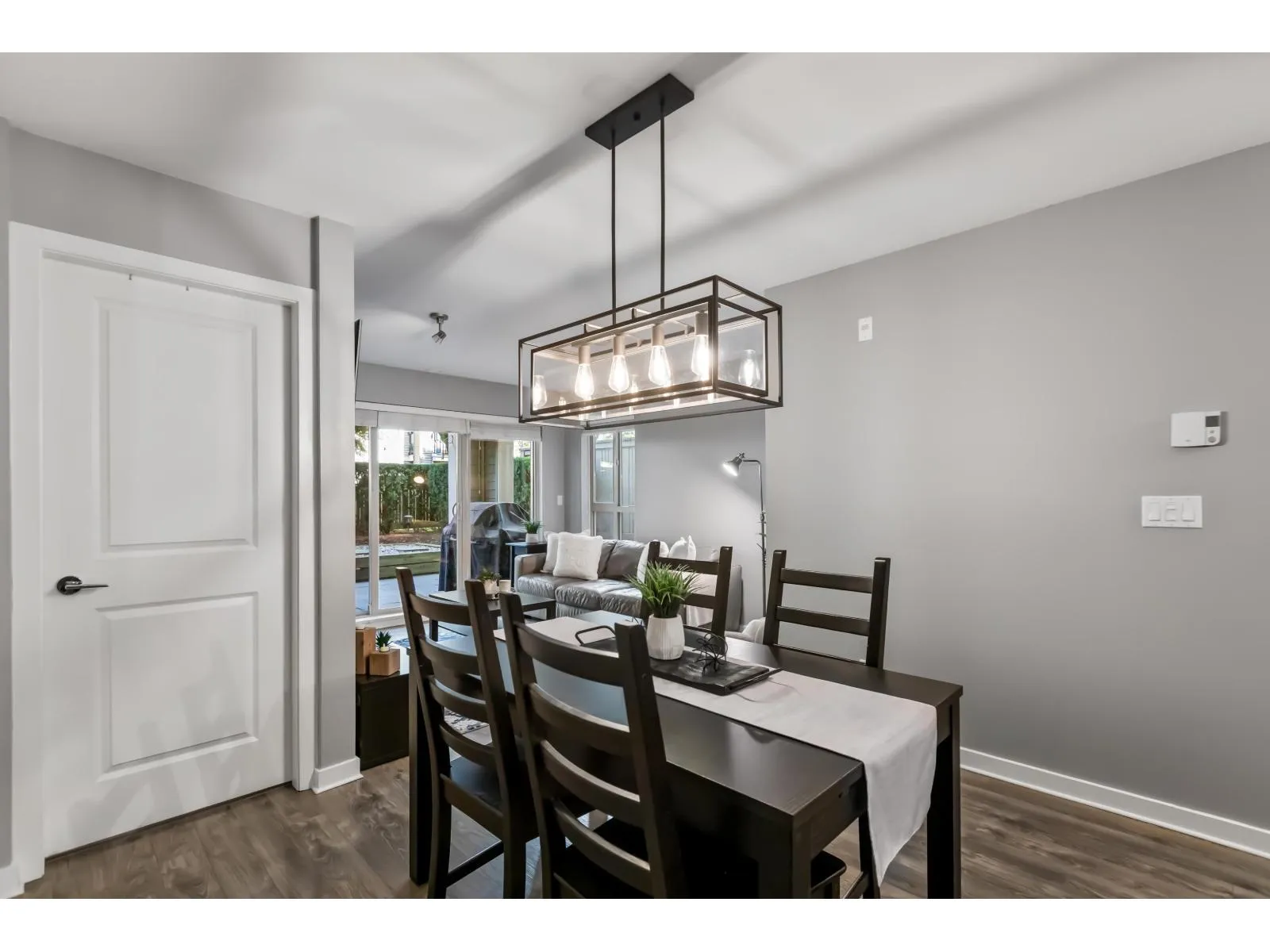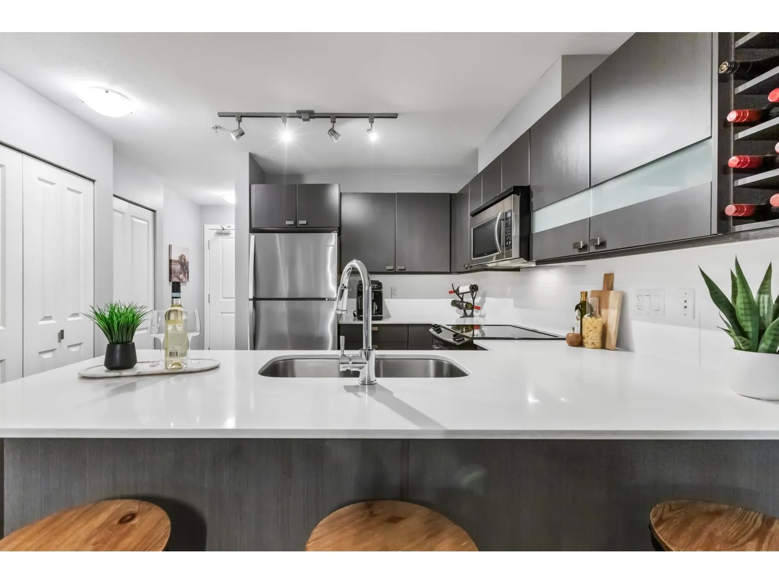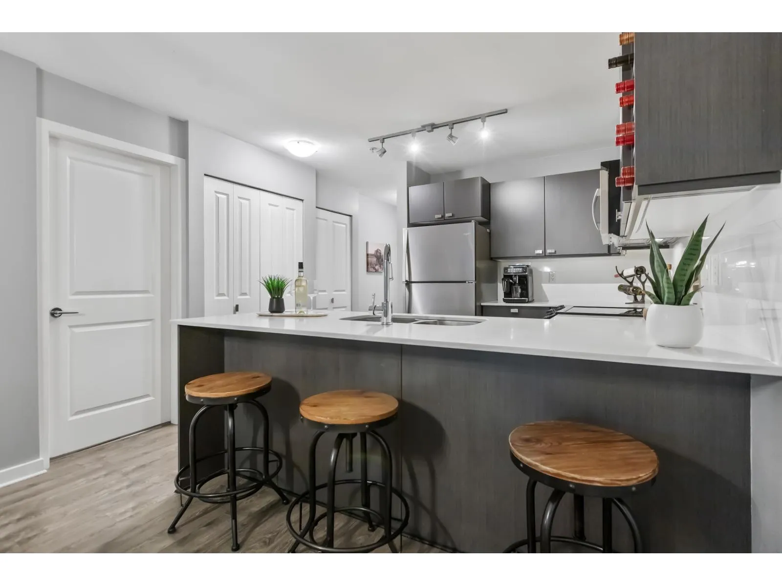 CORNERSTONE presents this beautiful GROUND FLOOR HOME offering a LARGE PRIVATE YARD with EXTRA ENTRANCE, situated on the QUIET SIDE OF THE BUILDING. Located in a secure, raised podium-style complex with no public access,ideal for pets/children.This 2-bedrm, 2-bathrm condo features an open-concept floor plan. The modern kitchen is thoughtfully designed with quartz countertops, S/S appliances, sleek cabinetry & laminate flooring that flows seamlessly into the dining/living areas.Living rm includes a floating fireplace & provides access to your private 149 sqft patio/large yard through oversized sliding doors/windows. The well-designed layout offers separated bedrms for added privacy,primary features a W/I closet & full ensuite. Pet-friendly building & located just off the Langley Bypass. (id:27476)