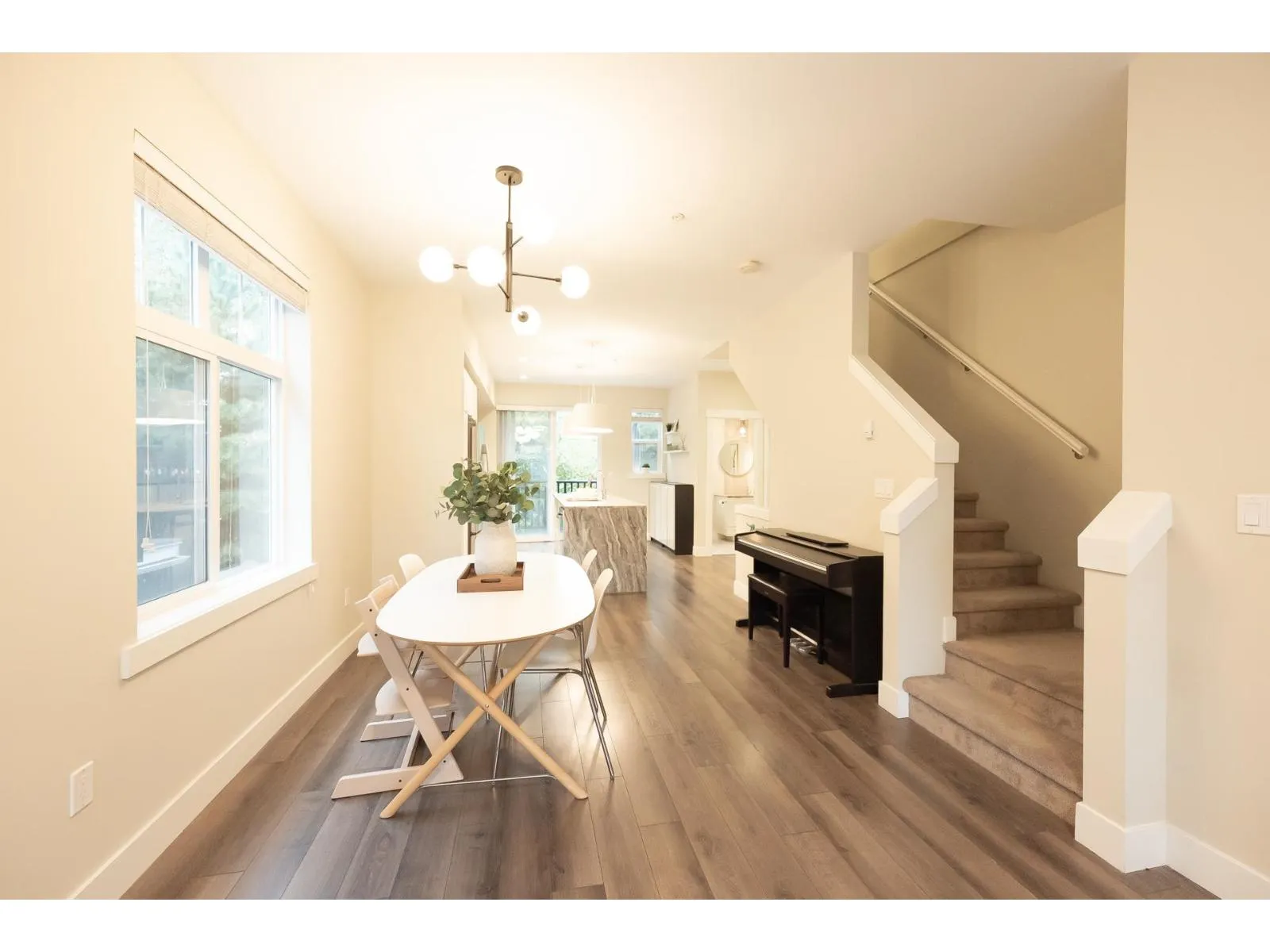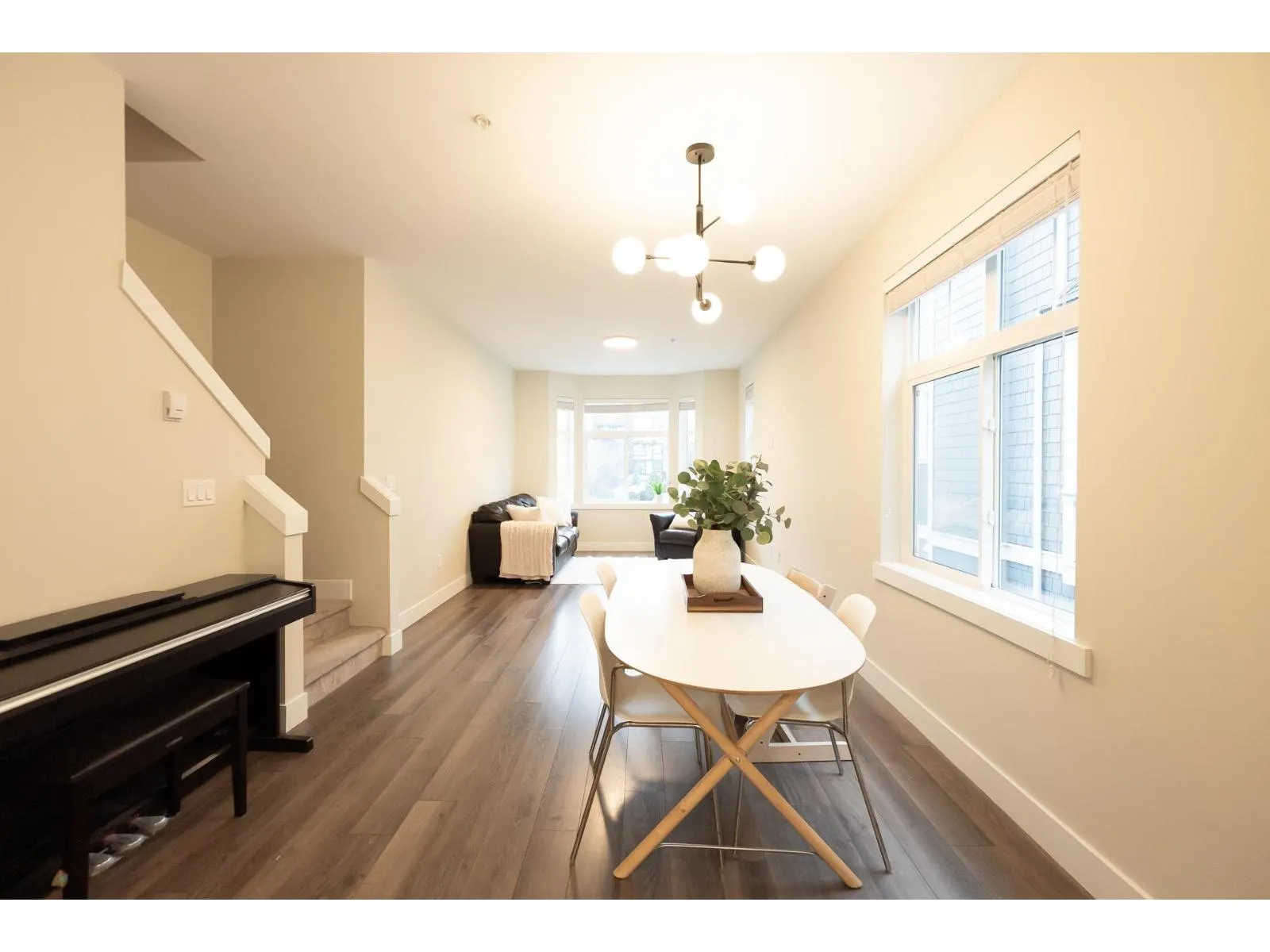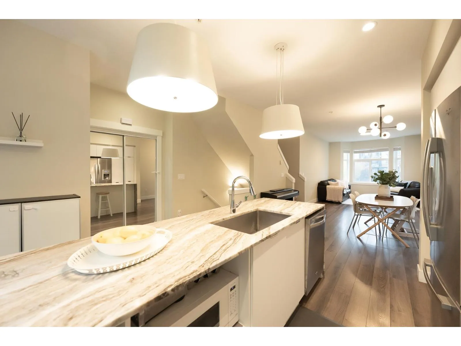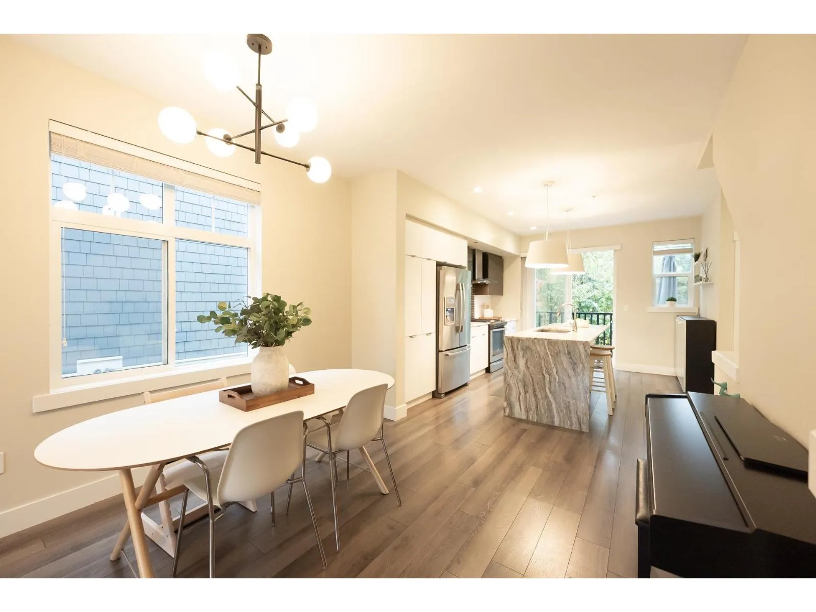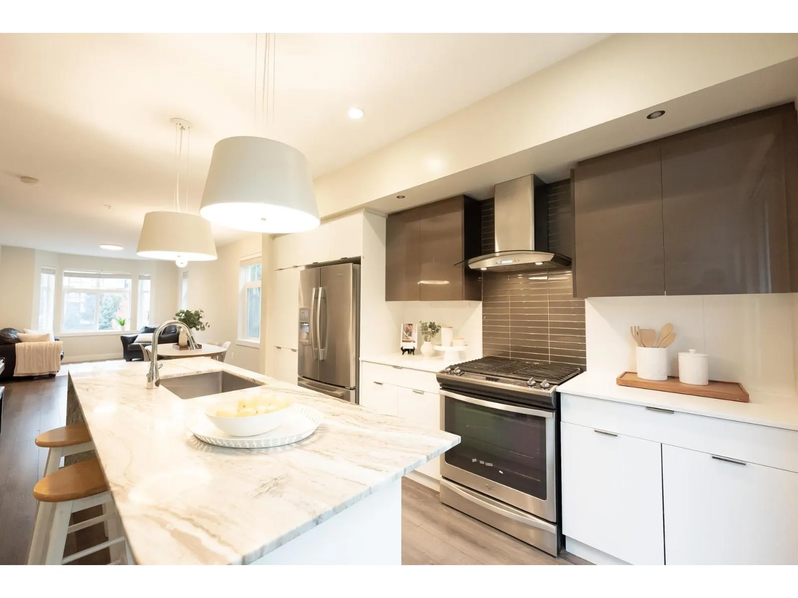 Welcome to ARCADIA, a bright and beautifully designed END UNIT townhome in the heart of Willoughby Heights, backing onto a GREENBELT With extra windows on three sides and a charming bay window, this home feels exceptionally spacious and open. Enjoy year-round comfort with radiant in-floor heating. From the north-facing living room and primary bedroom, take in open views with no neighboring units in sight-perfect for privacy. On the south side, the lush greenbelt adds greenery, tranquility, and even more privacy. This 3 BED, 2.5 BATH home features quartz countertops, stainless steel appliances, a gas range, and a large waterfall island. Bright, private, and modern-this end unit is truly a must-see! OPEN HOUSE Sat & Sun, Nov 1 & 2 | 2:30-4PM (id:27476)