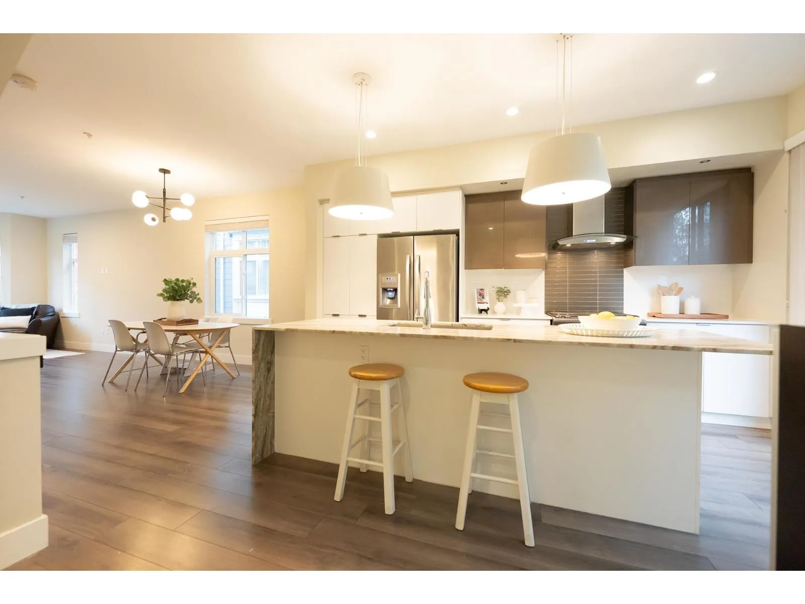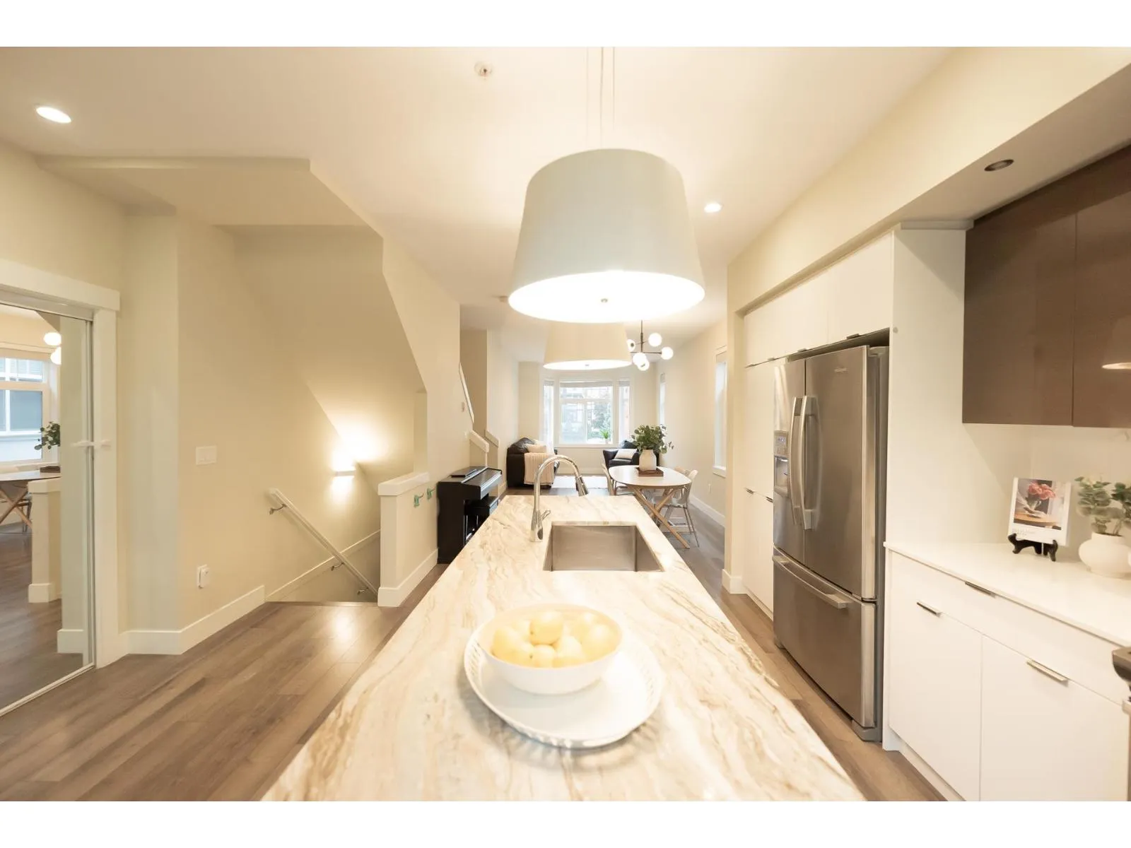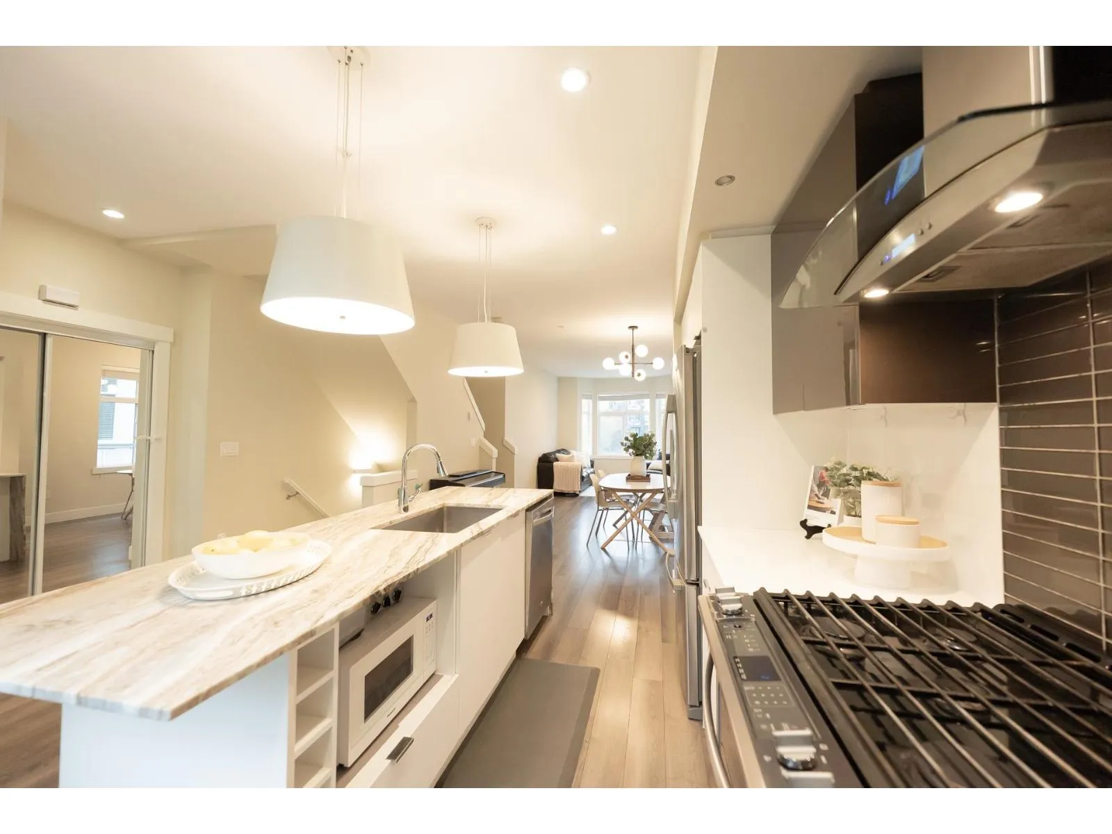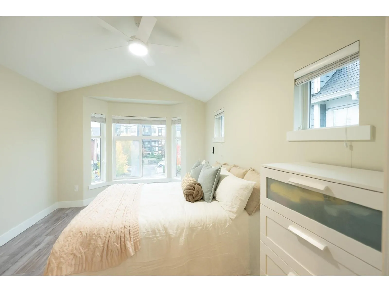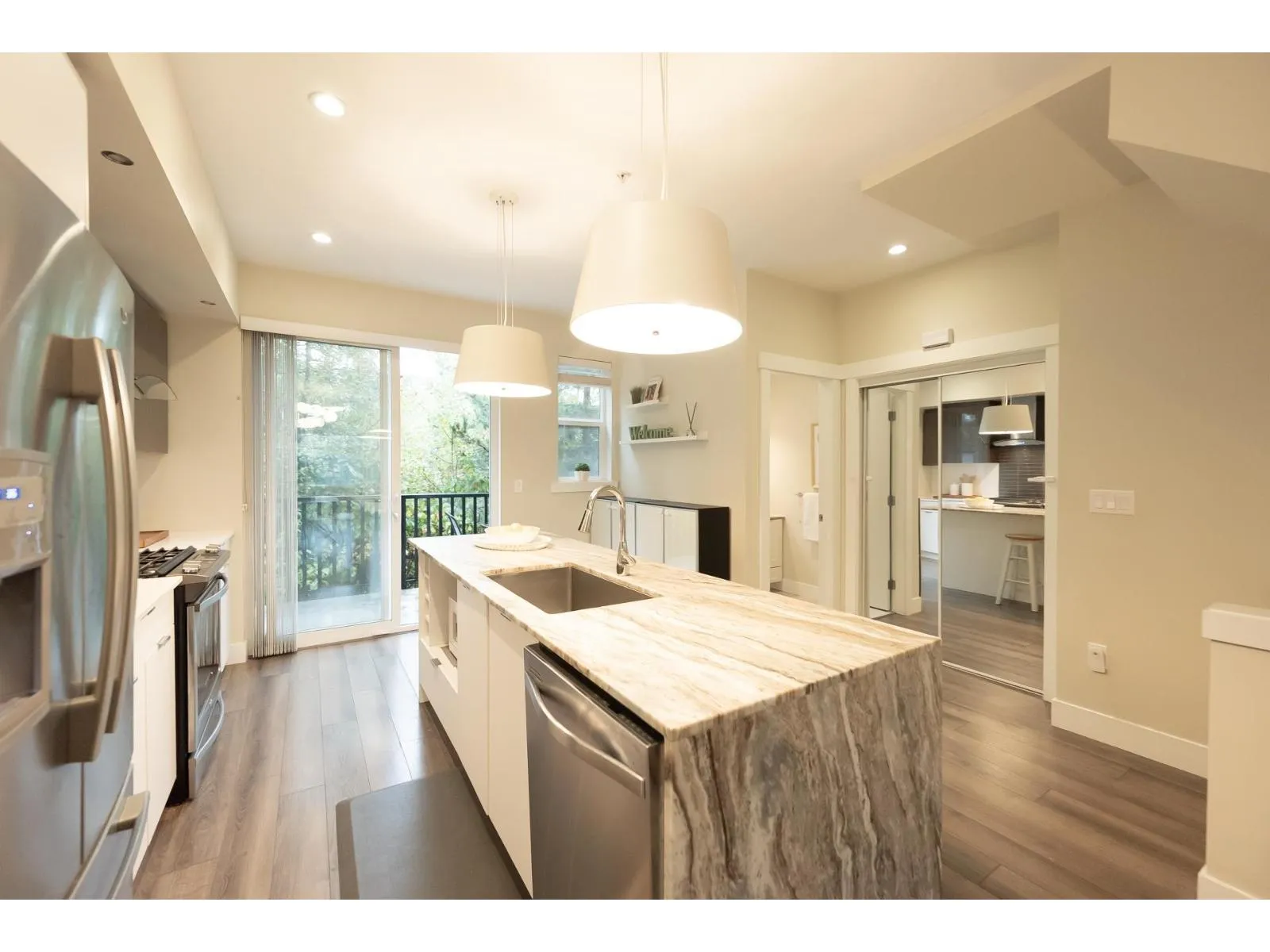 Welcome to ARCADIA, a bright and beautifully designed END UNIT townhome in the heart of Willoughby Heights, backing onto a GREENBELT With extra windows on three sides and a charming bay window, this home feels exceptionally spacious and open. Enjoy year-round comfort with radiant in-floor heating. From the north-facing living room and primary bedroom, take in open views with no neighboring units in sight-perfect for privacy. On the south side, the lush greenbelt adds greenery, tranquility, and even more privacy. This 3 BED, 2.5 BATH home features quartz countertops, stainless steel appliances, a gas range, and a large waterfall island. Bright, private, and modern-this end unit is truly a must-see! OPEN HOUSE Sat & Sun, Nov 1 & 2 | 2:30-4PM (id:27476)