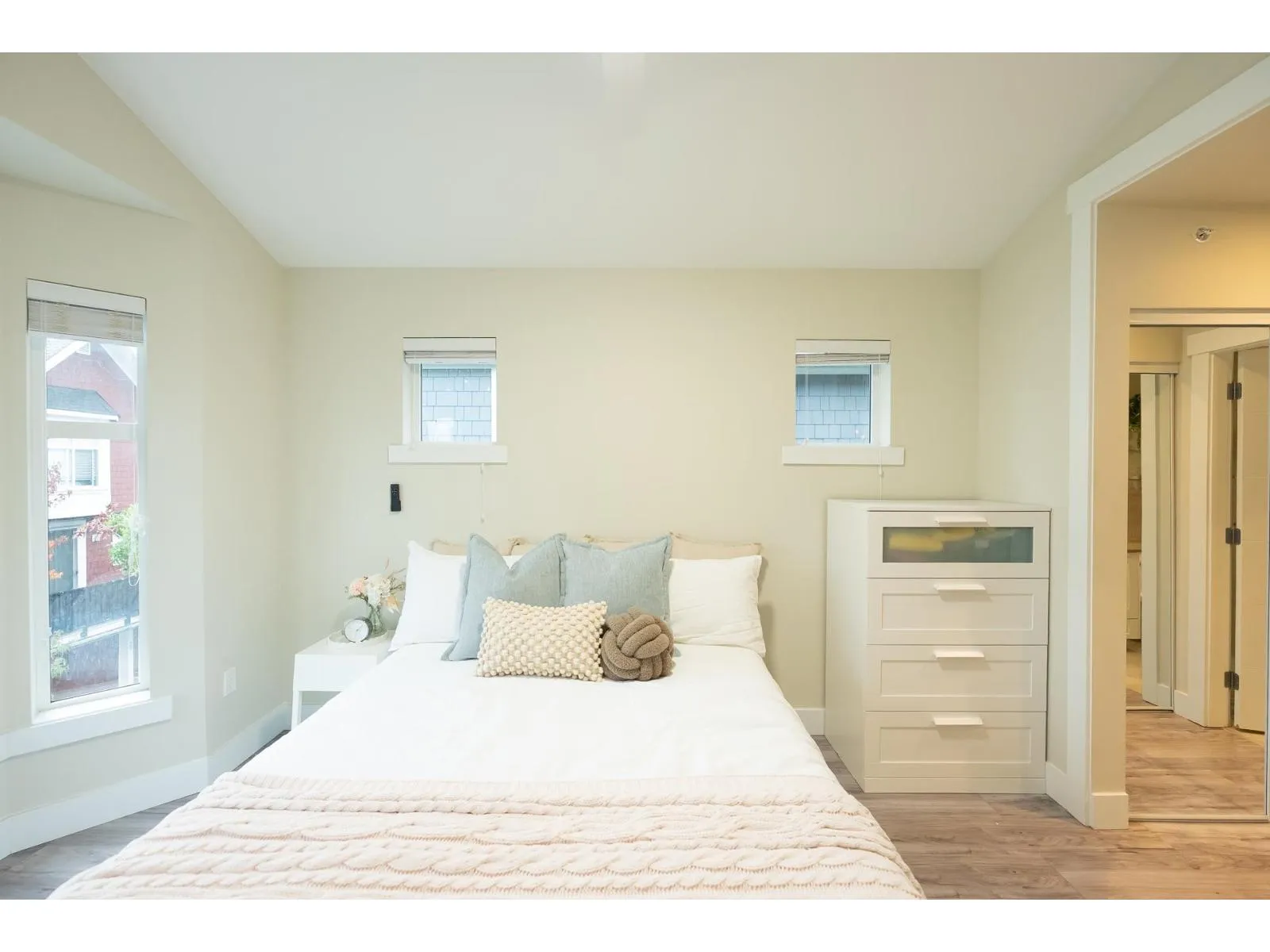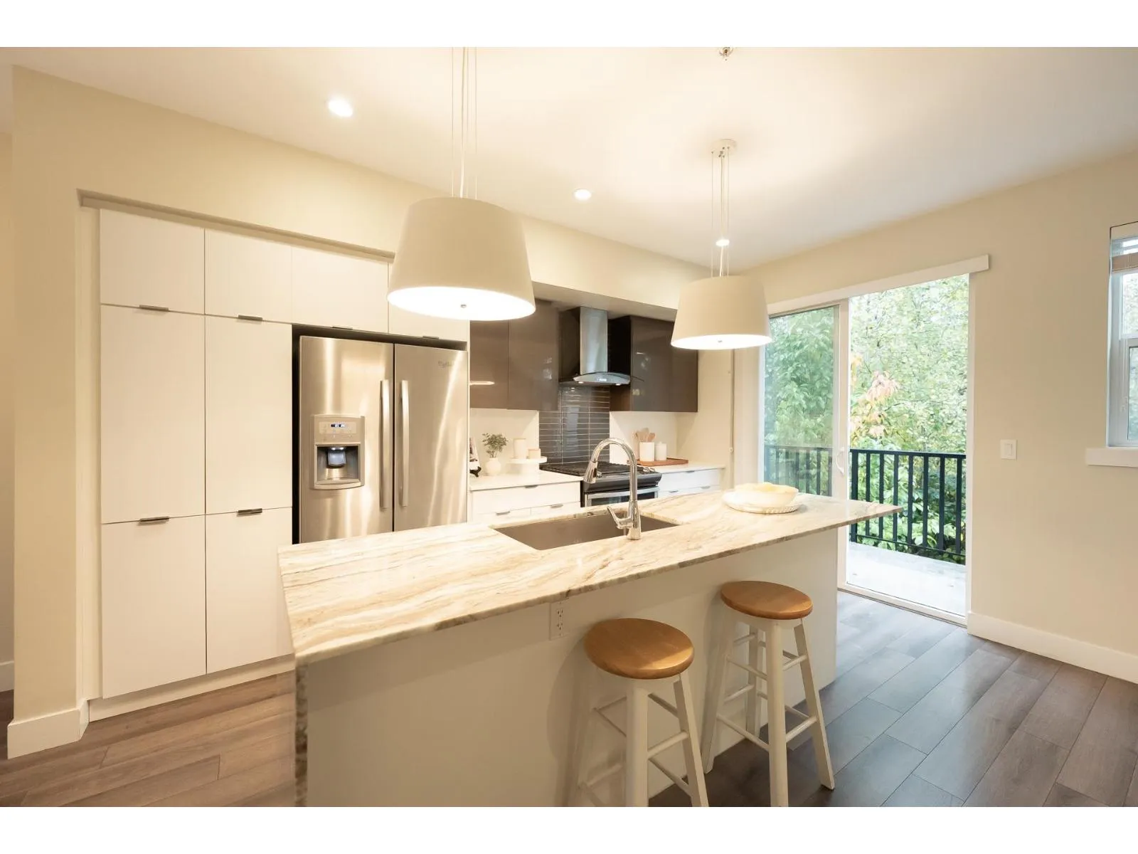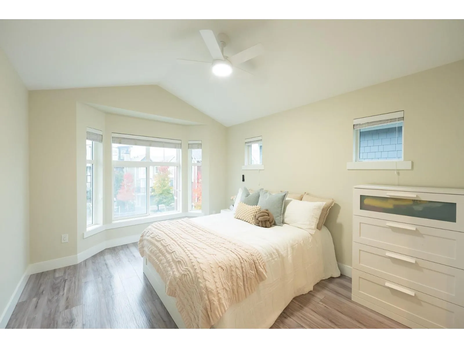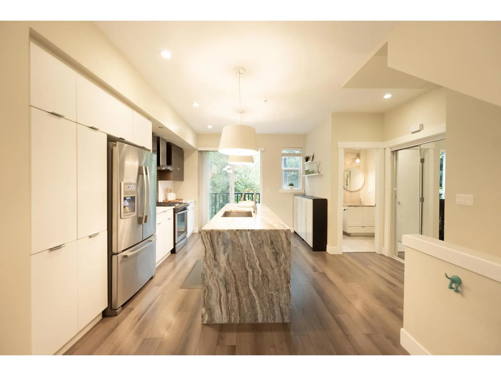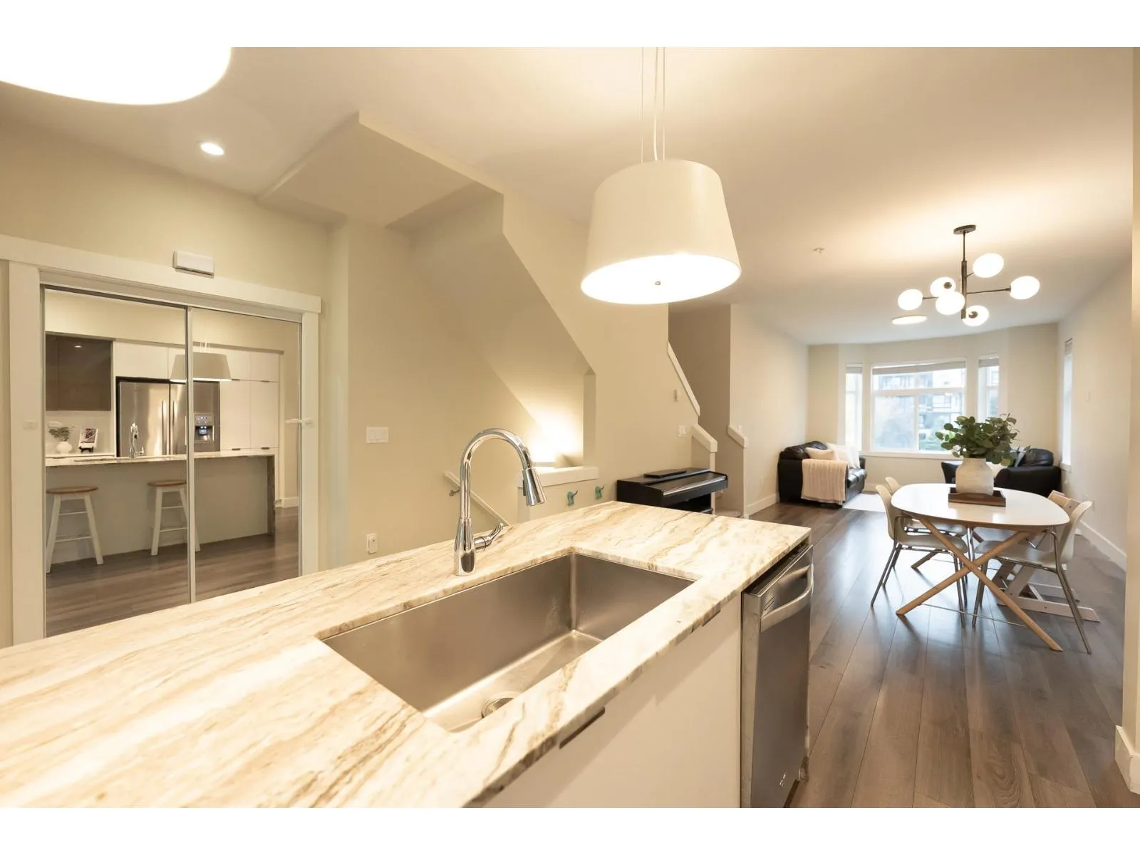 Welcome to ARCADIA, a bright and beautifully designed END UNIT townhome in the heart of Willoughby Heights, backing onto a GREENBELT With extra windows on three sides and a charming bay window, this home feels exceptionally spacious and open. Enjoy year-round comfort with radiant in-floor heating. From the north-facing living room and primary bedroom, take in open views with no neighboring units in sight-perfect for privacy. On the south side, the lush greenbelt adds greenery, tranquility, and even more privacy. This 3 BED, 2.5 BATH home features quartz countertops, stainless steel appliances, a gas range, and a large waterfall island. Bright, private, and modern-this end unit is truly a must-see! OPEN HOUSE Sat & Sun, Nov 1 & 2 | 2:30-4PM (id:27476)