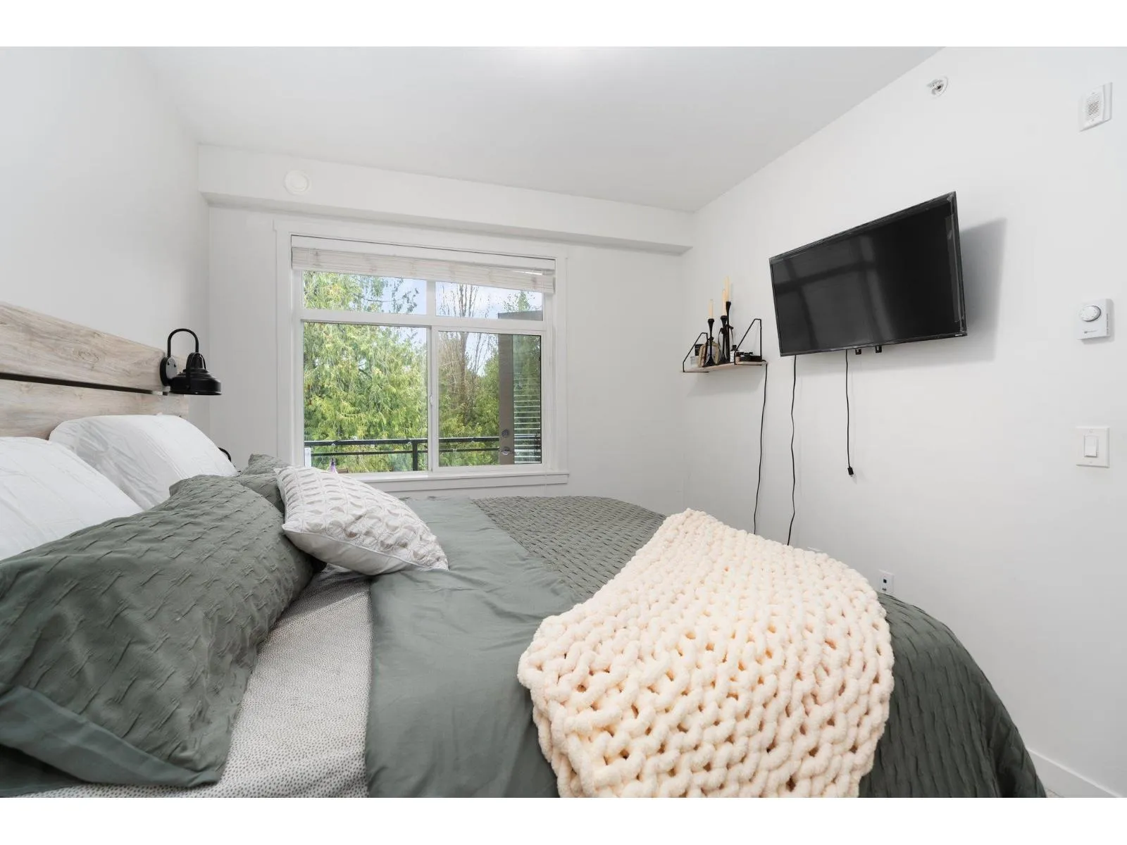 Welcome to this stunning top-floor 2 bed, 2 bath home in the heart of Langley! Built in 2021, this modern condo offers a perfect blend of style and convenience. Soaring ceilings create a bright and airy atmosphere, while large windows showcase peaceful ravine and green space views for ultimate privacy. The thoughtfully designed layout features a sleek kitchen, spacious living area, and bedrooms on opposite sides for added comfort. The building offers excellent amenities, including a fitness centre, bike room, and more, all just steps away from shops, restaurants, and transit. Don't miss this rare opportunity to own a top-floor unit with breathtaking views in a highly sought-after central location. (id:27476)