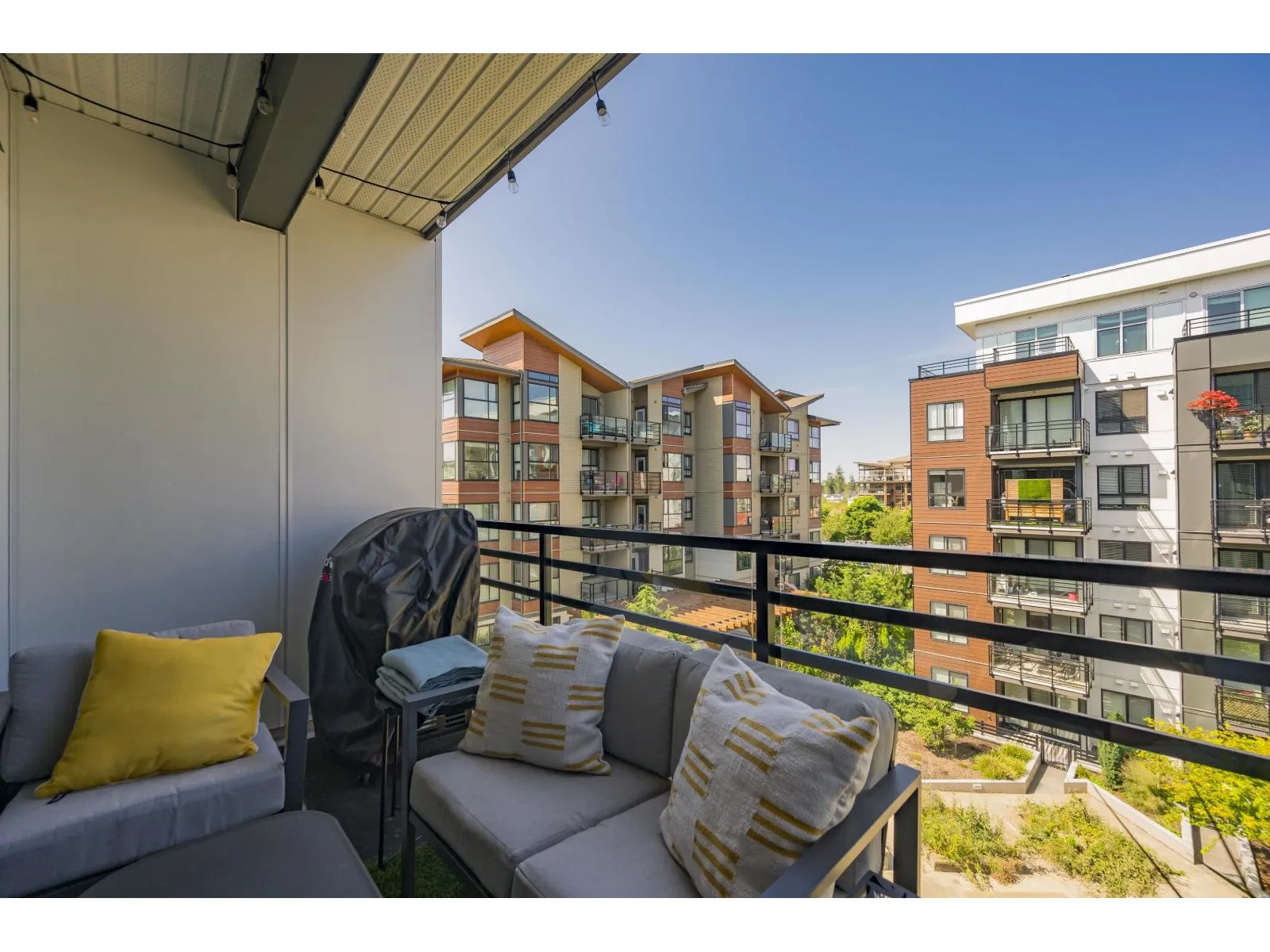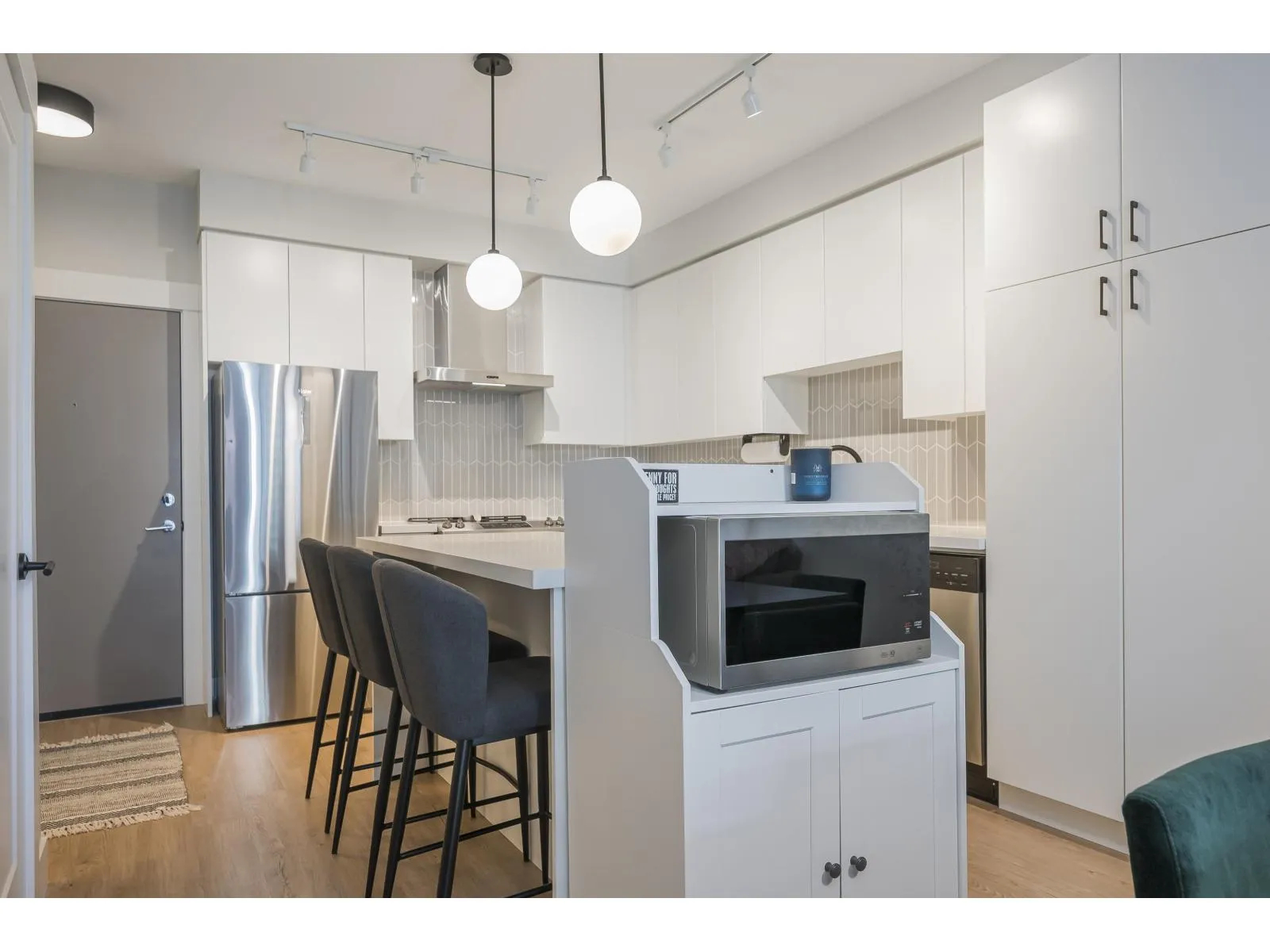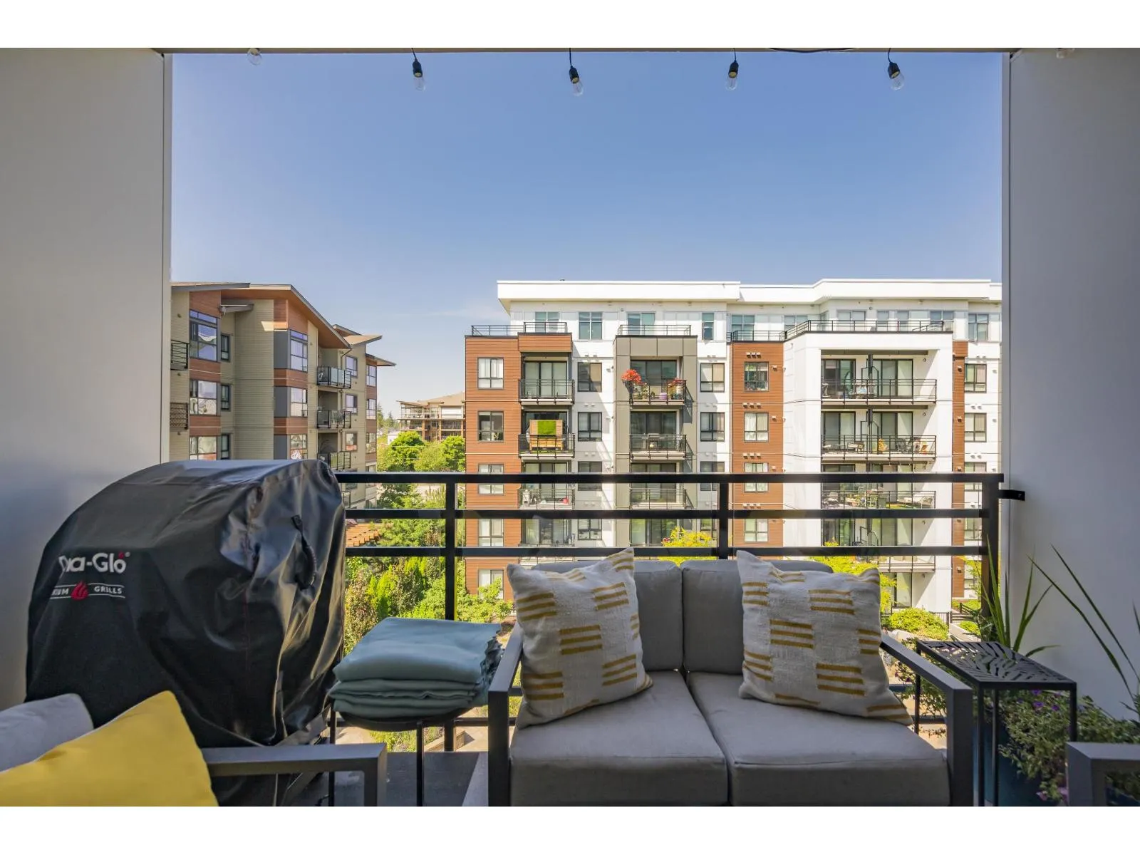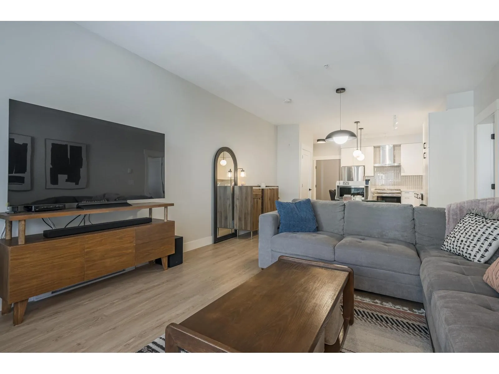 Welcome to Hudson & Singer in vibrant Willoughby! This beautifully maintained end-unit offers over 1,000 sq. ft. of modern living with 2 spacious bedrooms, a sleek kitchen featuring quartz counters and stainless-steel appliances, and abundant natural light. The open layout flows to a private balcony overlooking the serene courtyard-perfect for relaxing or entertaining. Steps to shops, schools, parks, and transit with easy Hwy 1 access. Includes 2 parking stalls and 1 storage locker. A must-see home! (id:27476)