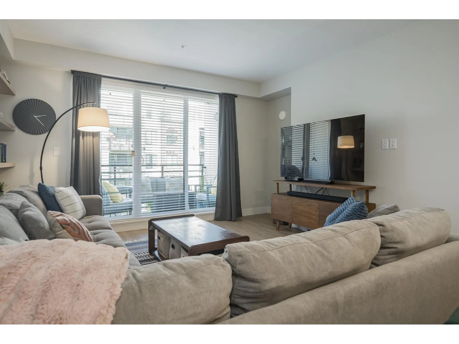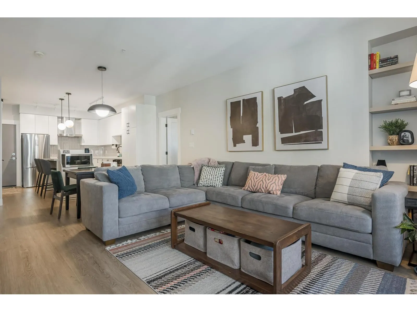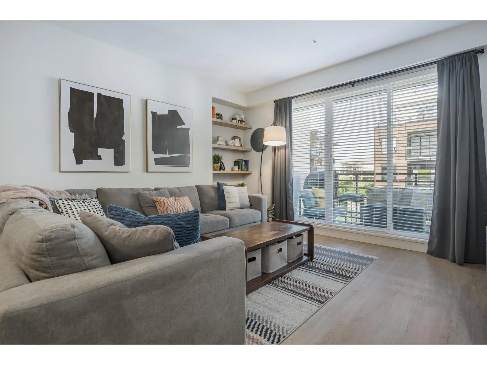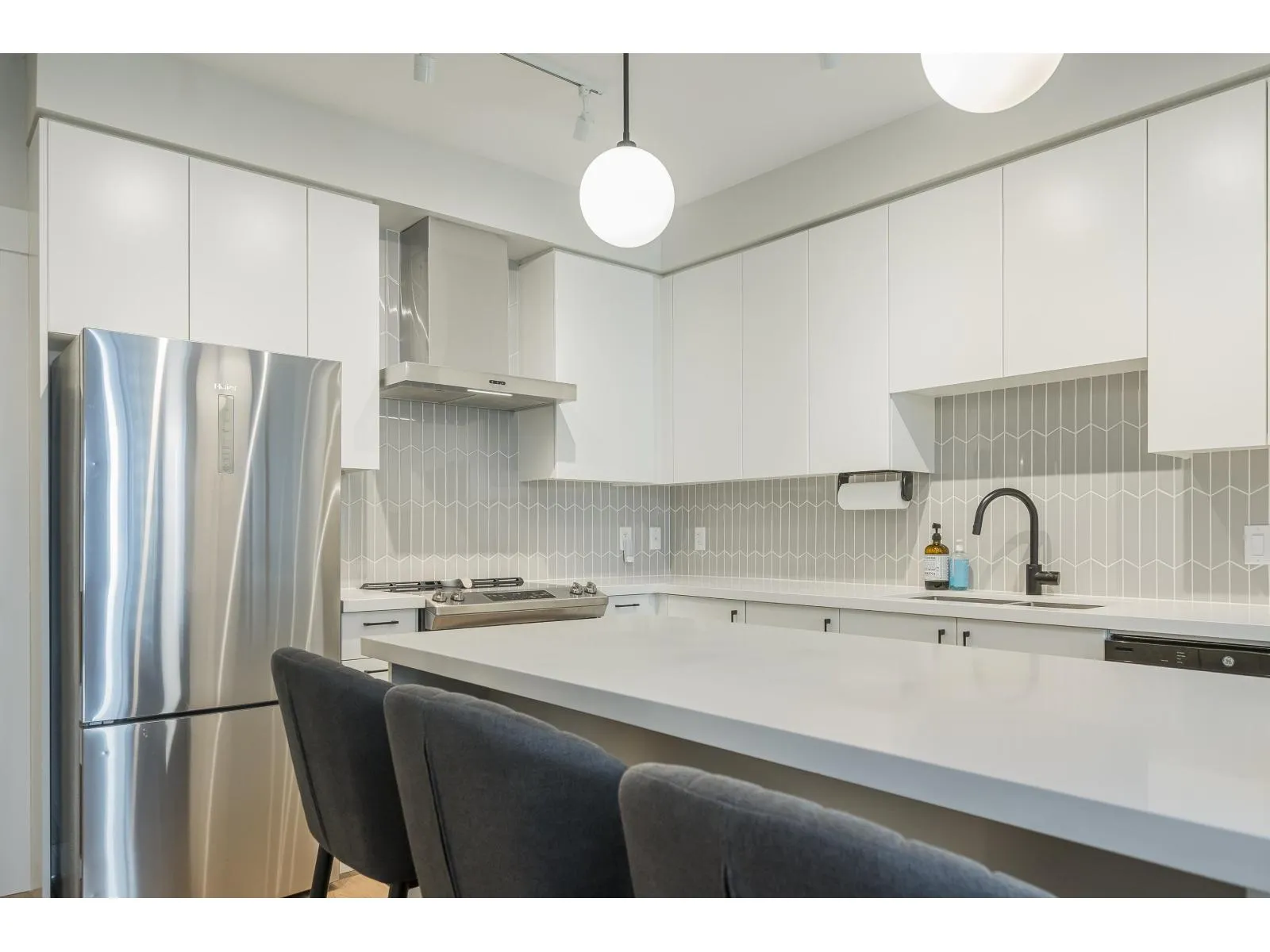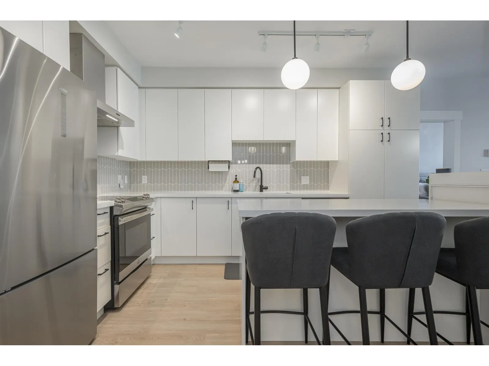 Welcome to Hudson & Singer in vibrant Willoughby! This beautifully maintained end-unit offers over 1,000 sq. ft. of modern living with 2 spacious bedrooms, a sleek kitchen featuring quartz counters and stainless-steel appliances, and abundant natural light. The open layout flows to a private balcony overlooking the serene courtyard-perfect for relaxing or entertaining. Steps to shops, schools, parks, and transit with easy Hwy 1 access. Includes 2 parking stalls and 1 storage locker. A must-see home! (id:27476)