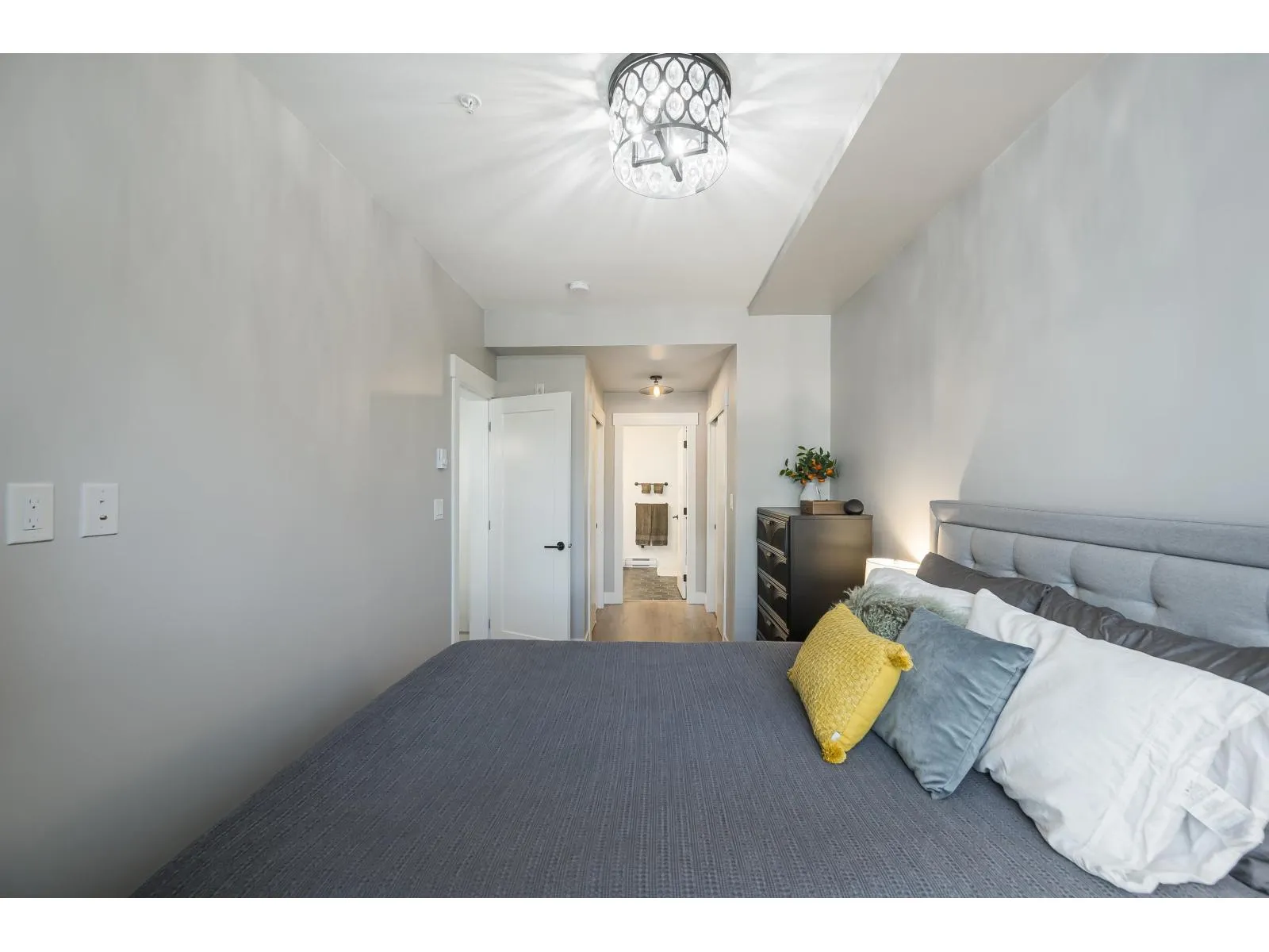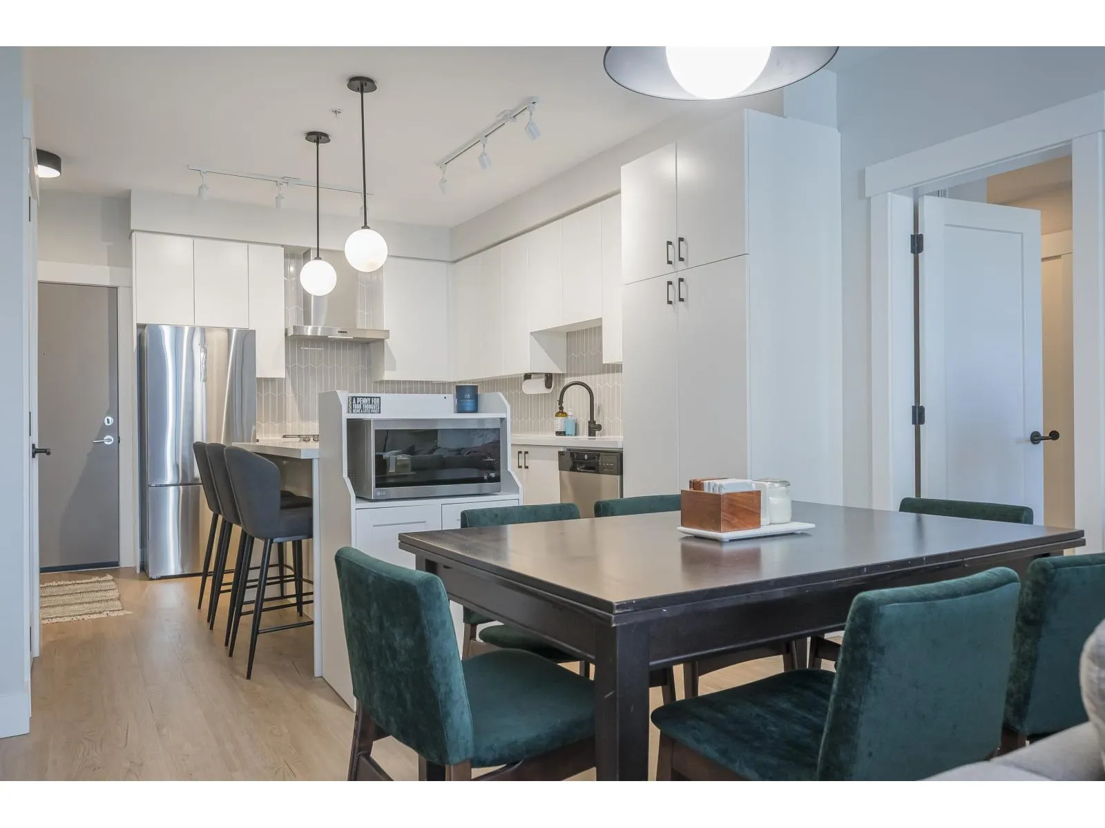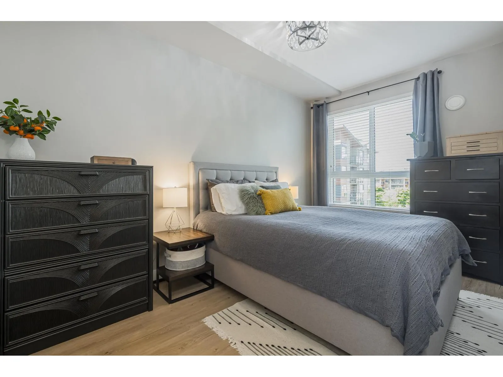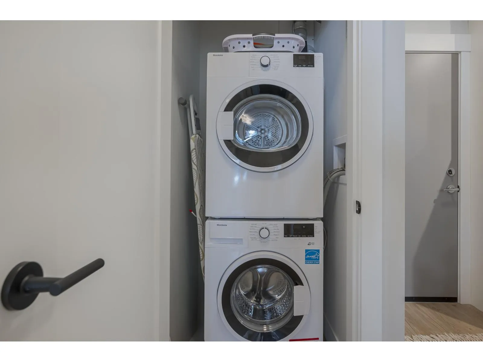 Welcome to Hudson & Singer in vibrant Willoughby! This beautifully maintained end-unit offers over 1,000 sq. ft. of modern living with 2 spacious bedrooms, a sleek kitchen featuring quartz counters and stainless-steel appliances, and abundant natural light. The open layout flows to a private balcony overlooking the serene courtyard-perfect for relaxing or entertaining. Steps to shops, schools, parks, and transit with easy Hwy 1 access. Includes 2 parking stalls and 1 storage locker. A must-see home! (id:27476)