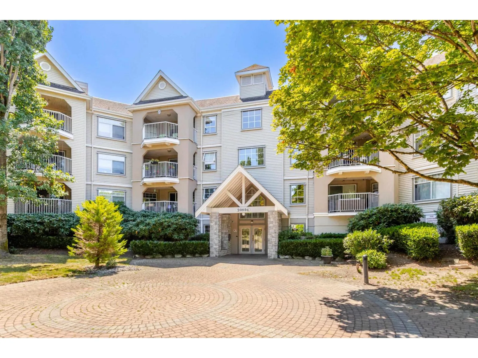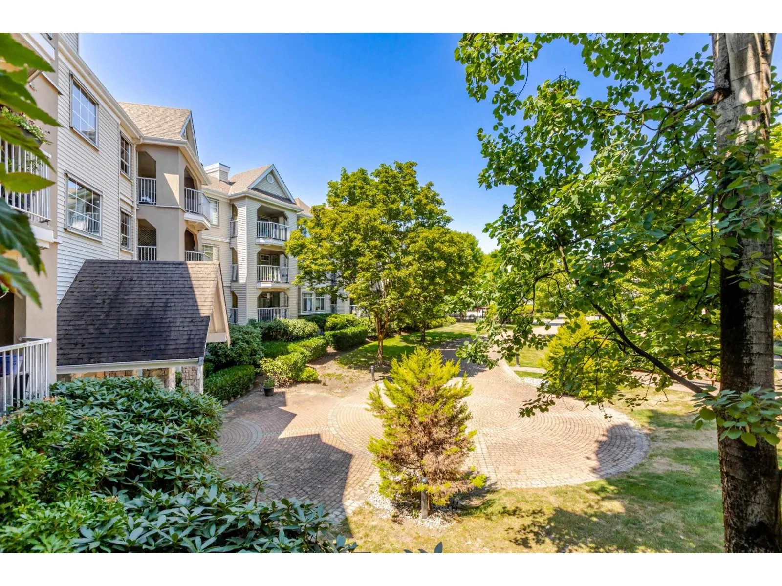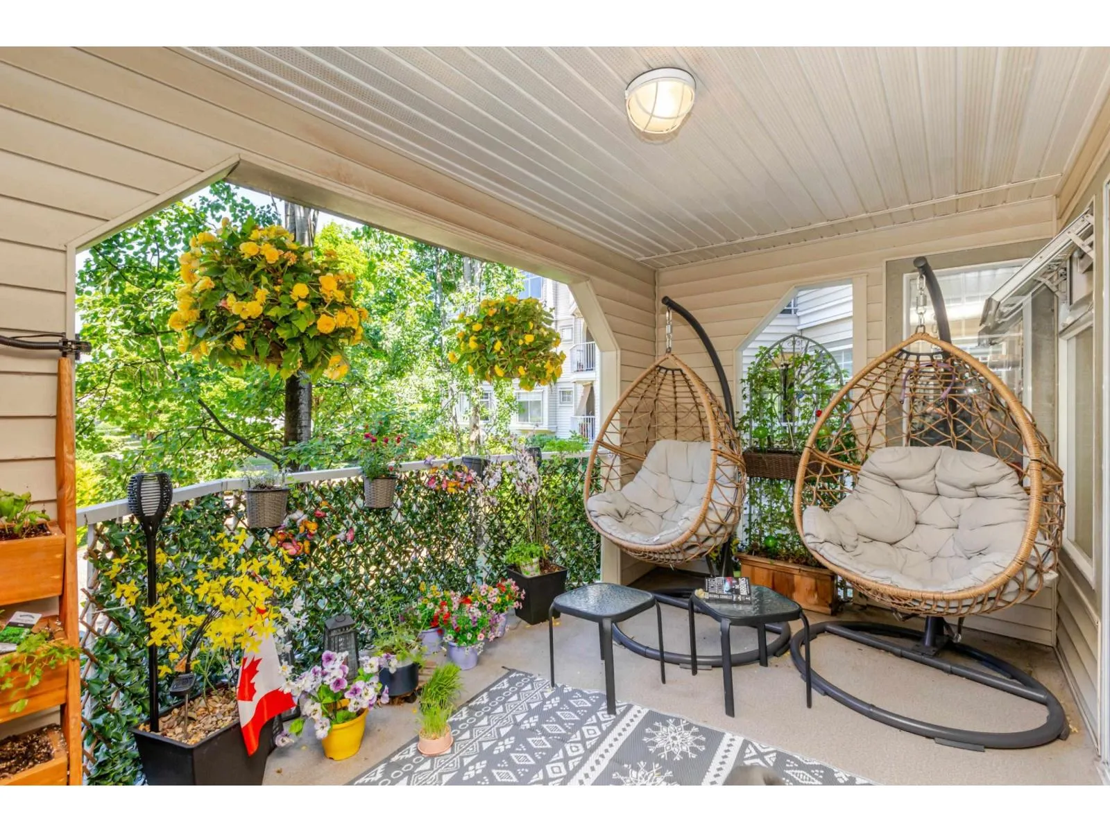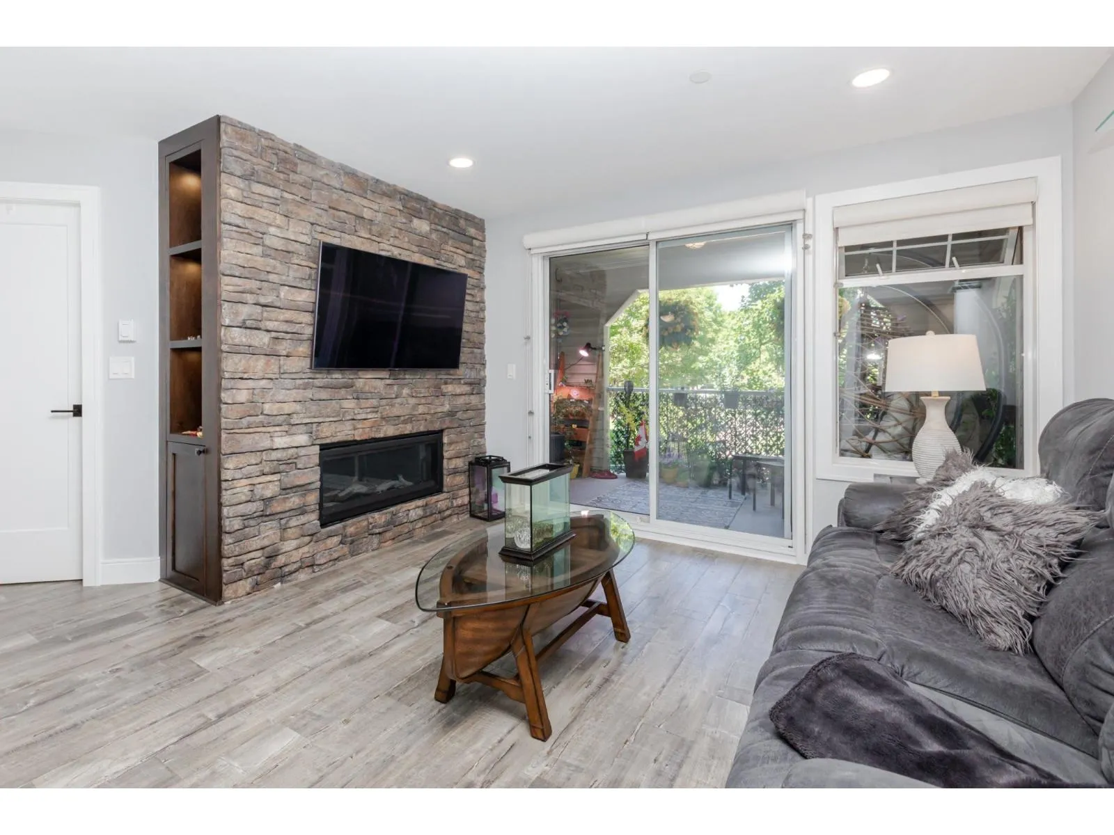 Welcome to Bayberry Lane! Nestled in a quiet Langley City neighbourhood walk to shops, amenities & close to several parks & walking trails. Elevated above ground condo with over 1000 sq ft of living space with Primary & 2nd bed & bath at opposite ends for total privacy. Primary easily fits a king bed, has his/hers walk through closets & ensuite with DBL shower. Totally renovated with a showstopper kitchen featuring S/S appliances, elegant 2 tone shaker cabinets, tons of quartz counters including huge peninsula. Kitchen extends to the large laundry with additional cabinets & side by side modern washer/dryer. Open plan dining & living room with cozy gas fireplace & access to the large balcony, perfect for entertaining, overlooking the courtyard & water feature. Pet friendly for dogs & cats. (id:27476)