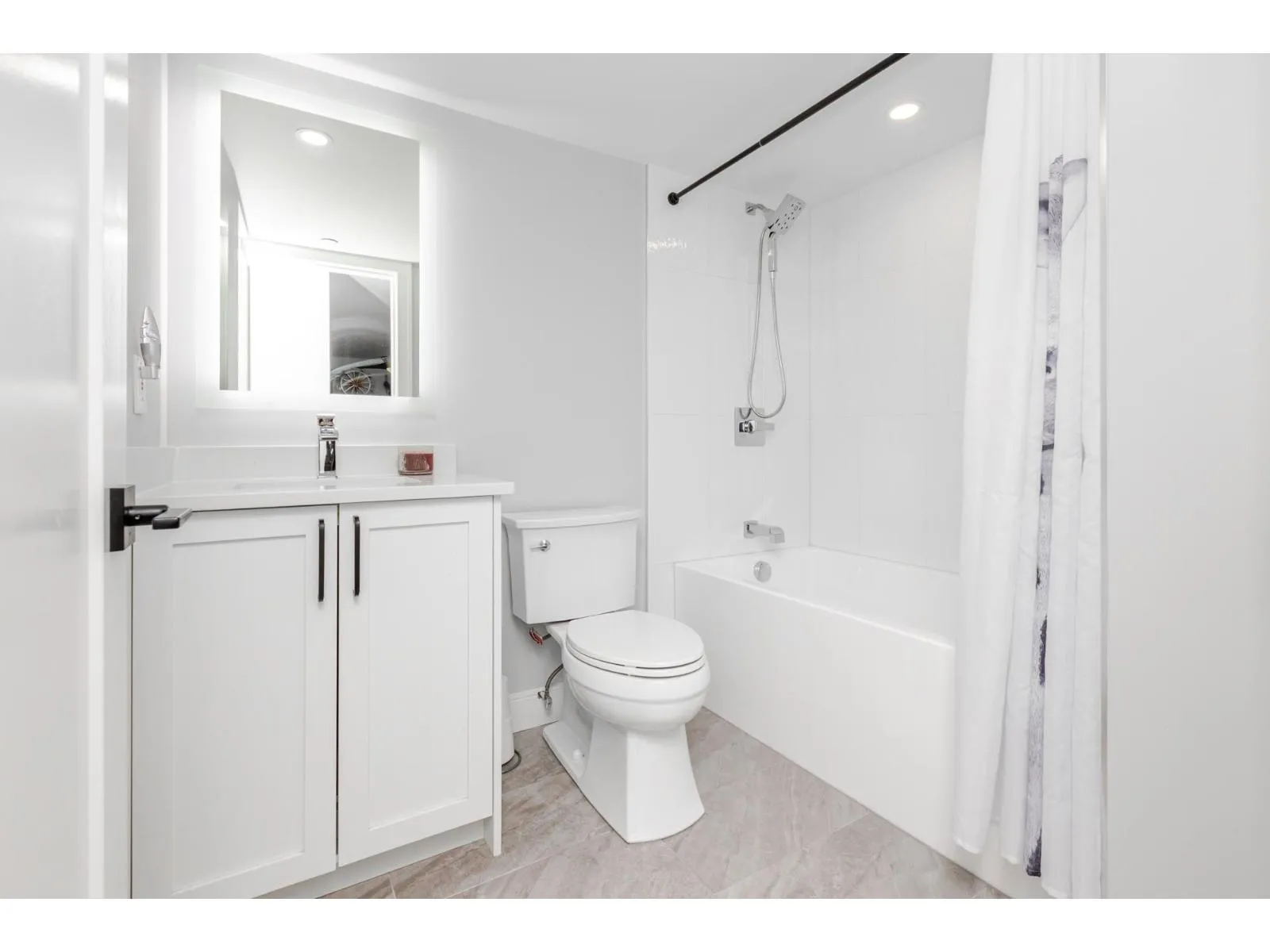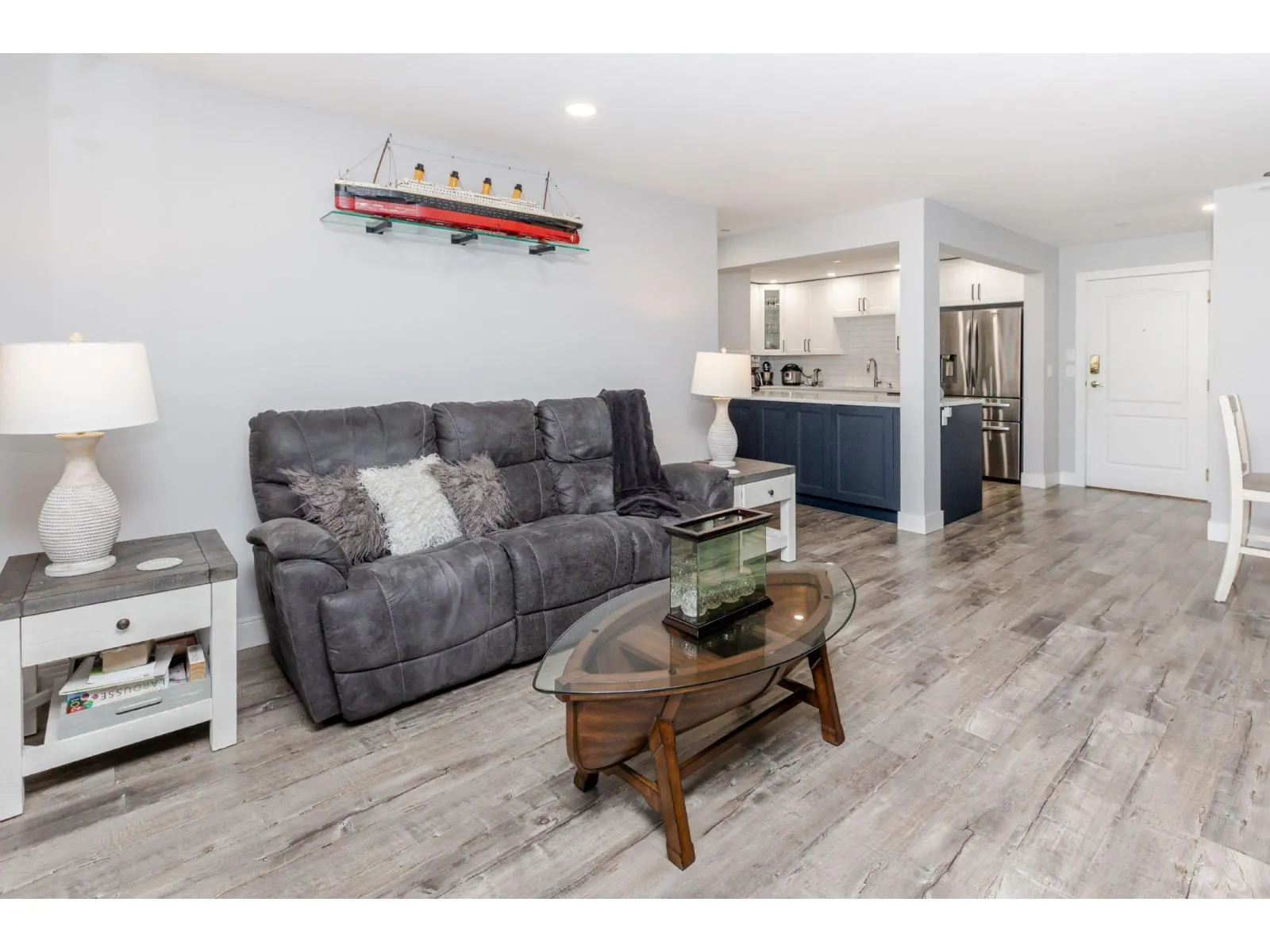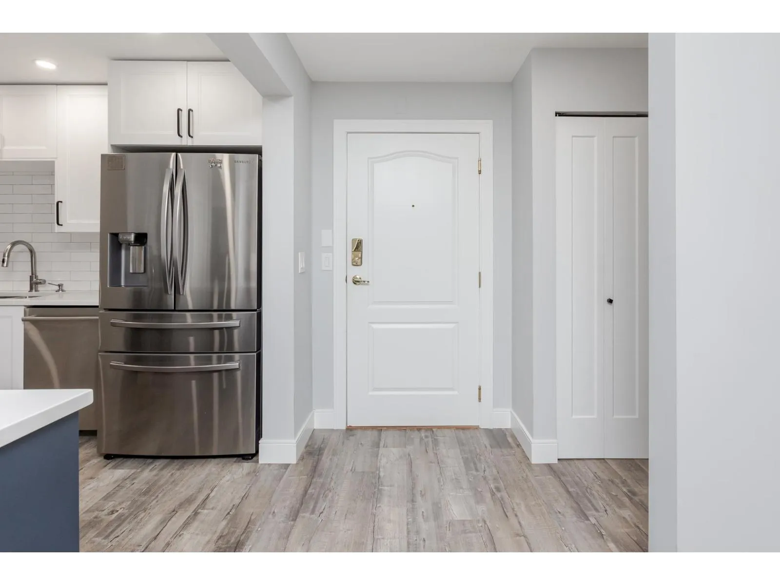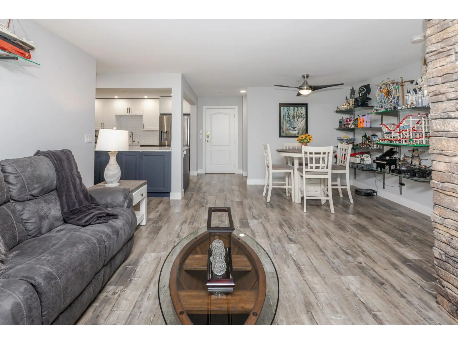 Welcome to Bayberry Lane! Nestled in a quiet Langley City neighbourhood walk to shops, amenities & close to several parks & walking trails. Elevated above ground condo with over 1000 sq ft of living space with Primary & 2nd bed & bath at opposite ends for total privacy. Primary easily fits a king bed, has his/hers walk through closets & ensuite with DBL shower. Totally renovated with a showstopper kitchen featuring S/S appliances, elegant 2 tone shaker cabinets, tons of quartz counters including huge peninsula. Kitchen extends to the large laundry with additional cabinets & side by side modern washer/dryer. Open plan dining & living room with cozy gas fireplace & access to the large balcony, perfect for entertaining, overlooking the courtyard & water feature. Pet friendly for dogs & cats. (id:27476)