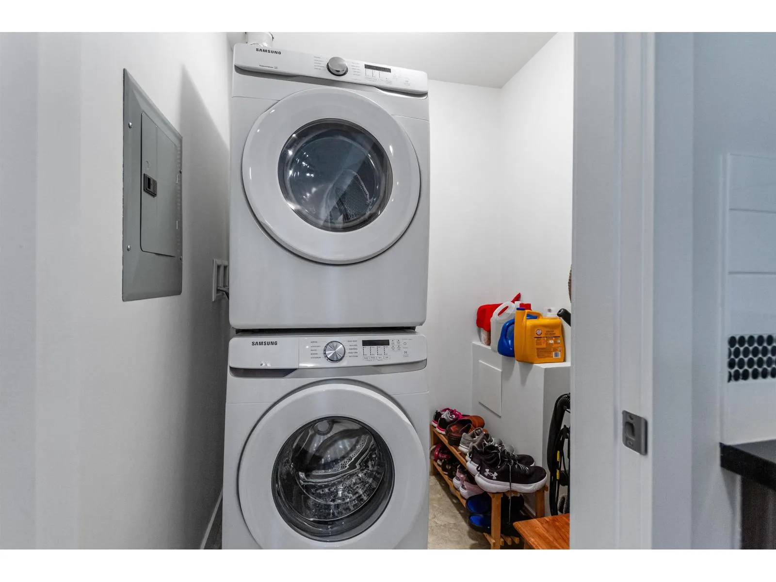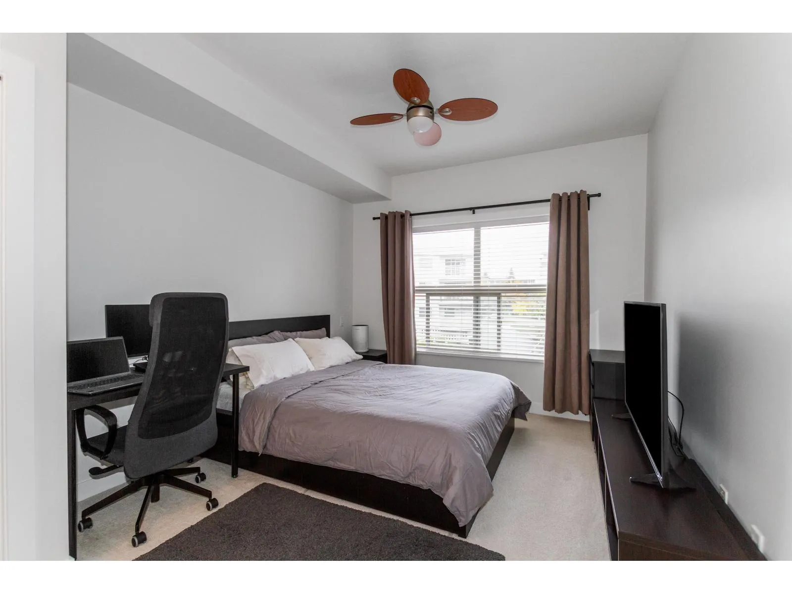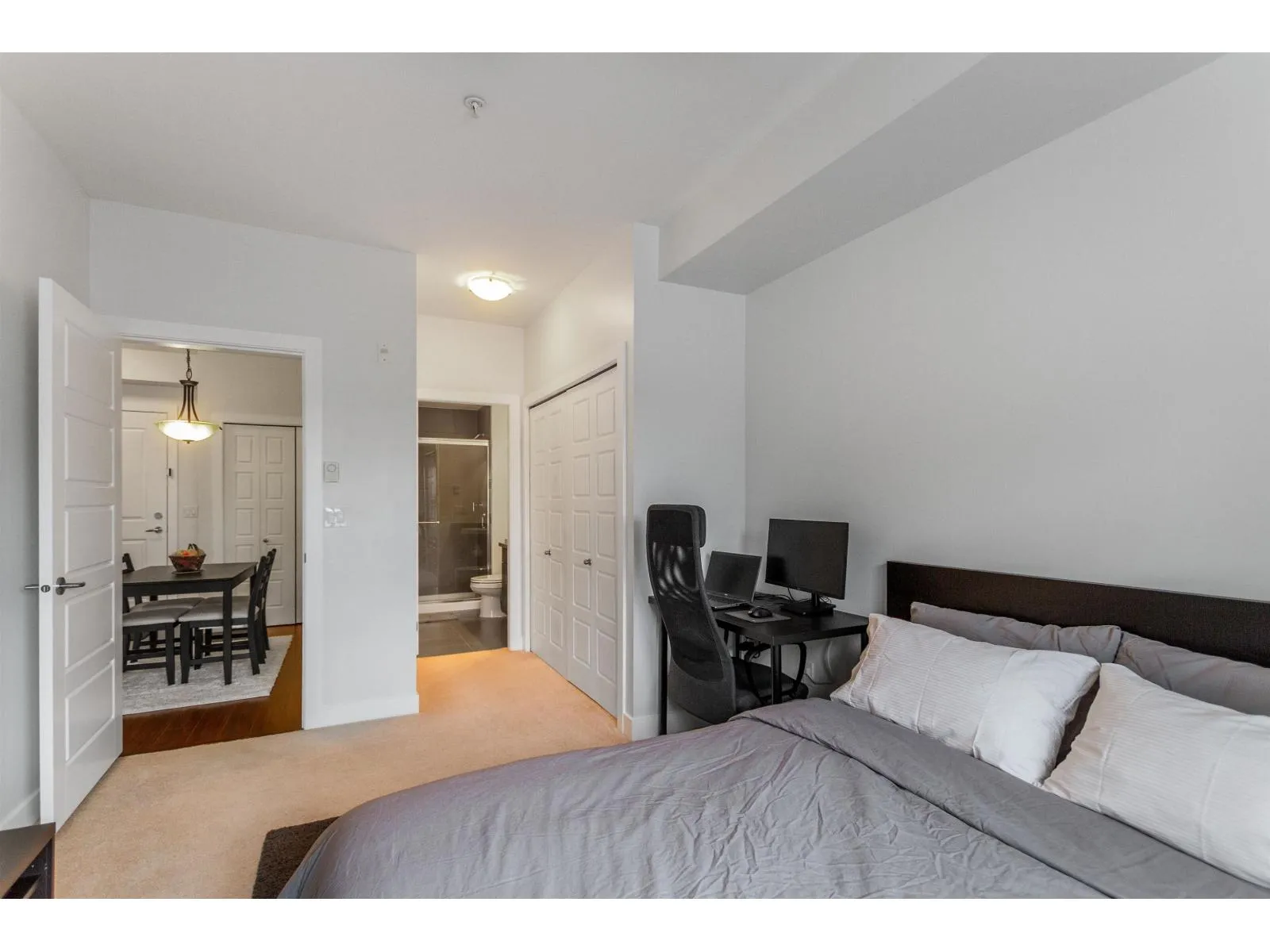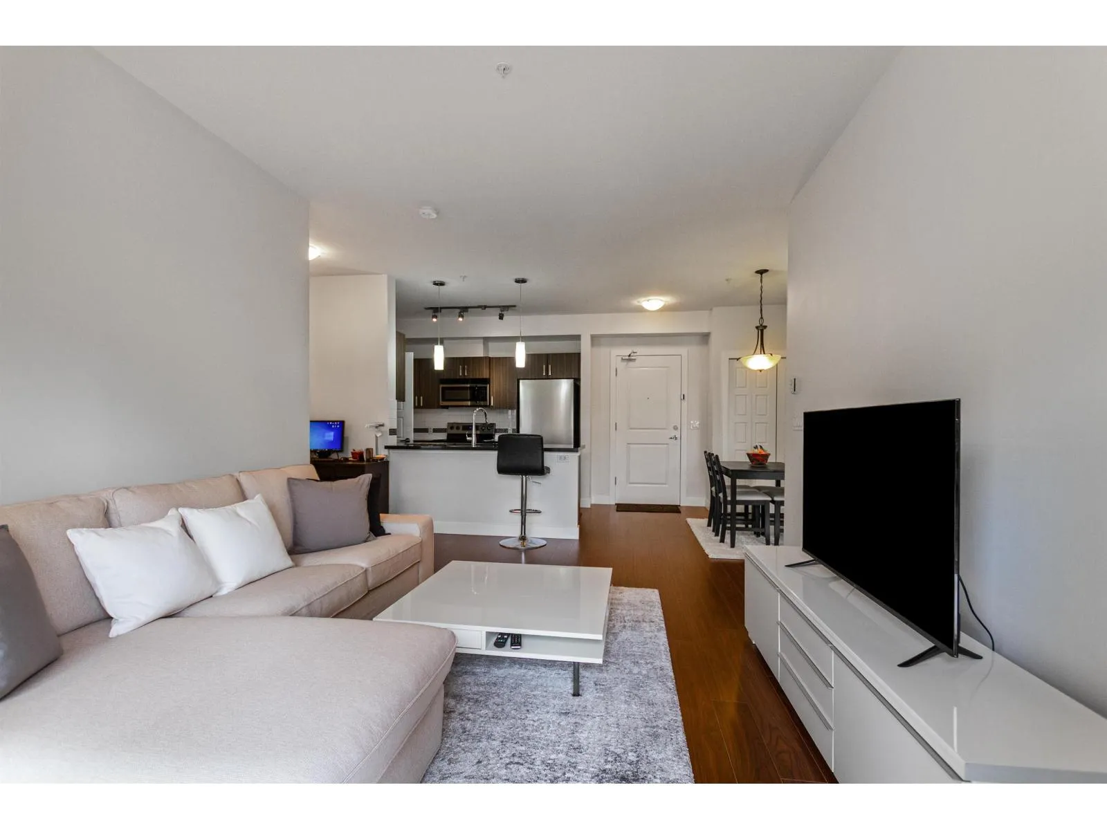 Well maintained 2 bedroom 2 bathroom condo with open and optimal floor plan for great use of space. Both bedrooms and bathrooms on opposite sides are separated by living area for maximum privacy. Functional kitchen with stainless steel appliances and soft close cabinets. Laundry room off the kitchen with full sized washer & dryer. Good sized balcony is facing the quiet side of the building. Unit comes with one secure underground parking stall and storage locker. All this in a well run building. Nestled in a quiet neighborhood, yet close to everything! Steps away from grocery stores, supermarkets and restaurants. Just minutes away from the future skytrain station. (id:27476)