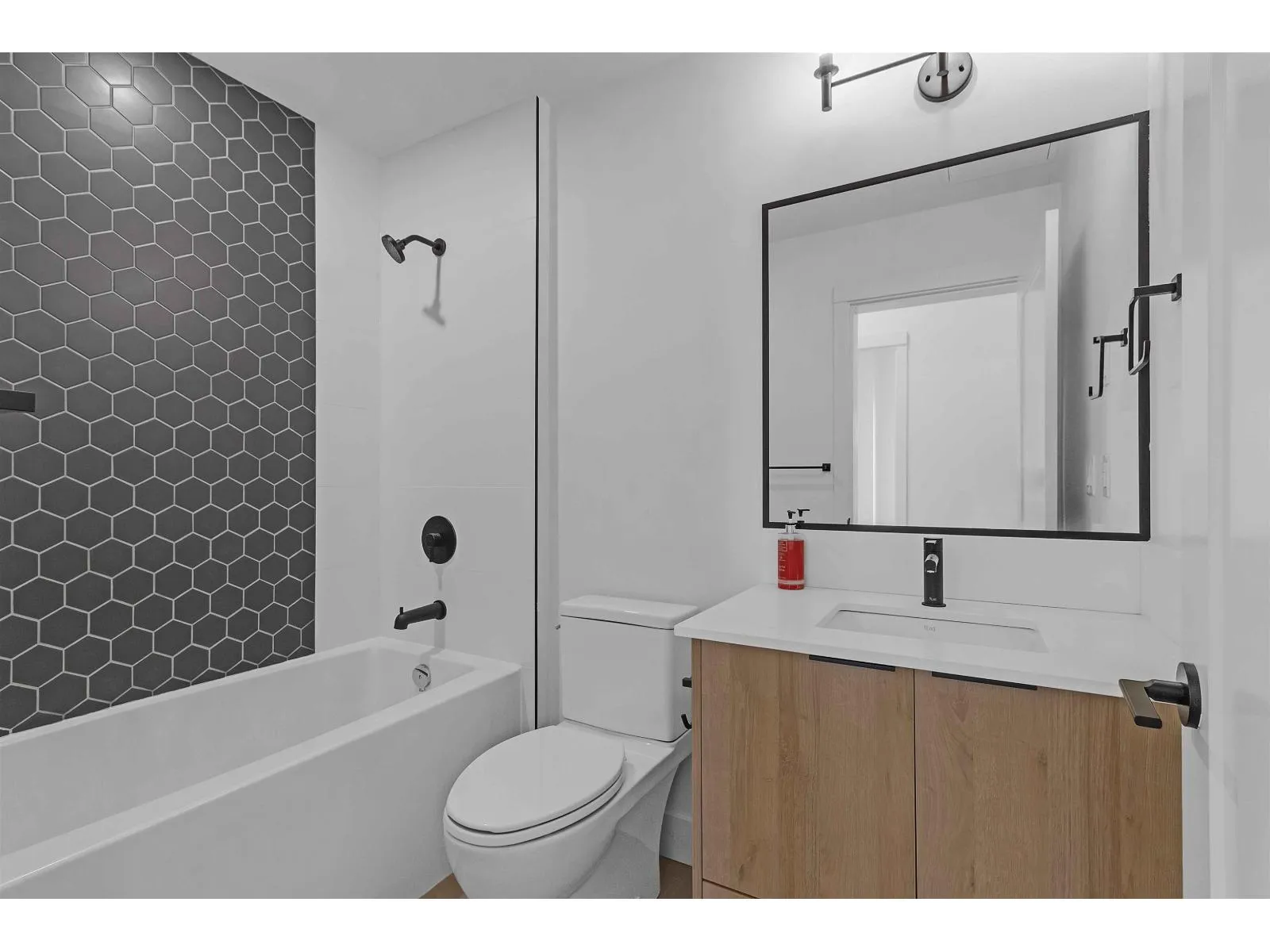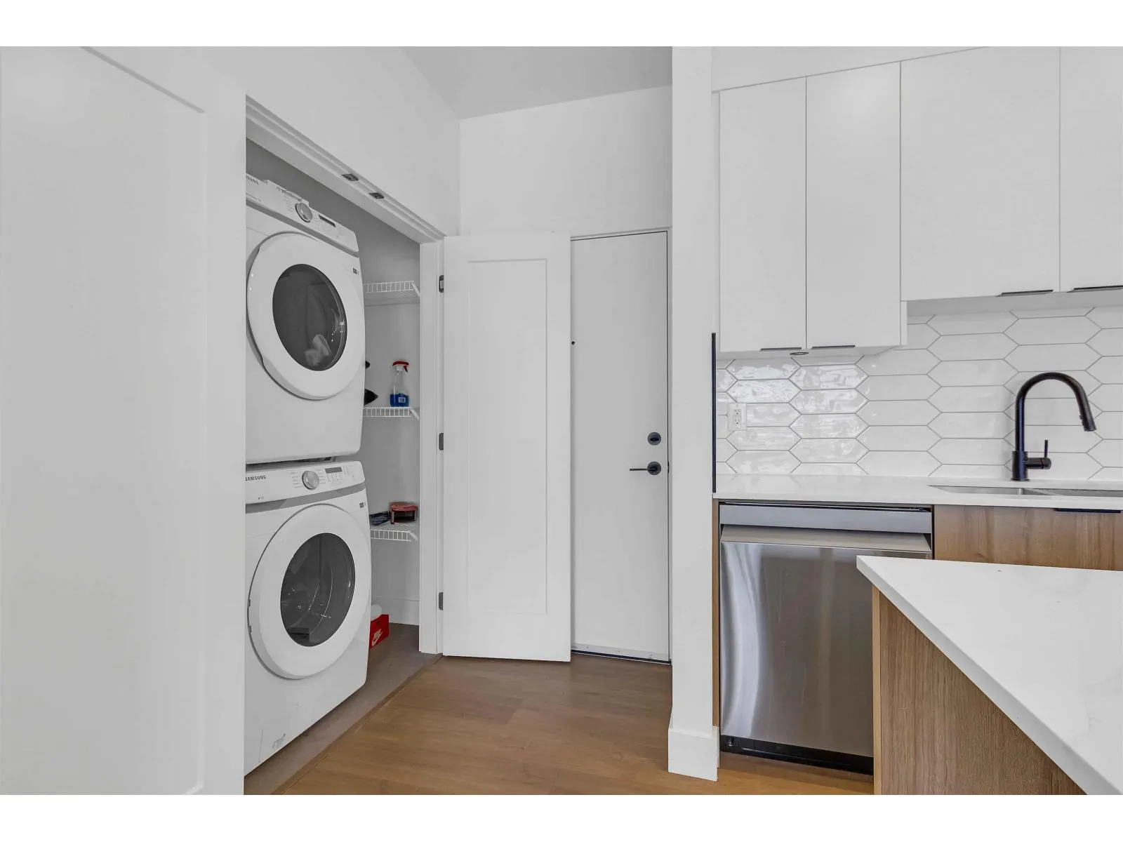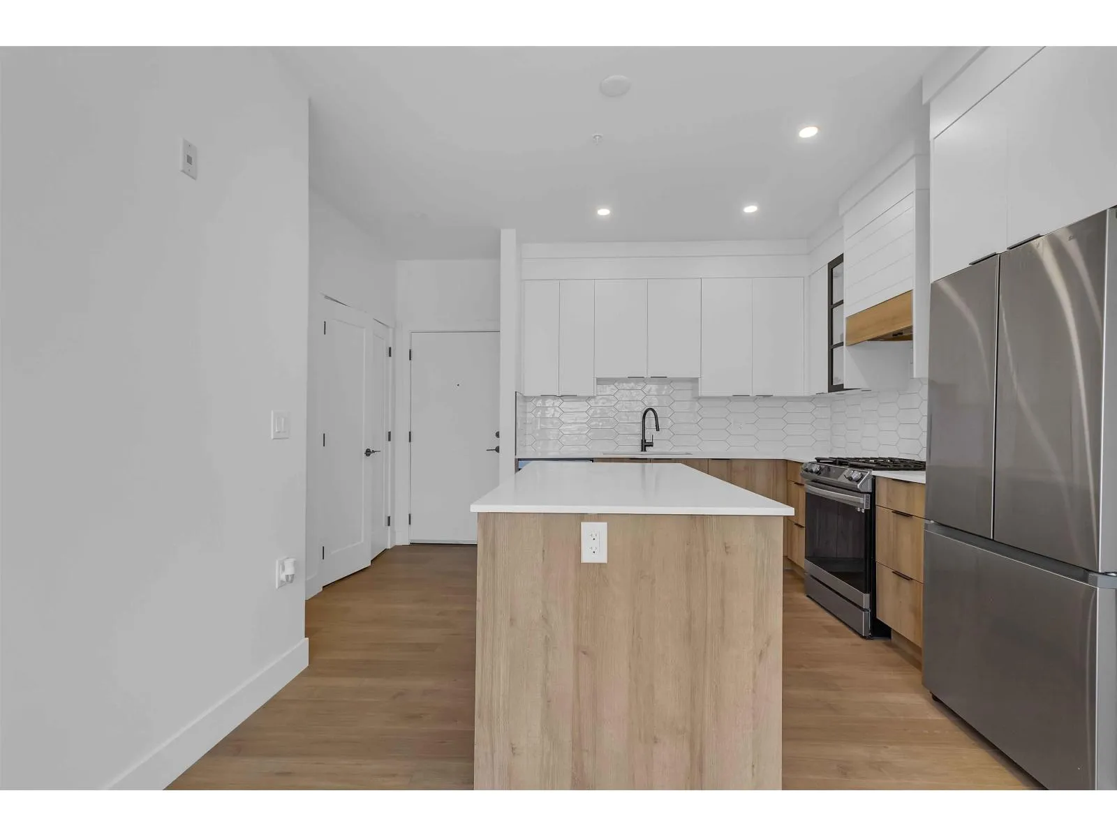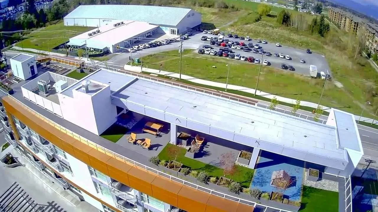 The Ellery. Bright 2-bedroom, 2-bathroom, 3rd-floor unit in Langley's desirable Willoughby neighborhood. Vaulted ceilings and a custom-designed floor plan create a efficient and spacious environment. The kitchen boasts quartz countertops to entertain friends & family, designer tiles & backsplash, a gas range & wide plank flooring. Underground secured parking, storage and bike locker. Enjoy incredible views with communal gardens, picnic benches, lounge chairs, a children's play area and a rooftop patio. It is situated in a central location, offering easy access to all amenities & walking distance to shopping, restaurants, cafes, and more. Heat pump for year-round comfort. Pets and rentals are allowed. Parking #6 P2 and two Lockers #6 & #15. (id:27476)